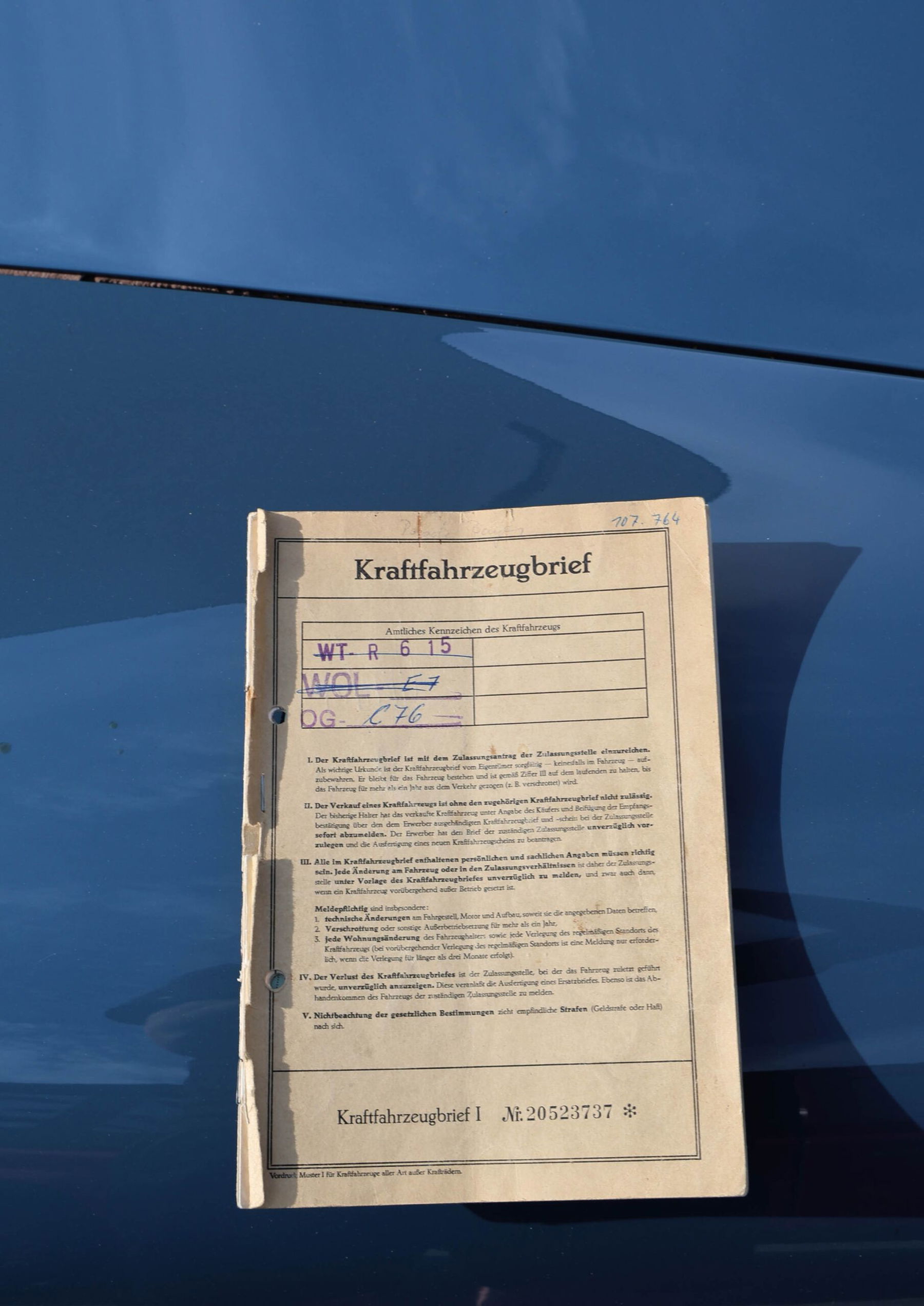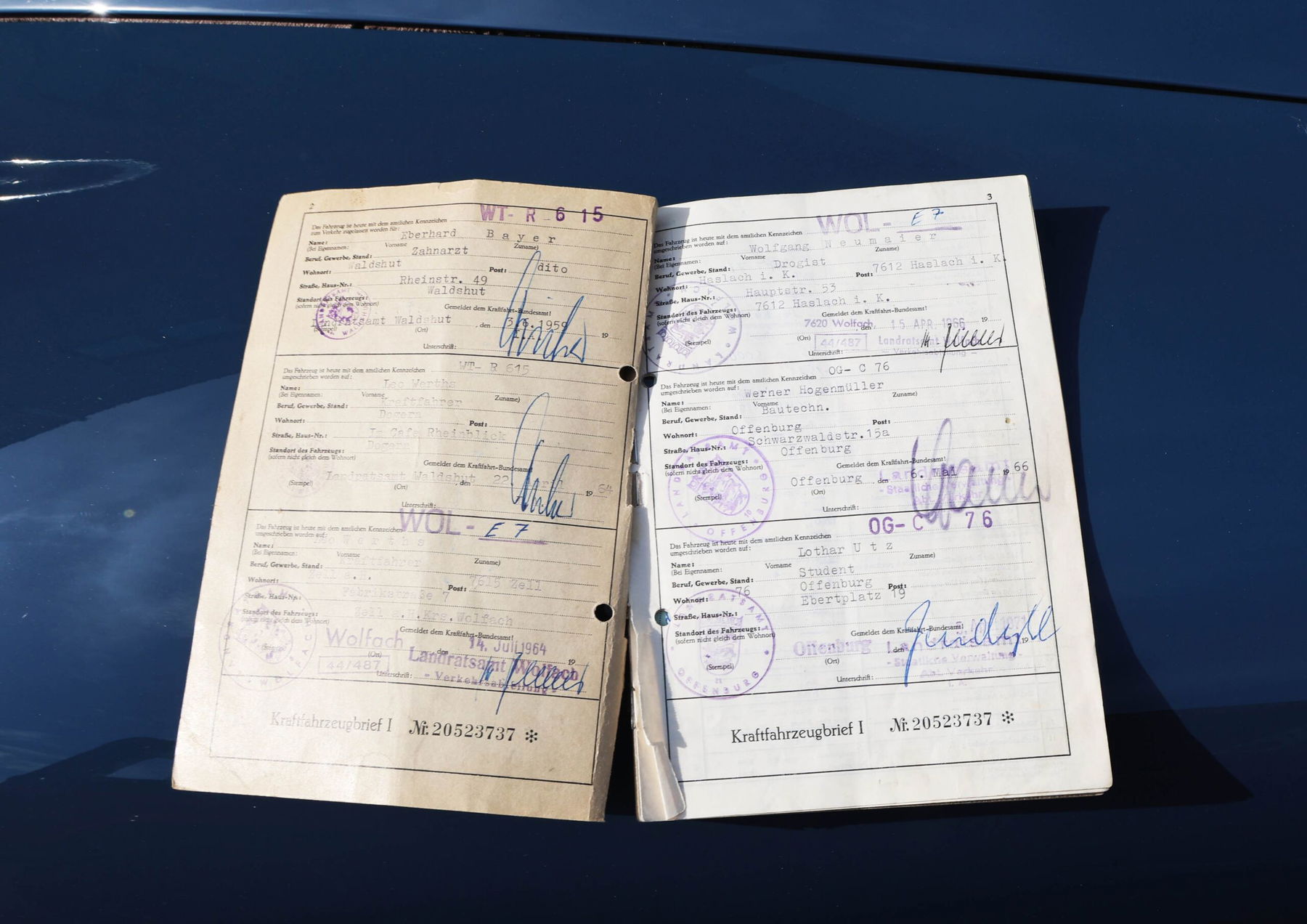 Zu seiner Einzigartigkeit trägt auch bei, dass dieser 356 A mit seinem originalen deutschen Kraftfahrzeugbrief ausgeliefert wird, der die gesamte Besitzgeschichte dokumentiert. Ein derartiger Nachweis ist selten und bestätigt die Authentizität dieses außergewöhnlichen Exemplars.