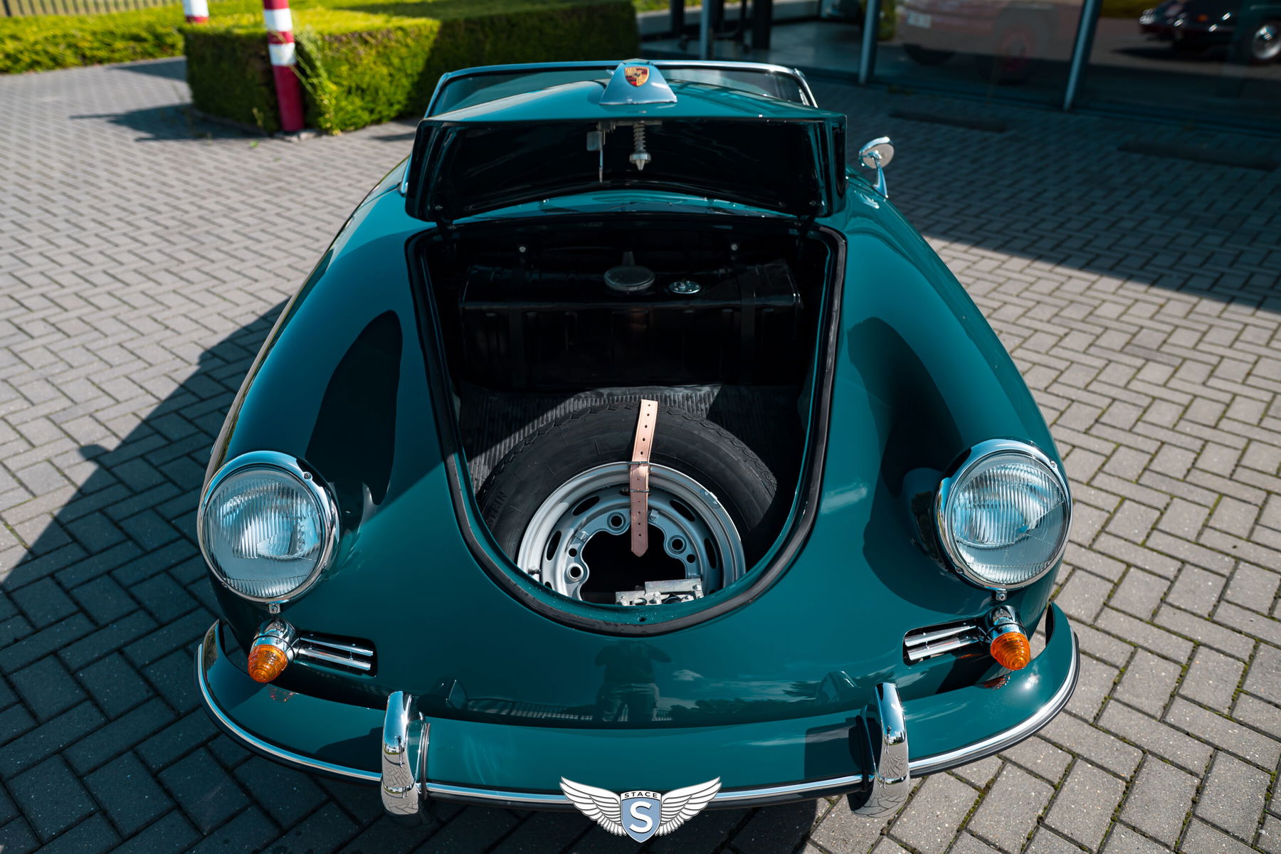 Vielleicht haben Sie diesen Porsche 356 B T5 Roadster 1600 Super aus dem Jahr 1960 schon einmal gesehen, als wir ihn in unserer Werkstatt restauriert haben. Wir freuen uns, Ihnen mitteilen zu können, dass diese Concours-Restaurierung nun abgeschlossen und das Fahrzeug zugelassen ist. Der Motor mit matching numbers wurde auf etwa 120 PS aufgerüstet und verfügt über viel Drehmoment, während das passende Getriebe mit längeren Übersetzungen aufgerüstet wurde, um den Komfort zu verbessern.