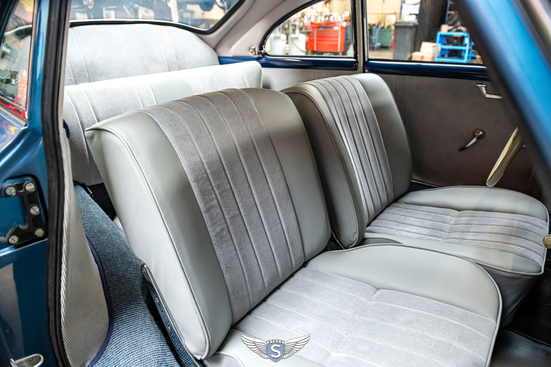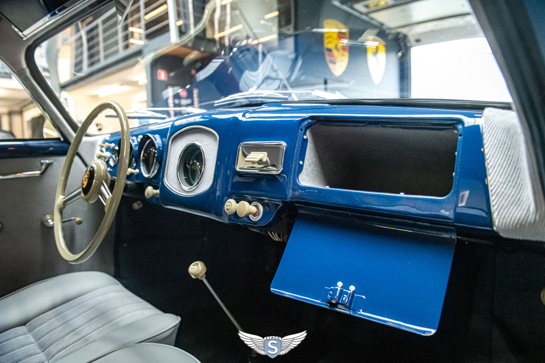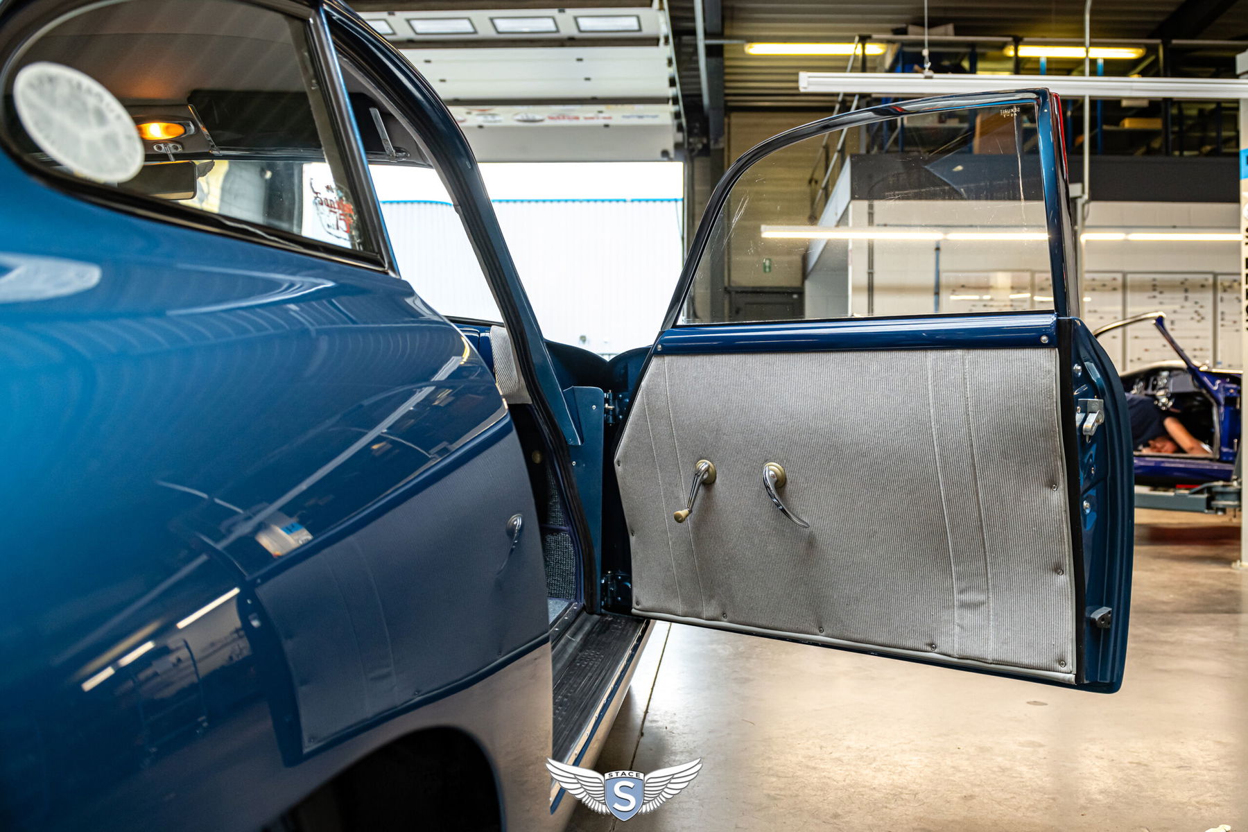 Diese Adria Blue Schönheit glänzt dank unserer vollständigen Restaurierung wie neu. Die Mechanik und der Innenraum wurden mit viel Liebe zum Detail und Authentizität gründlich restauriert. Der Prozess dauerte 5,5 Jahre und alles wurde dokumentiert. Diese originale Farbkombination und Ausstattung wird im mitgelieferten Reutter Cardex bestätigt. Sind Sie bereit für die Mille Miglia? Weitere Informationen finden Sie auf unserer Website!