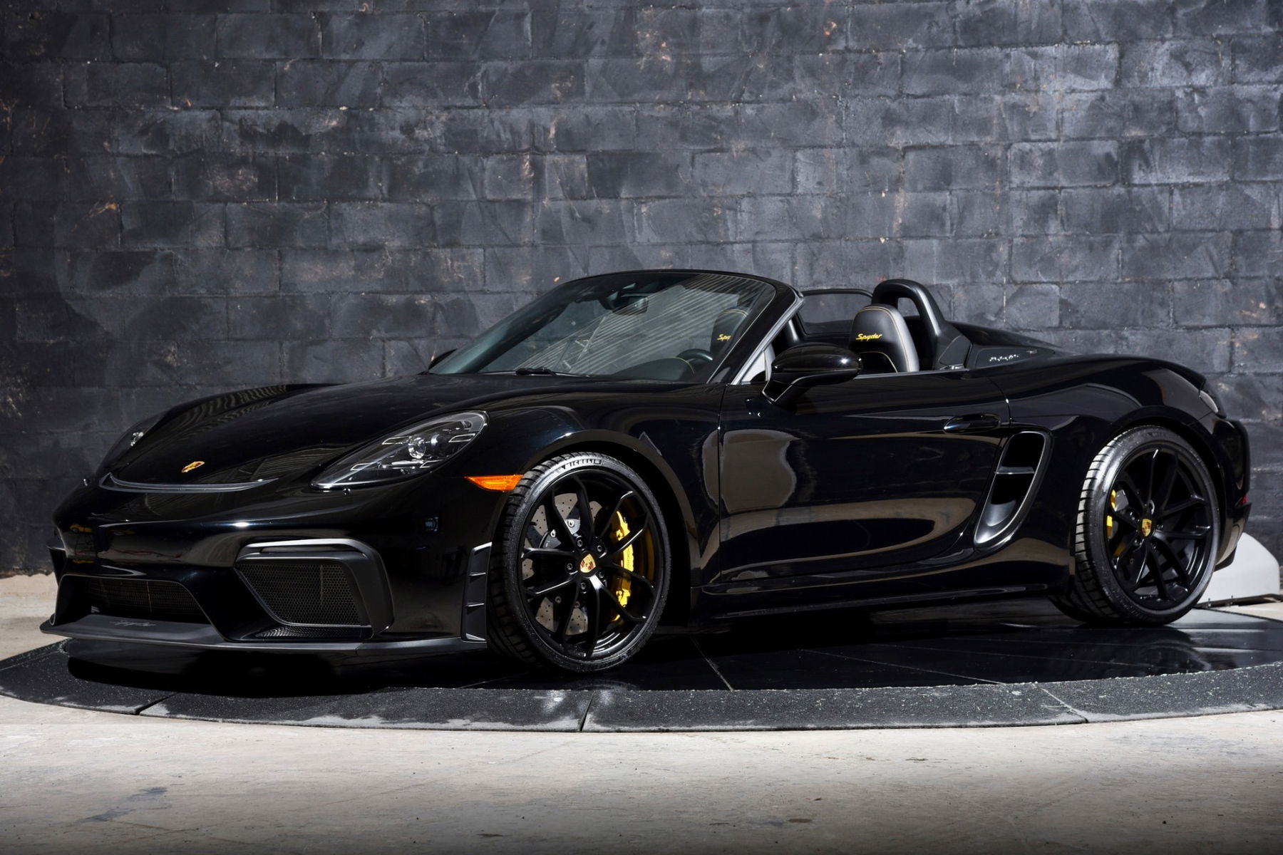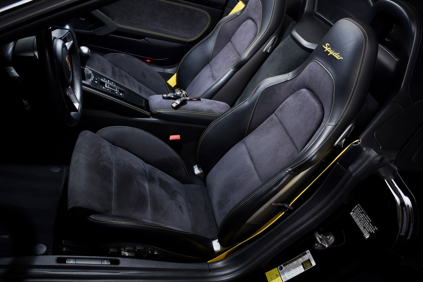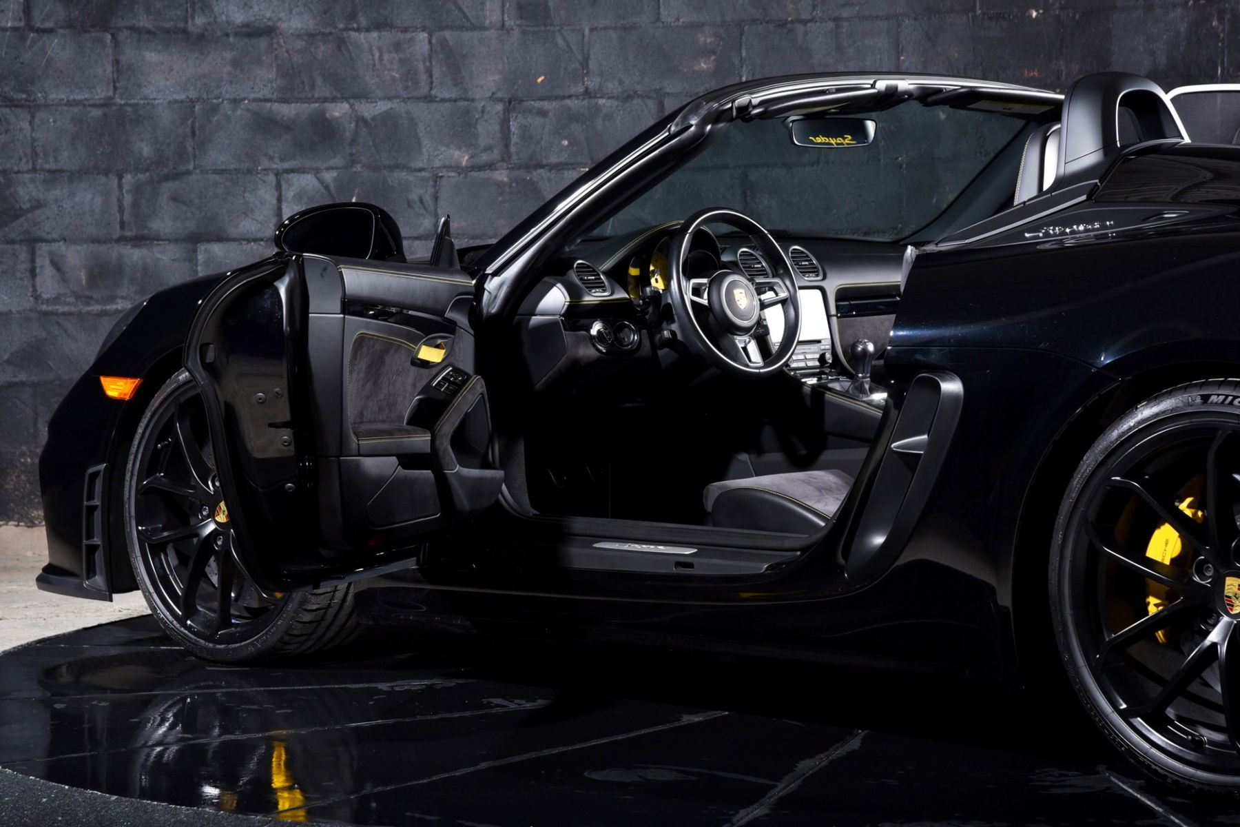 ausstattungsmerkmale/bestellte Optionen (Originalpreis von $123.230): 718 spyder; Leder/Alcantara-Interieur in schwarz mit gelben Nähten; schwarz; Tankdeckel in Alu-Optik; Porsche Ceramic Composite Brake (Pccb); Felgen in schwarz satiniert; Lenkrad und Schalthebel in schwarzem Leder; adaptive Sportsitze plus (18-Wege); 2-Zonen-Klimaautomatik; Sitzheizung; Raucherpaket; Gepäcknetz im Beifahrerfußraum; Fahrzeugschlüssel lackiert inkl. eine schlüsseltasche in leder; sitzgurte in racing-gelb; instrumentenzifferblätter in racing-gelb; sportchrono-stoppuhr-zifferblatt in racing-gelb; nähte in abweichender farbe; bose-surround-sound-system; apple carplay inkl. siri; navigation inklusive porsche connect; led-scheinwerfer mit porsche dynamic light system plus (pdls+); automatisch abblendende spiegel mit integriertem regensensor.