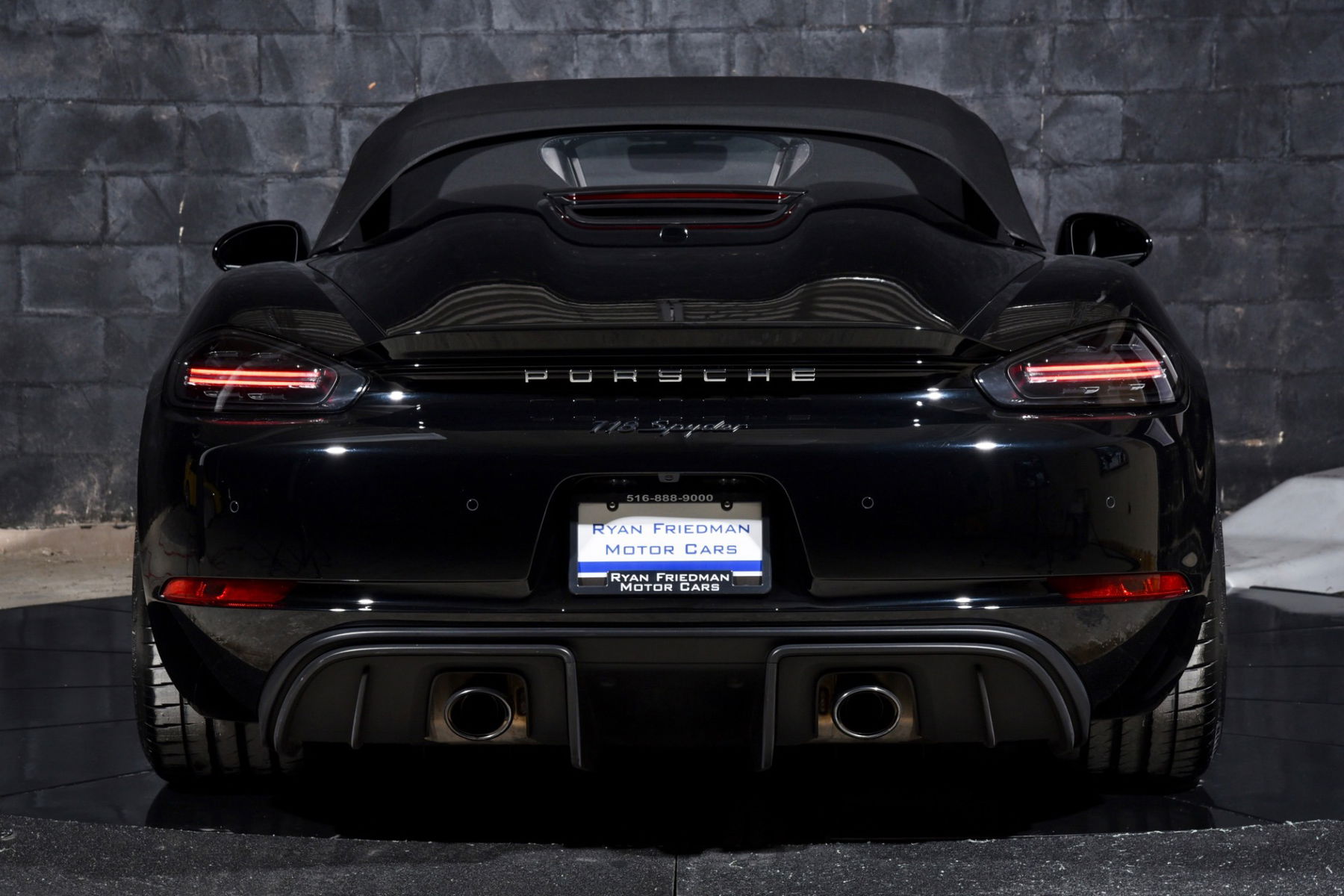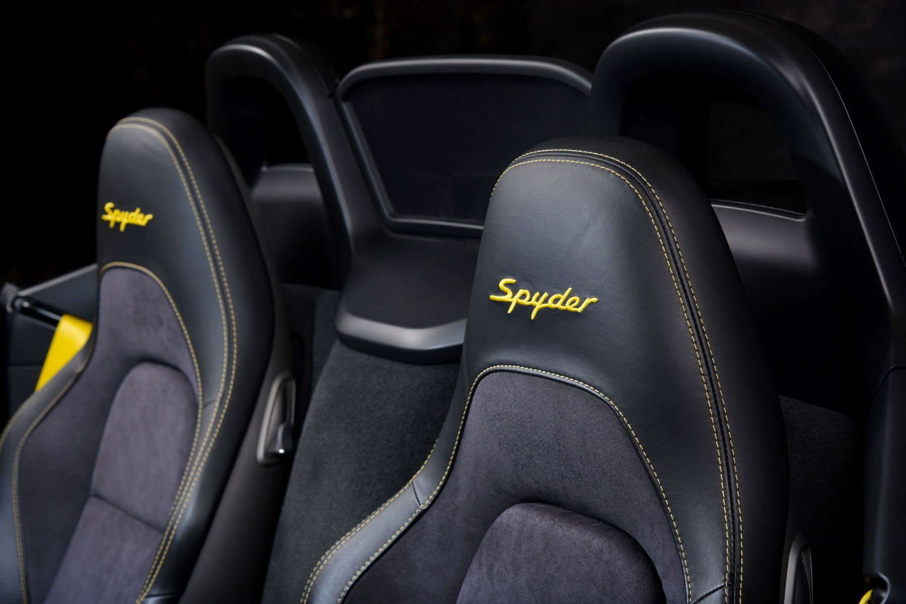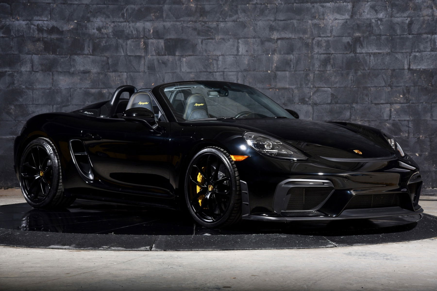 ausstattungsmerkmale/bestellte Optionen (Originalpreis von $123.230): 718 spyder; Leder/Alcantara-Interieur in schwarz mit gelben Nähten; schwarz; Tankdeckel in Alu-Optik; Porsche Ceramic Composite Brake (Pccb); Felgen in schwarz satiniert; Lenkrad und Schalthebel in schwarzem Leder; adaptive Sportsitze plus (18-Wege); 2-Zonen-Klimaautomatik; Sitzheizung; Raucherpaket; Gepäcknetz im Beifahrerfußraum; Fahrzeugschlüssel lackiert inkl. eine schlüsseltasche in leder; sitzgurte in racing-gelb; instrumentenzifferblätter in racing-gelb; sportchrono-stoppuhr-zifferblatt in racing-gelb; nähte in abweichender farbe; bose-surround-sound-system; apple carplay inkl. siri; navigation inklusive porsche connect; led-scheinwerfer mit porsche dynamic light system plus (pdls+); automatisch abblendende spiegel mit integriertem regensensor.