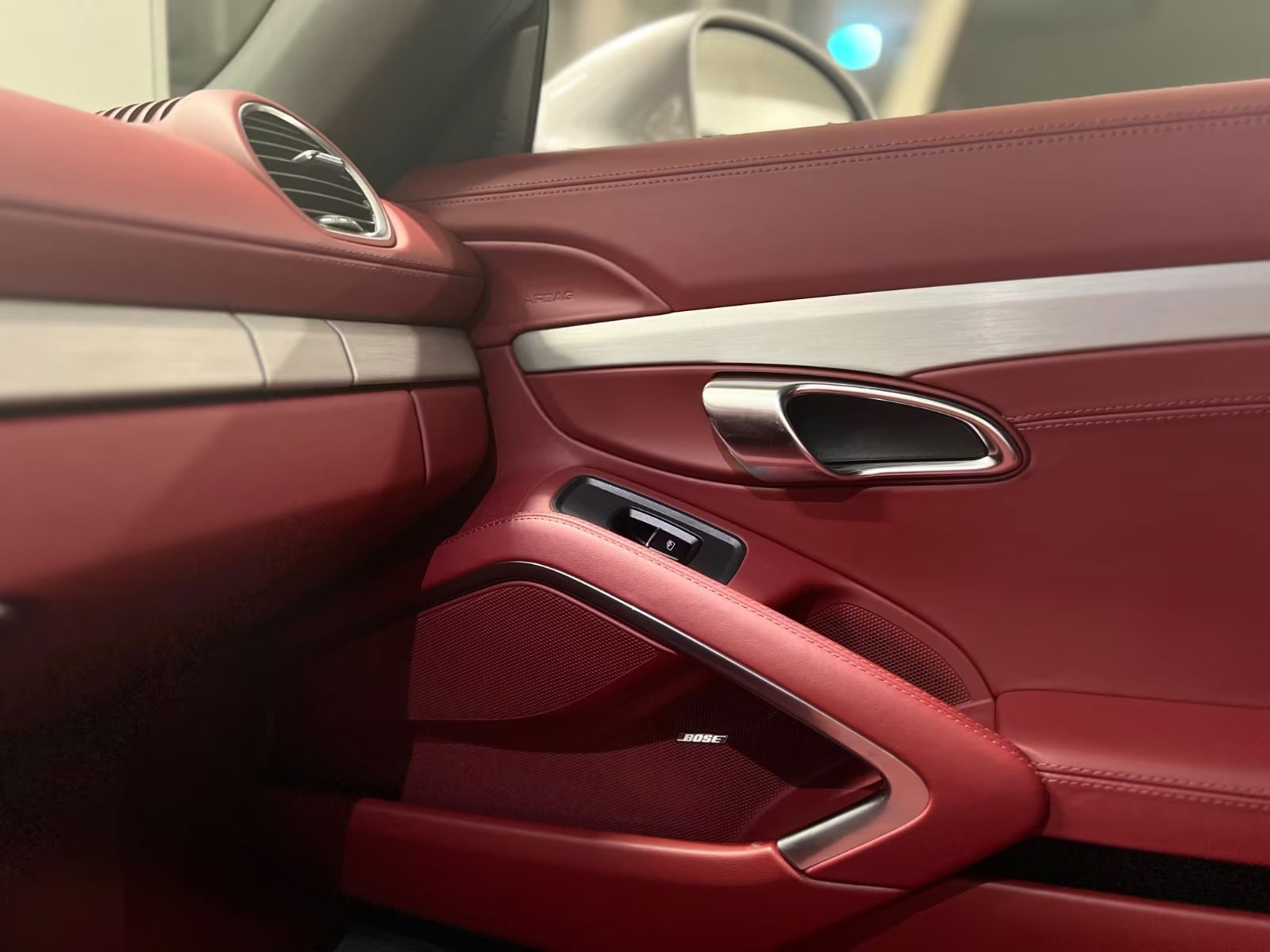 Adaptive Sportsitze inkl. Sitzverstellung 18-Wege und Memory-Paket, Anzeigeinstrumente mit farbigem Hintergrund, Außen-/Innenspiegel mit Abblendautomatik und Regensensor, Außenspiegel elektr. anklappbar, Fahrassistenz-System: Park-Assistent vorn und hinten inkl. Rückfahrkamera, Fahrassistenz-System: Spurwechselassistent, Fahrassistenz-System: Verkehrszeichenerkennung, Fußmatten, Fzg. ohne Modellbezeichnung auf den Türen, Heckleuchten LED, abgedunkelt, Home-Link (Garagentoröffner), Innenraumlicht-Paket / Licht-Design-Paket, Interieur-Zusatzpaket: Schalttafel Leder, Interieur-Zusatzpaket: Türtafel Leder, Isofix-Aufnahmen für Kindersitz an Beifahrersitz, Klimaautomatik 2-Zonen, Mittelkonsole / Ablagenetz, Mittelkonsole, Deckel Ablagefach hinten Leder mit Porschewappen, Pedalerie und Fußstütze aus Aluminium, Raucher-Paket, Servolenkung Plus (geschwindigkeitsabhängig), Sicherheitsgurte farbig, Sitzbelüftung vorn, Sitzheizung vorn, Sonnenblenden Leder, Sound-System BOSE, Sportsitze Plus – Rückenlehnen Leder, Ziffernblatt farbig, Sport Chrono Stoppuhr, Überrollbügel lackiert