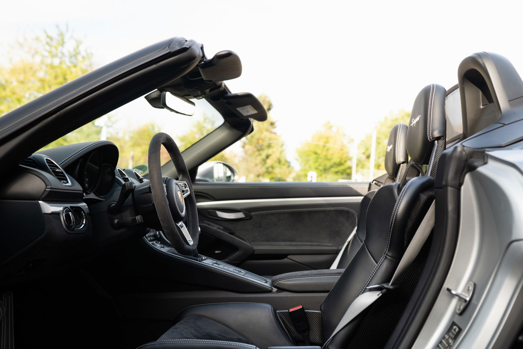 Zum Verkauf steht ein wunderschöner Porsche 718 Spyder in GT-Silber! Das Fahrzeug verfügt über die Technik des Cayman GT4 mit dem 4.0L Saugmotor und 420PS! Er kombiniert das Feeling des legendären Porsche 550 Spyder, mit den Motorsportgenen der modernen Porsche GT-Modellen. Dieses Fahrzeug hat ab Werk die Carbon Schalensitze des Porsche 918 Spyder!
