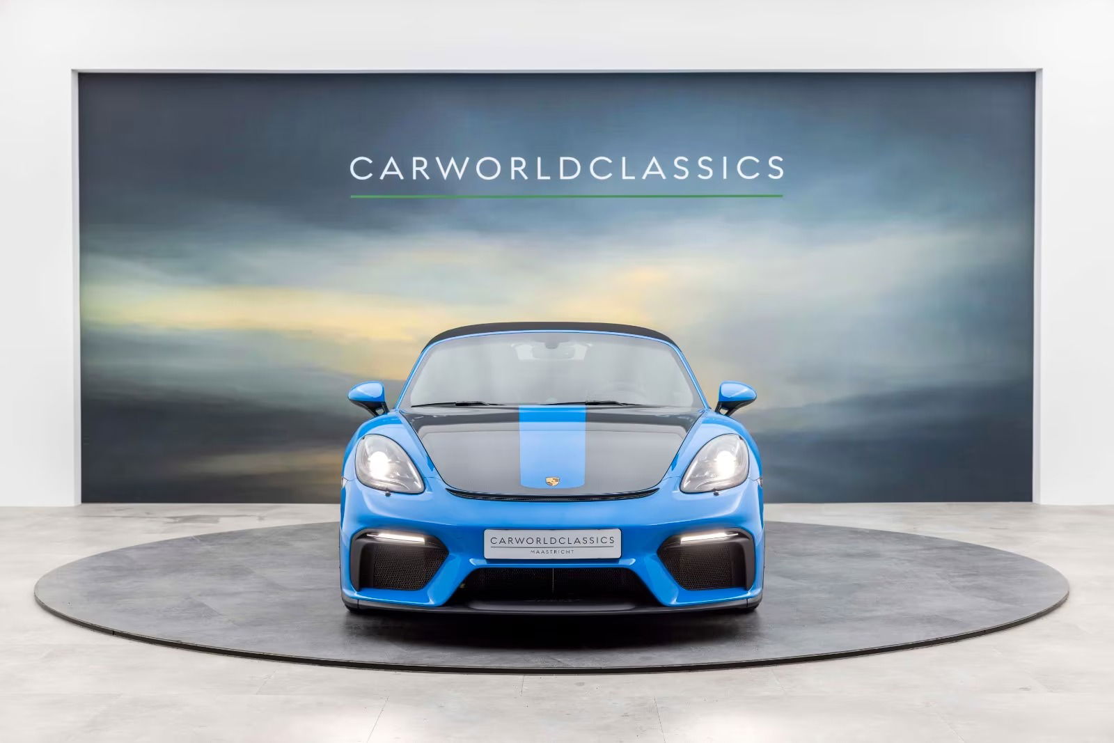 Sehr gepflegter Porsche 718 Boxster Spyder 4.0 PDK 420PS GT Silber metallic (in moment GT4 RS Blau foliert) mit Schwarz stoff/leder Tartan interior.