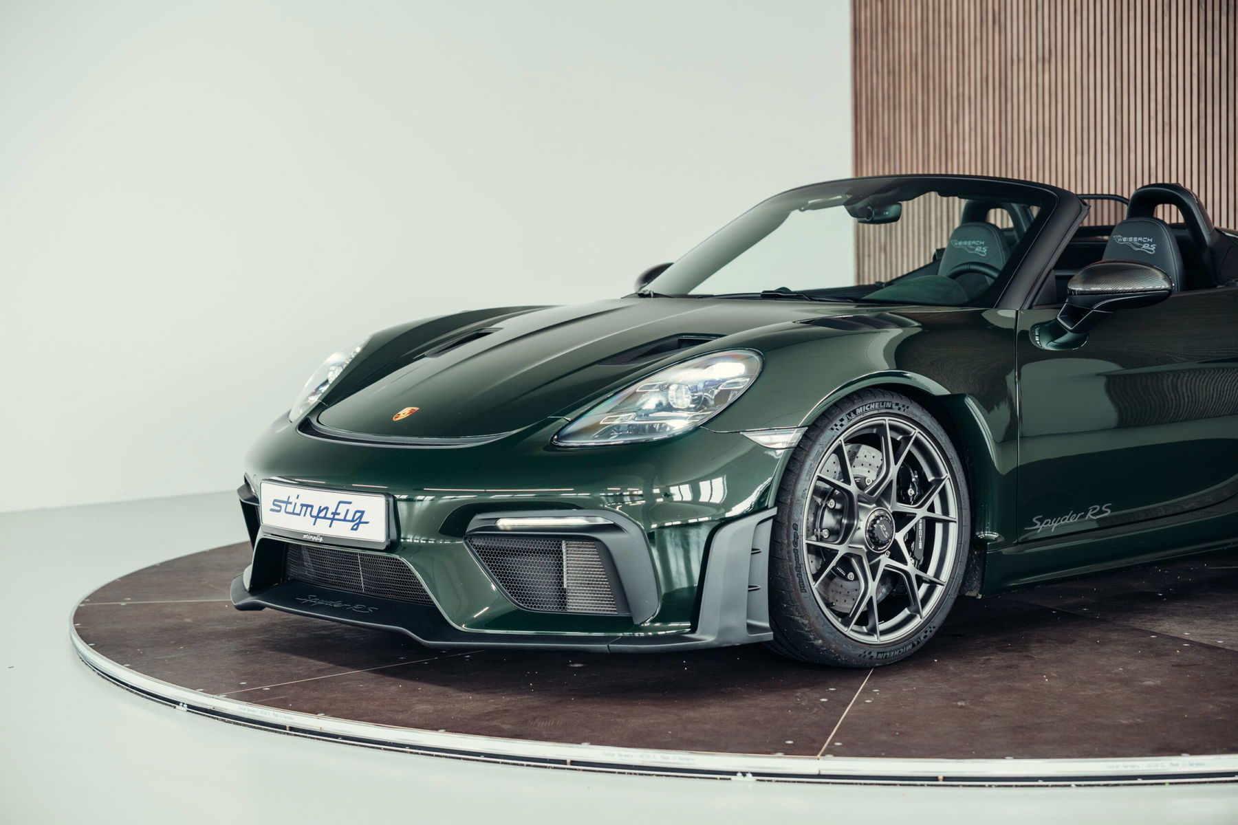 Zum Verkauf steht ein sehr gepflegter Porsche 718 Boxster Spyder RS in der schönen begehrten PTS Sonderfarbe „Brewster Green“ mit Weissach-Paket.