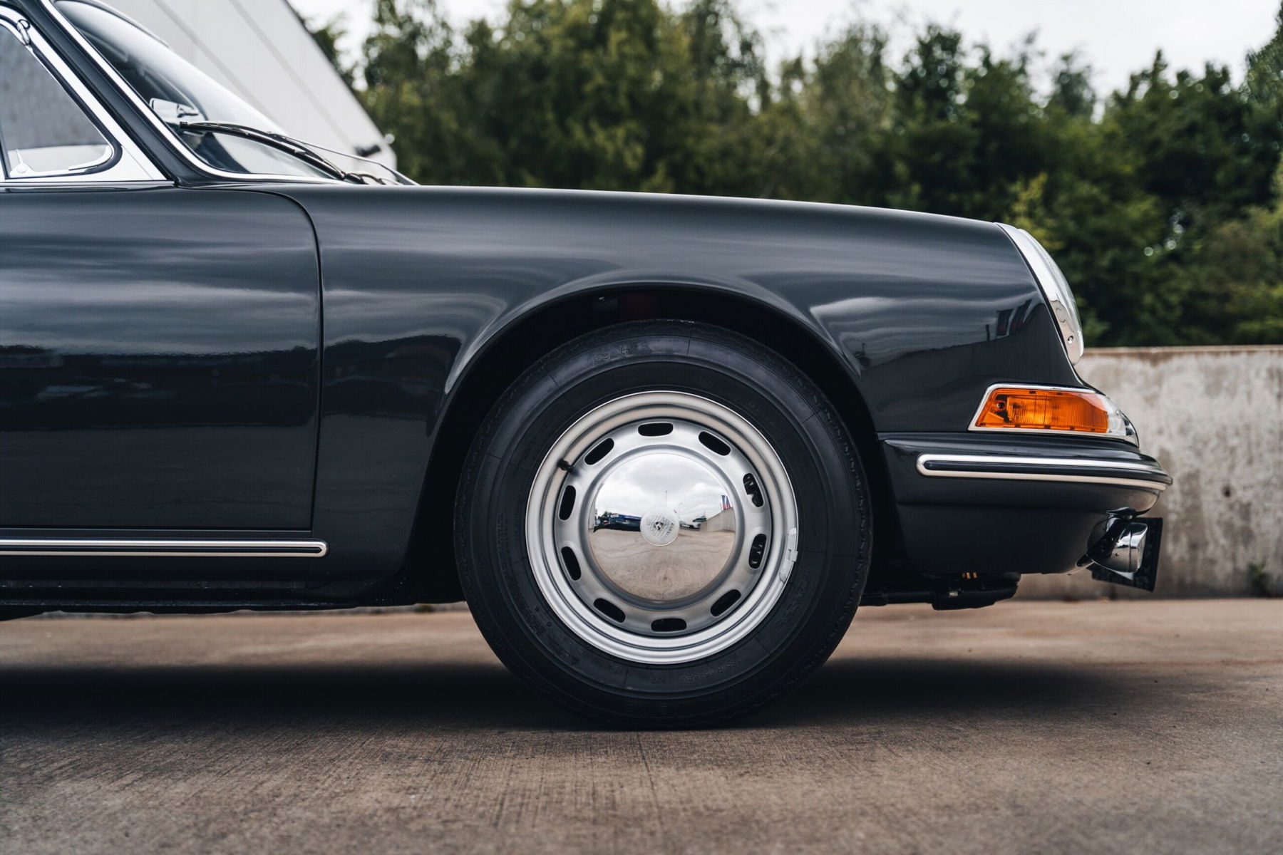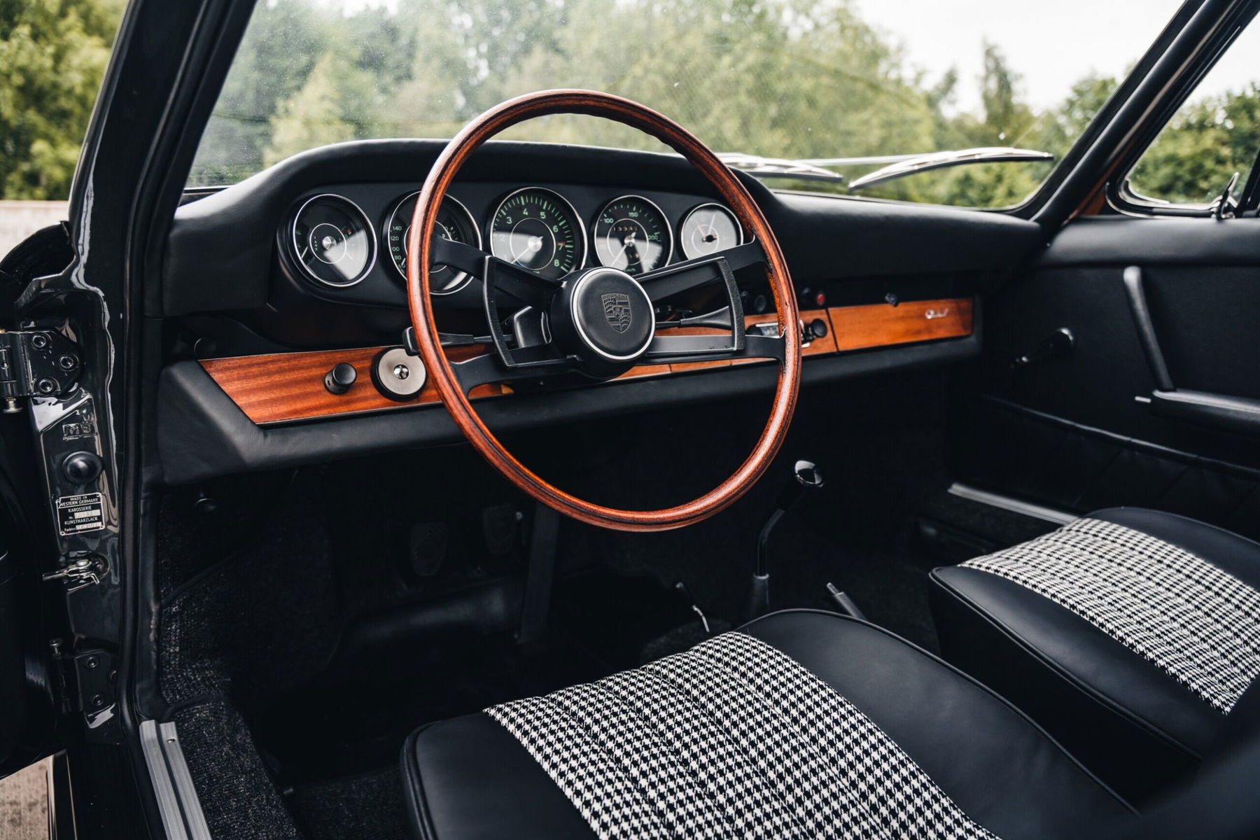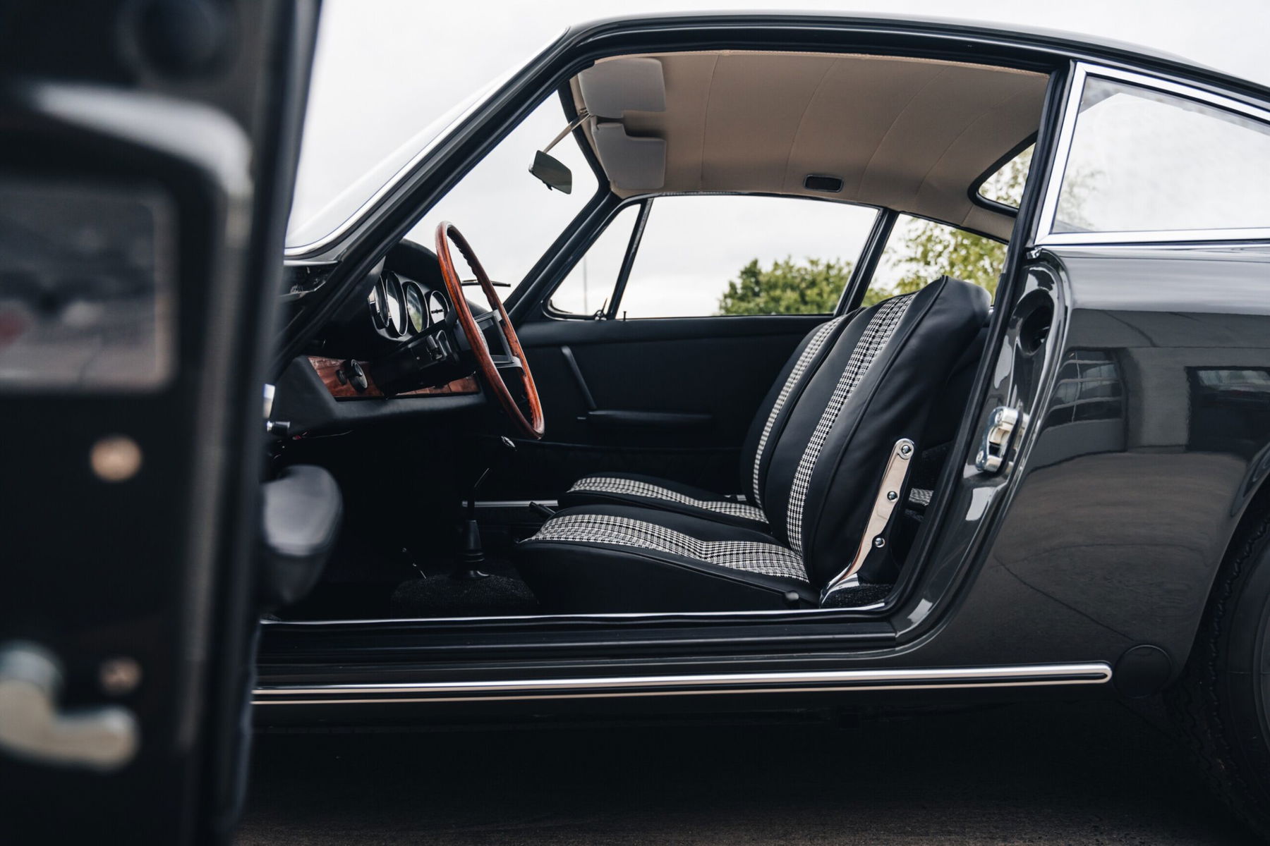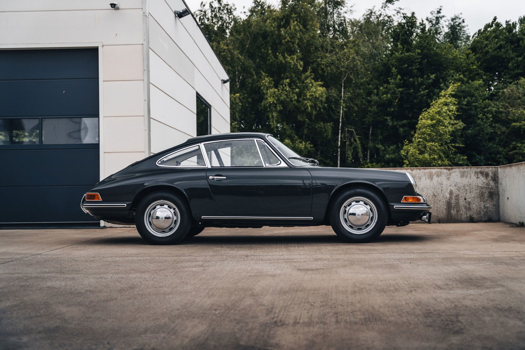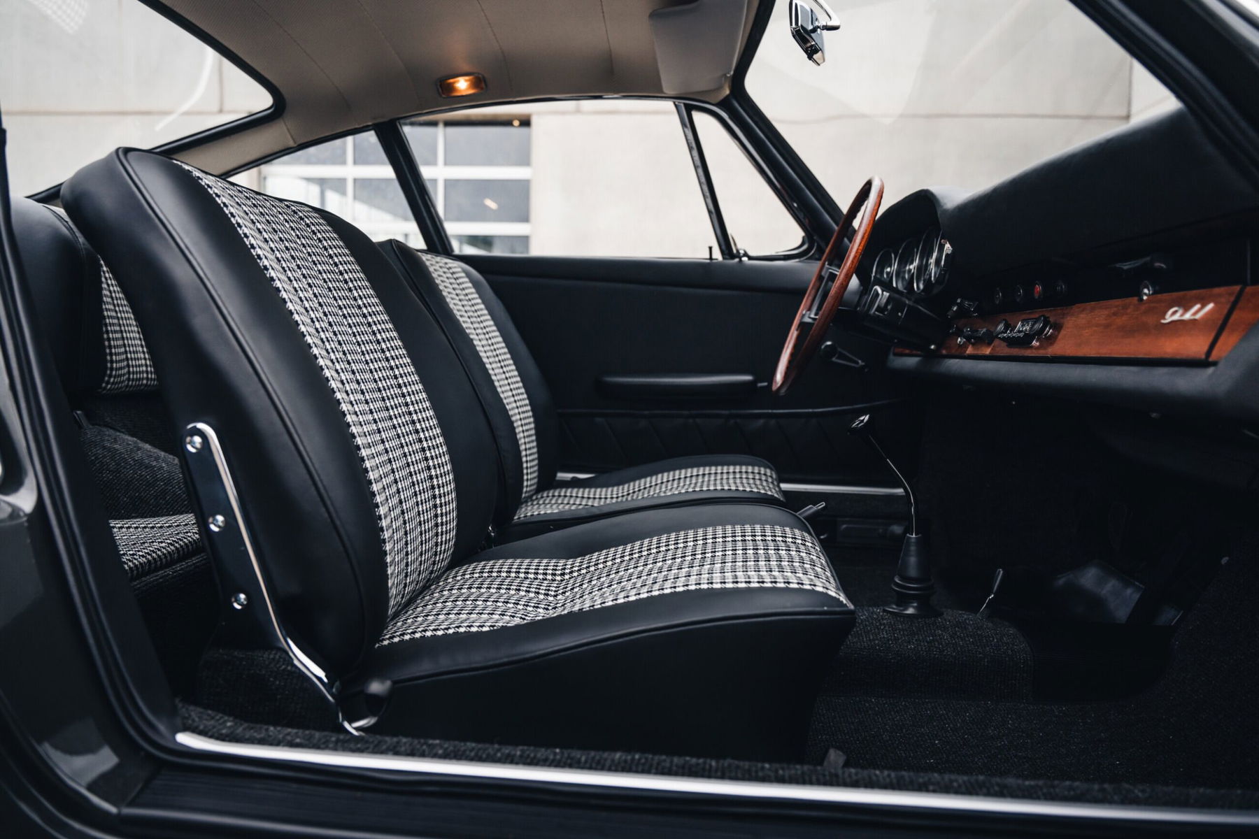 Dieser wunderschön restaurierte 1966er Porsche 911 ist ein Beispiel für die Reinheit der frühen 911er Linie. In seiner ikonischen Originalfarbe Schiefergrau (6601) und einem schwarzen Interieur mit zeitgemäßen Pepita-Einsätzen (Hahnentritt) kombiniert dieses Exemplar mit kurzem Radstand schlichte Eleganz mit klassischem Porsche-Design.