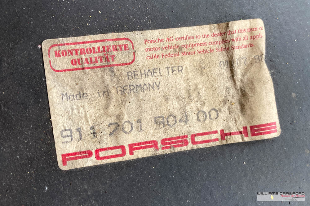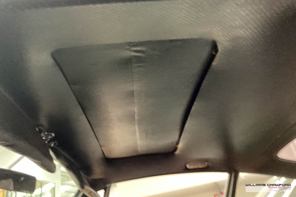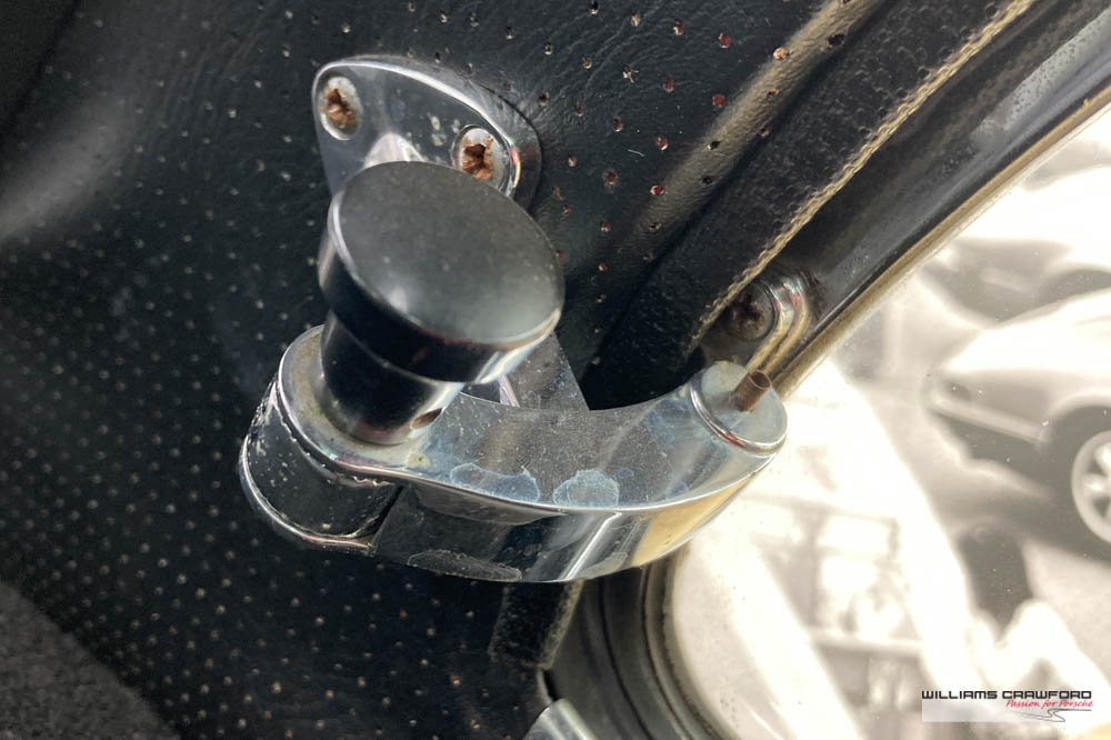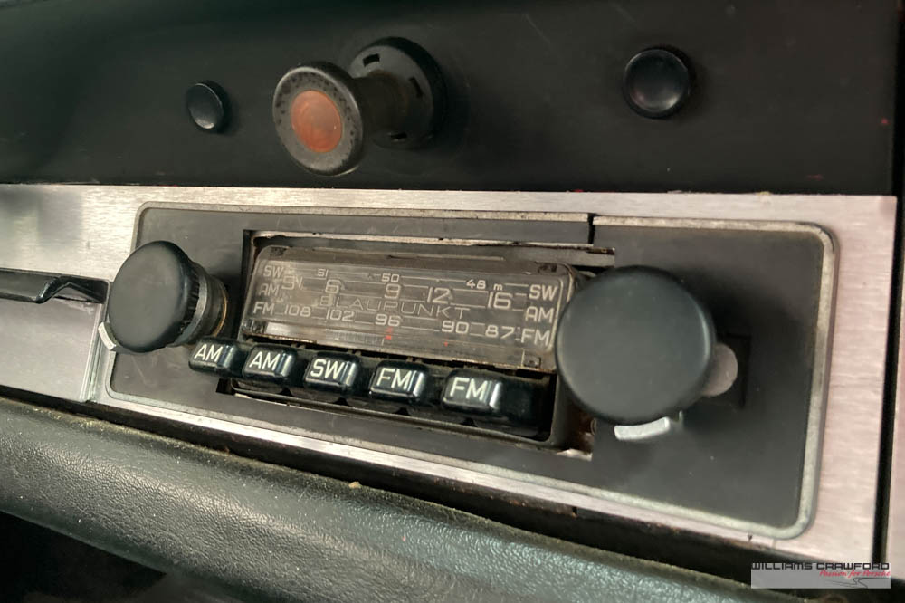 Hunt around and original details abound; the bumper horns, the antenna, plus a very rare factory (option 9474) electric sunroof, with the drains exiting at the back of the roof (unique to these early 911). The original radio, jack, spare and aged toolroll are found under the trunk.