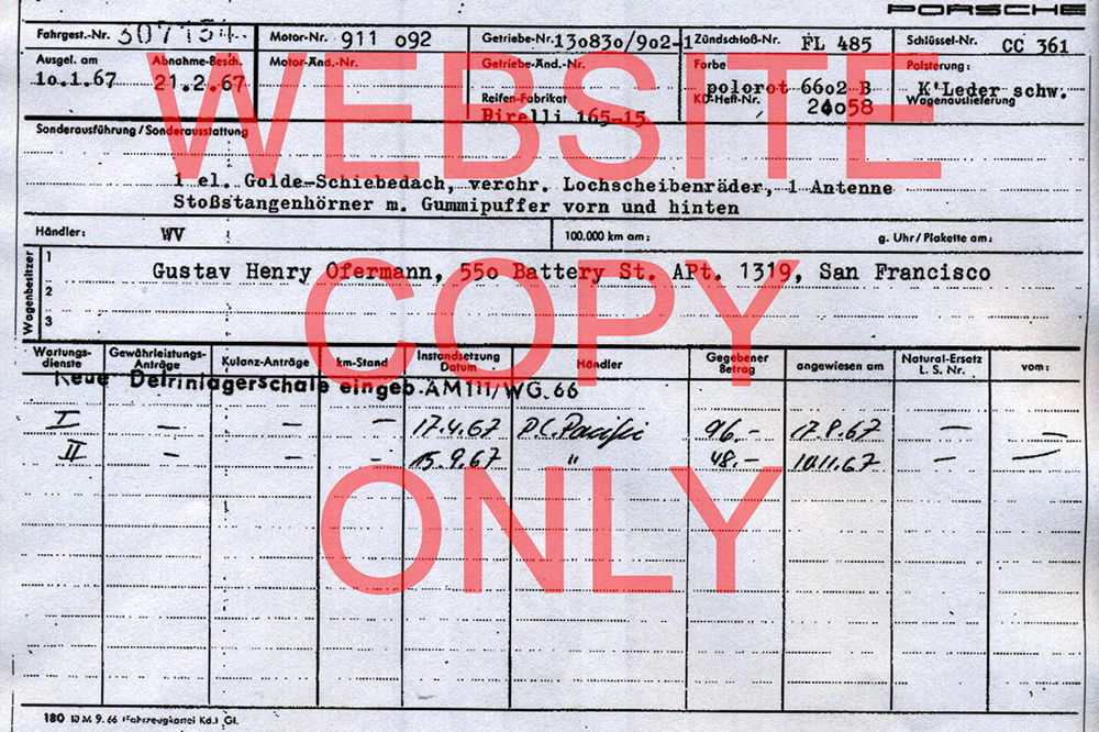 It comes with a copy of the original Kardex, and has had just 3 owners all in the Grass Valley area of California. The UK owner did some research and has a great story to tell of the ownership, Scott Schmidt, Aaron Johnson and the original owner, Gustav Ofermann.