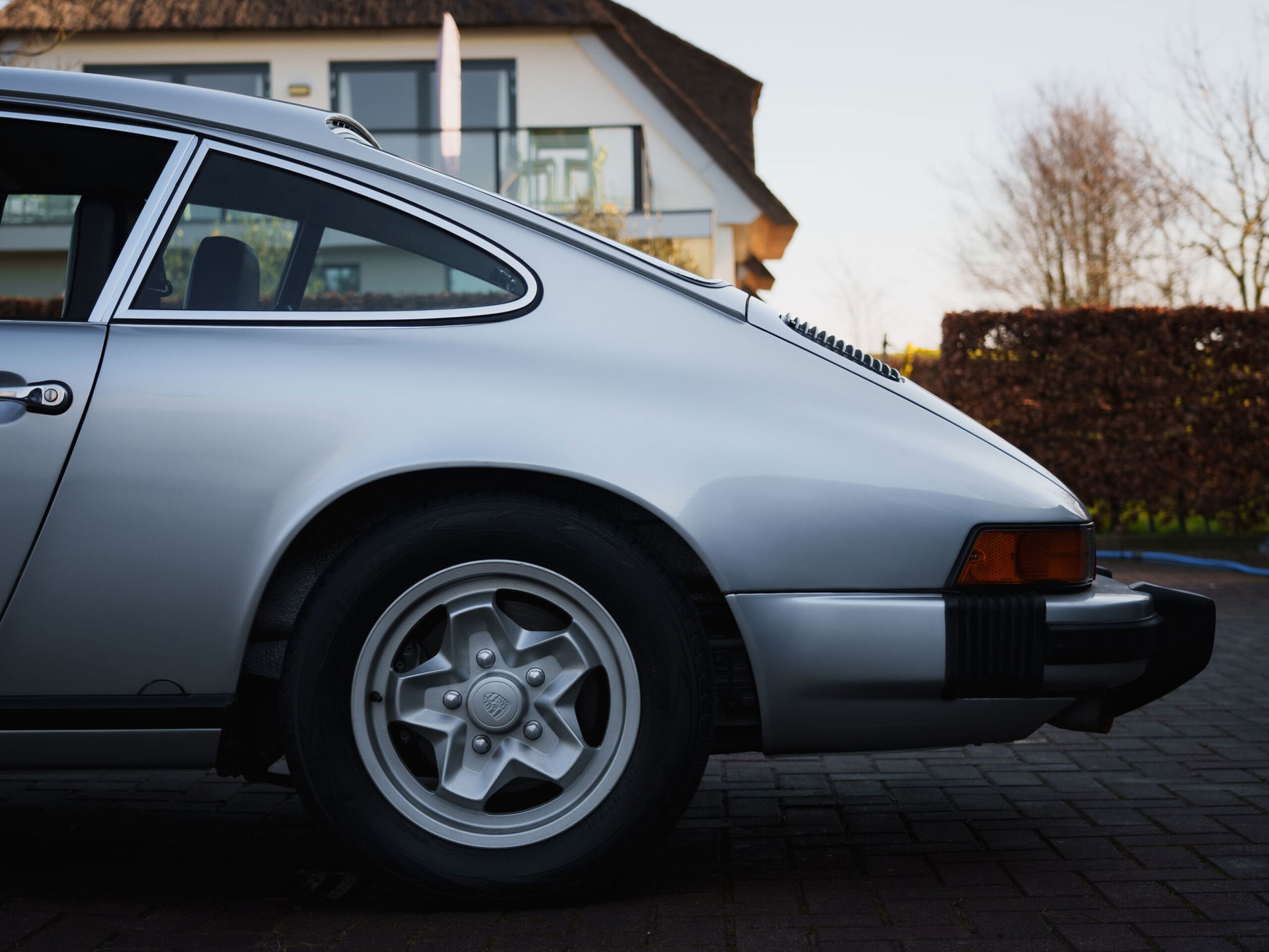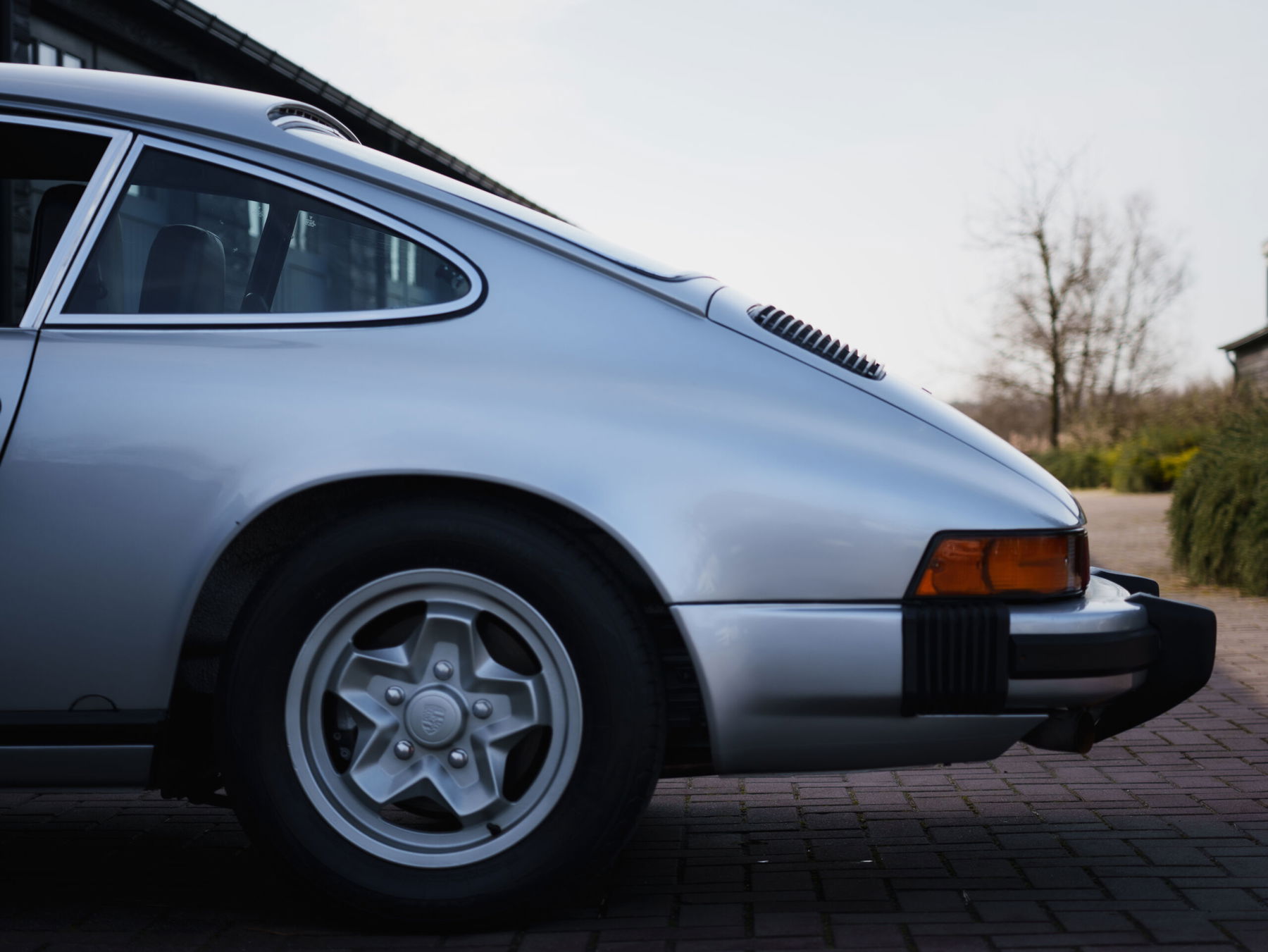 Die 1975 Silver Anniversary Edition wurde anlässlich des 25-jährigen Jubiläums der Porsche-Produktion eingeführt und gilt weithin als die erste offizielle Sonderedition des 911 von Porsche. Mit nur 510 produzierten Exemplaren des 911S Coupé Silver Anniversary Edition ist es zu einem begehrten Sammlermodell geworden. Diese Jubiläumsedition ist sofort an ihrer silbermetallic Lackierung, den Chromverkleidungen und ihrer unverwechselbaren Tweed-Jubiläumsausstattung mit passenden Polstern zu erkennen. Außerdem verfügt sie über eine nummerierte Jubiläumsplakette auf dem Armaturenbrett und spezielle, nur für die 25 Jahre Jubiläumsedition erhältliche Ausstattungsdetails. Dieses Fahrzeug hat eine Laufleistung von 78.151 Meilen und verfügt über einen gestempelten Porsche-Servicebericht. Als Werksoption ist es mit einem Carrera-Sportlenkrad (380 mm) ausgestattet. Die hintere Stoßstange wurde auf das europäische Design umgerüstet, was das klassische Erscheinungsbild des Fahrzeugs unterstreicht.