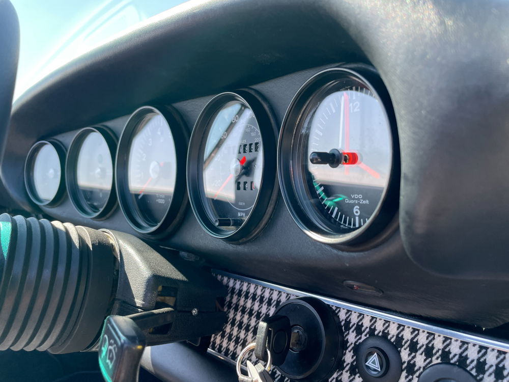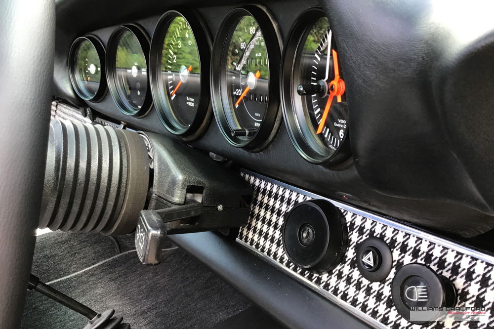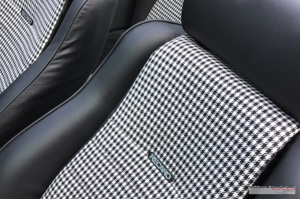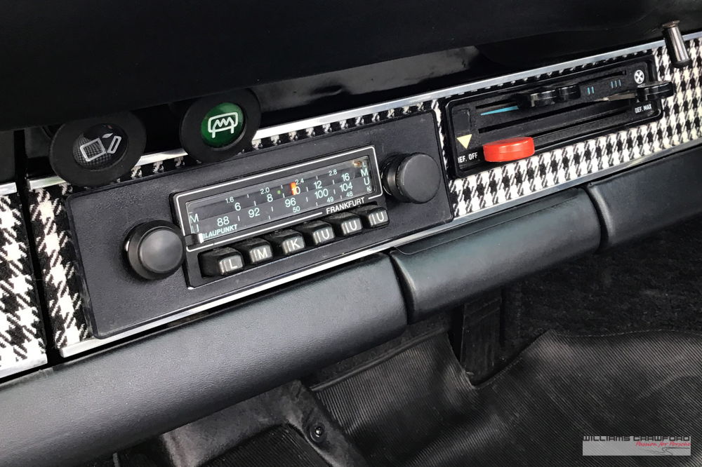 The interior is beautiful, finished in the finest black German leather with houndstooth details. The Recaro seats are heated and there are new door and dash speakers for the Blaupunkt ‘Frankfurt’ radio.