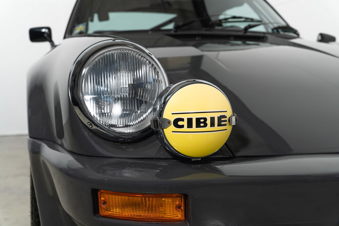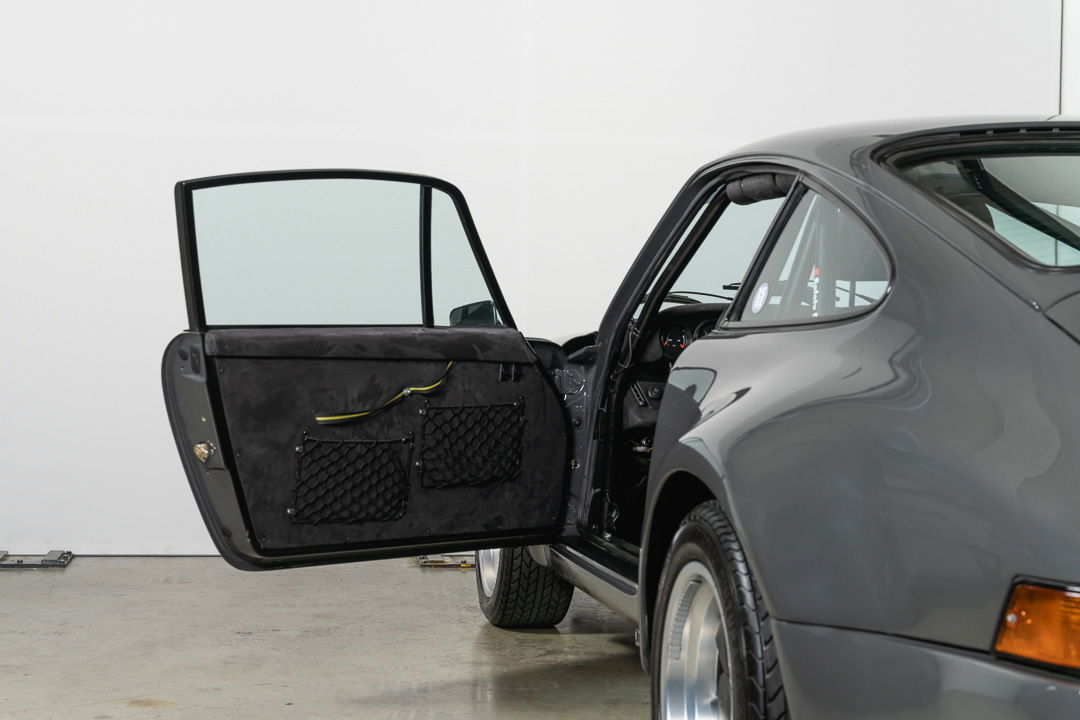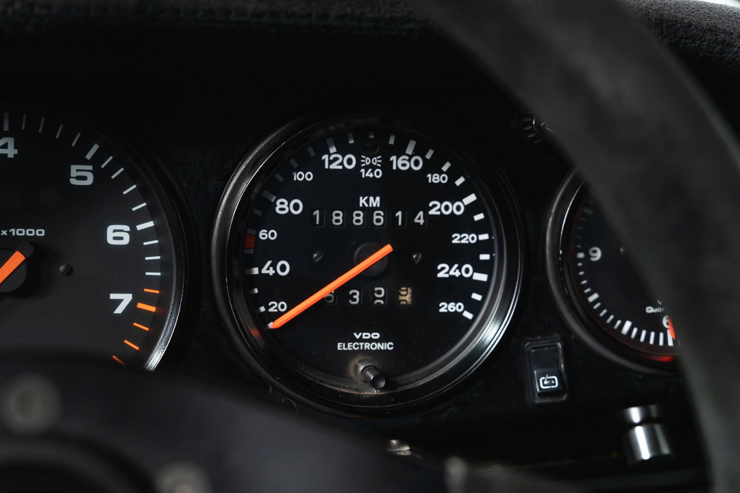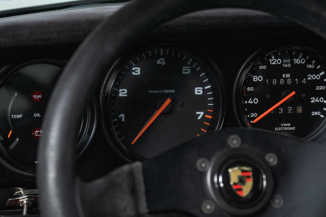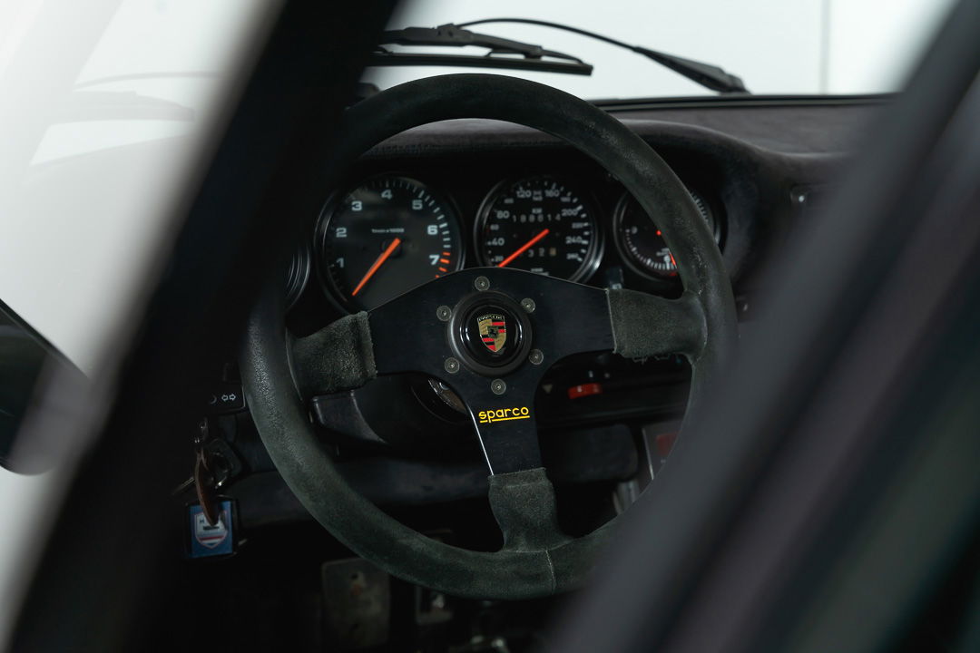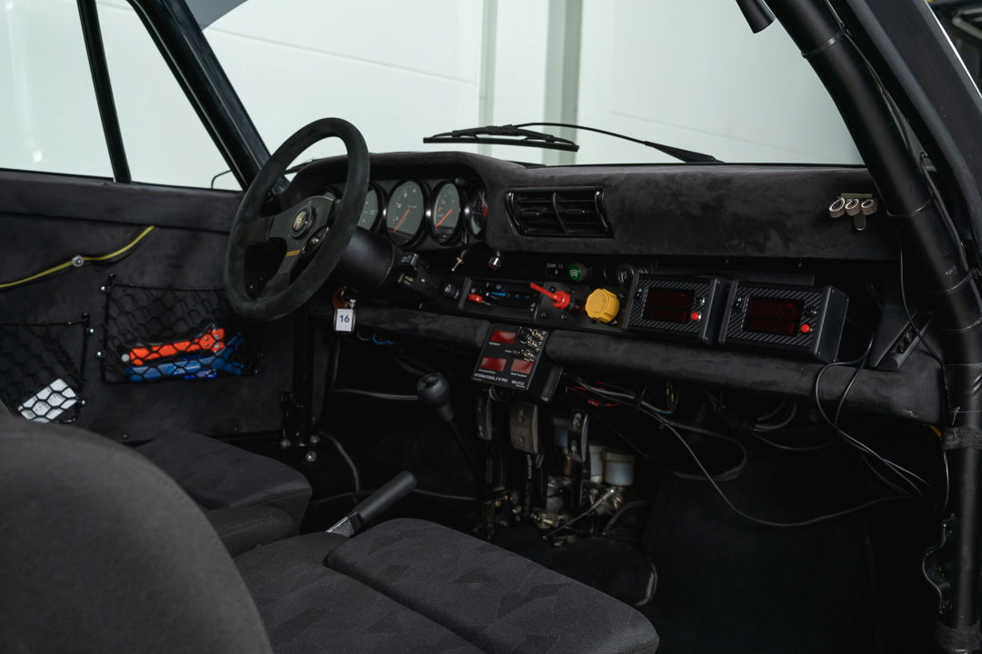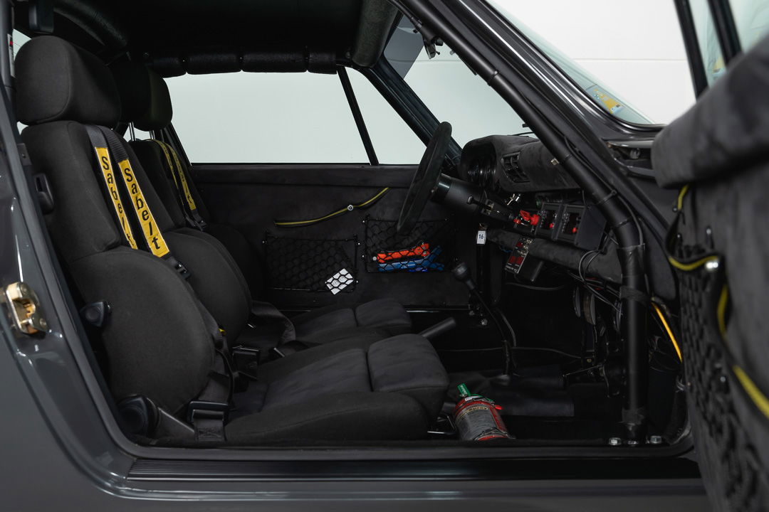 Under the dark-grey sheet metal hides technology that makes this Porsche a very serious rally weapon. The original 3-litre engine has been replaced by Porsche’s famous 3.2-liter air-cooled six-cylinder boxer. As standard, this engine delivers 231 hp. It is mated to the legendary G50 gearbox, a differential lock ensures that there is never a moment’s loss of power, even if the rear wheels have to find their traction on a slippery, unpaved surface.