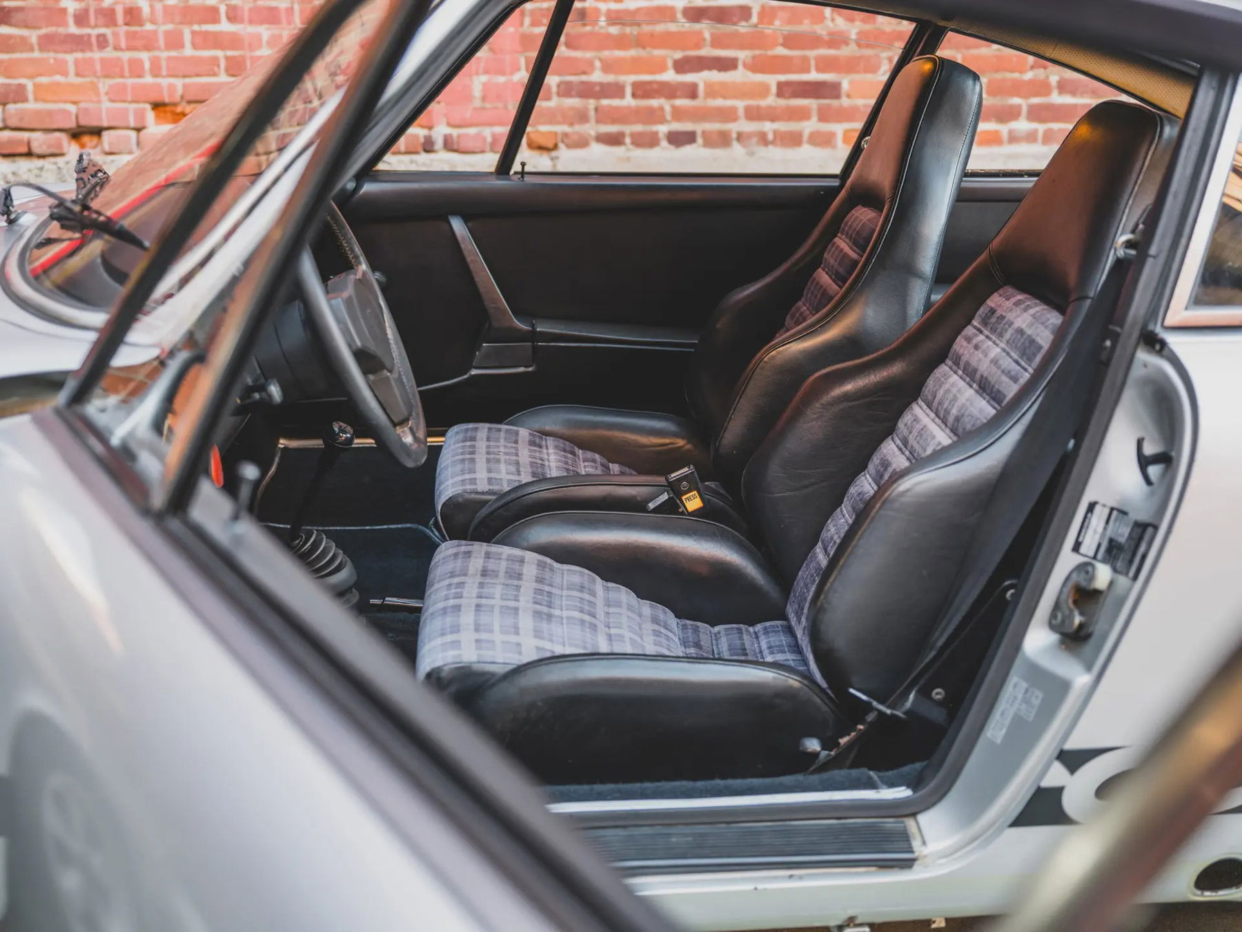 Kürzlich habe ich die Sitze gegen diese Tartan-Velours-Sportsitze ausgetauscht, einen Ducktail und einen Carrera-Schriftzug an der Seite hinzugefügt und die Motorhaube in einer Farbe lackieren lassen, die ich gerne als R- oder ST-Zweifarbenlackierung bezeichne. Auch wenn ich einige persönliche Akzente gesetzt und das Auto neu lackieren lassen habe, ist es dennoch sehr original geblieben. Es hat seinen Originalmotor und wird mit einem Porsche-Echtheitszertifikat geliefert.