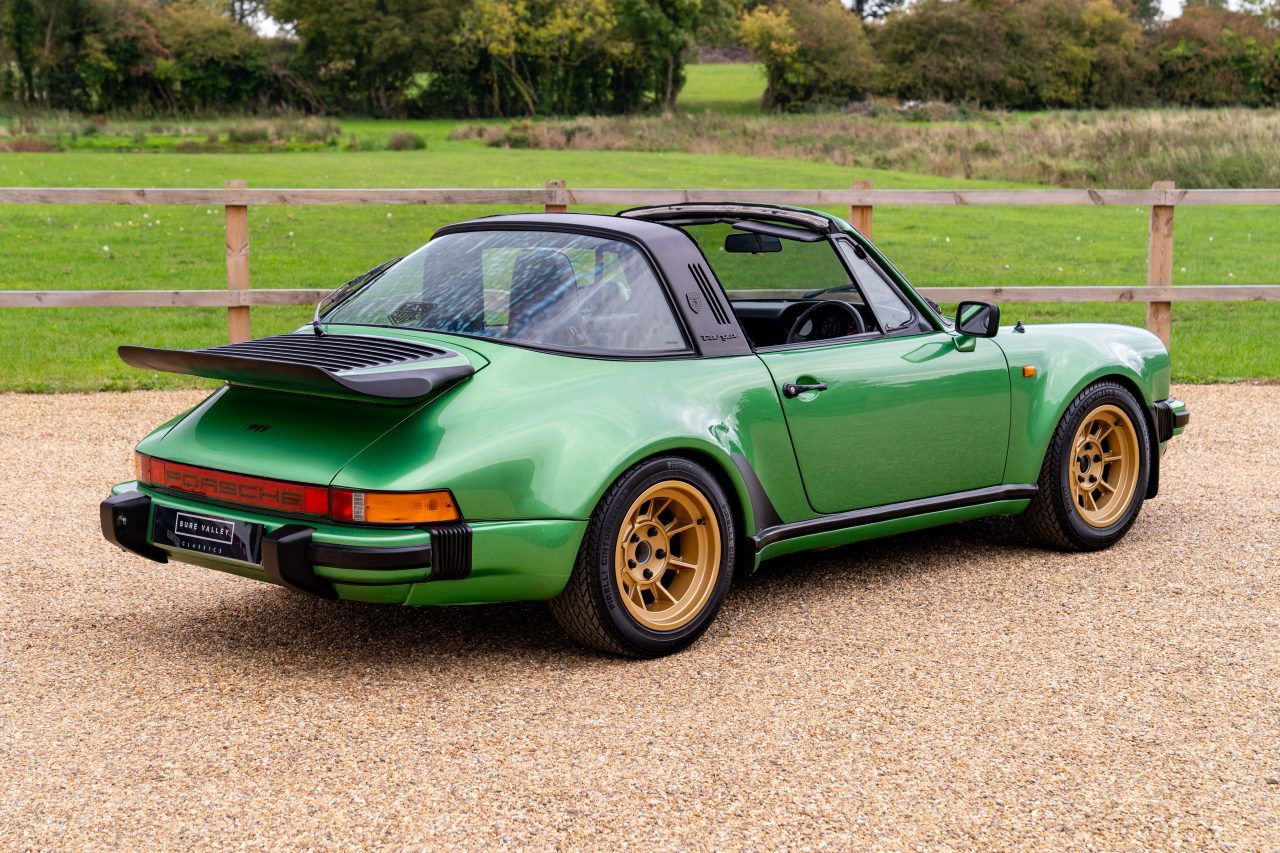 Dieser 1976 Porsche 911 Targa ist ein charaktervolles und gut sortiertes Fahrerauto. Wunderschön präsentiert in seiner originalen Werksfarbe Smaragdgrün mit der seltenen und begehrten werksseitigen grün-blauen Tartan-Innenausstattung, die gerade mit dem richtigen Stoff neu bezogen wurde. Das Fahrzeug wurde zuvor auf die „Turbo”-Breitbau-Spezifikation umgerüstet und ist in der britischen Luftkühlerszene sehr bekannt. Es wurde gebaut, um Freude zu bereiten, was es auch zweifellos getan hat. Es wurde sorgfältig aufgerüstet, mechanisch überholt und hat sich auf mehreren Europatouren mit dem Team von Boxengasse bewährt.