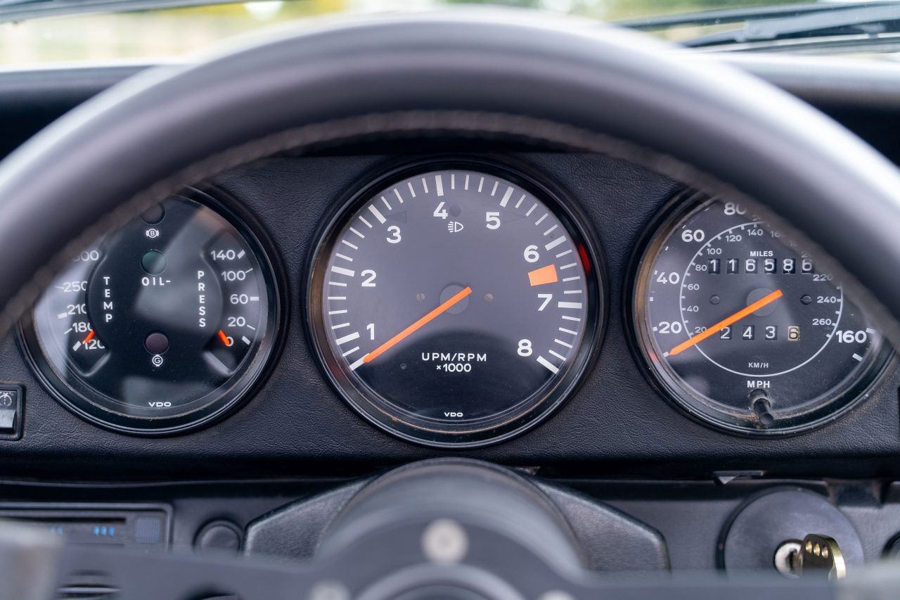 Dieser 911 mit einer Laufleistung von 116.000 Meilen wurde 2017 restauriert, wobei er neue Schweller, Nierenschalen und eine komplette Neulackierung erhielt. Seitdem hat er zahlreiche Kilometer in ganz Europa zurückgelegt, was sowohl seine Zuverlässigkeit als auch seine Fahrbarkeit unterstreicht. Die Leistung stammt von einem starken 3,0-Liter-SC-Motor, der ebenfalls 2017 überholt wurde und mit einem 5-Gang-915-Getriebe kombiniert ist, das von einer neuen Kupplung und einem leichten Schwungrad profitiert. Die Abgasanlage wurde mit SSI-Wärmetauschern aus Edelstahl und einer Dansk-Sportauspuffanlage aufgerüstet, die für einen wunderbaren Sound sorgt. Das Fahrwerk und die Aufhängung wurden umfassend überarbeitet, mit neuen Bilstein-Stoßdämpfern rundum und neuen Buchsen. Er fährt auf 8- und 9-Zoll-Rädern der Gruppe 4, die mit fast neuen Pirelli Cinturato-Reifen bezogen sind. Die Bremsanlage ist serienmäßig und nicht servounterstützt, aber mit überholten Bremssätteln und verbesserten Bremsbelägen ausgestattet. Die Kombination aus seiner auffälligen, seltenen Farbe, den geschmackvollen Leistungsverbesserungen und der kontinuierlichen Nutzung machen diesen 911 zu einer großartigen Option und einem guten Preis-Leistungs-Verhältnis auf dem aktuellen Markt für luftgekühlte Porsche. Das Auto ist kein Ausstellungsstück und obwohl es sehr präsentabel ist, gibt es Gebrauchsspuren, einige Kratzer und Unvollkommenheiten an der Karosserie sowie altersbedingte Abnutzungserscheinungen im Innenraum. Dennoch ist es ein solides Fahrerauto mit großartiger Herkunft, das gebaut wurde, um gefahren und genossen zu werden.
