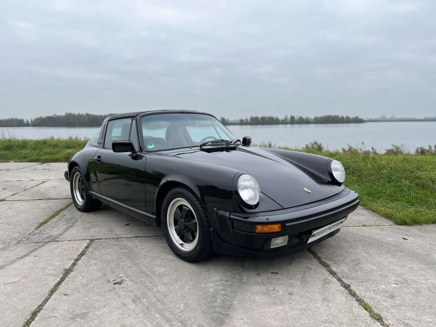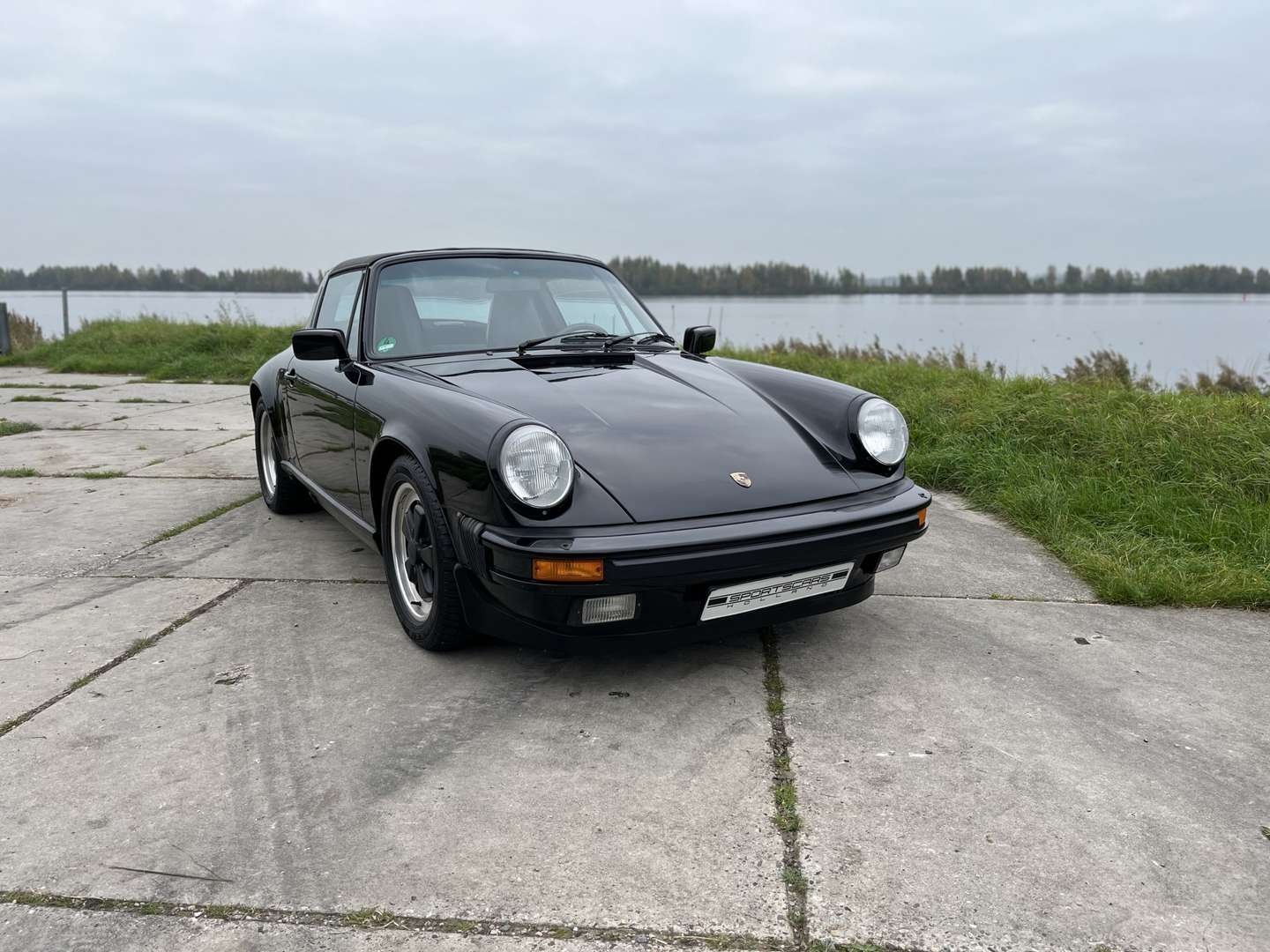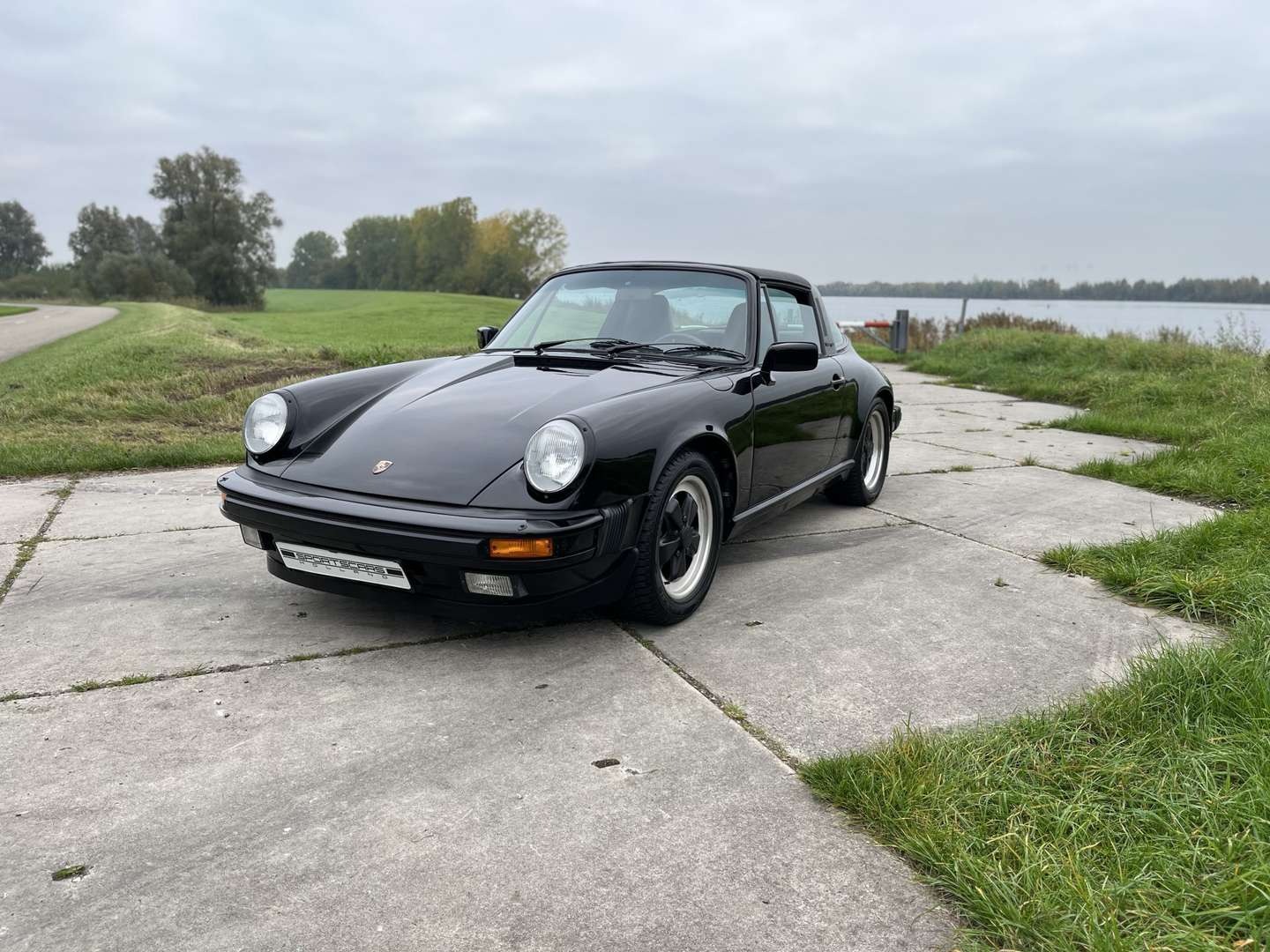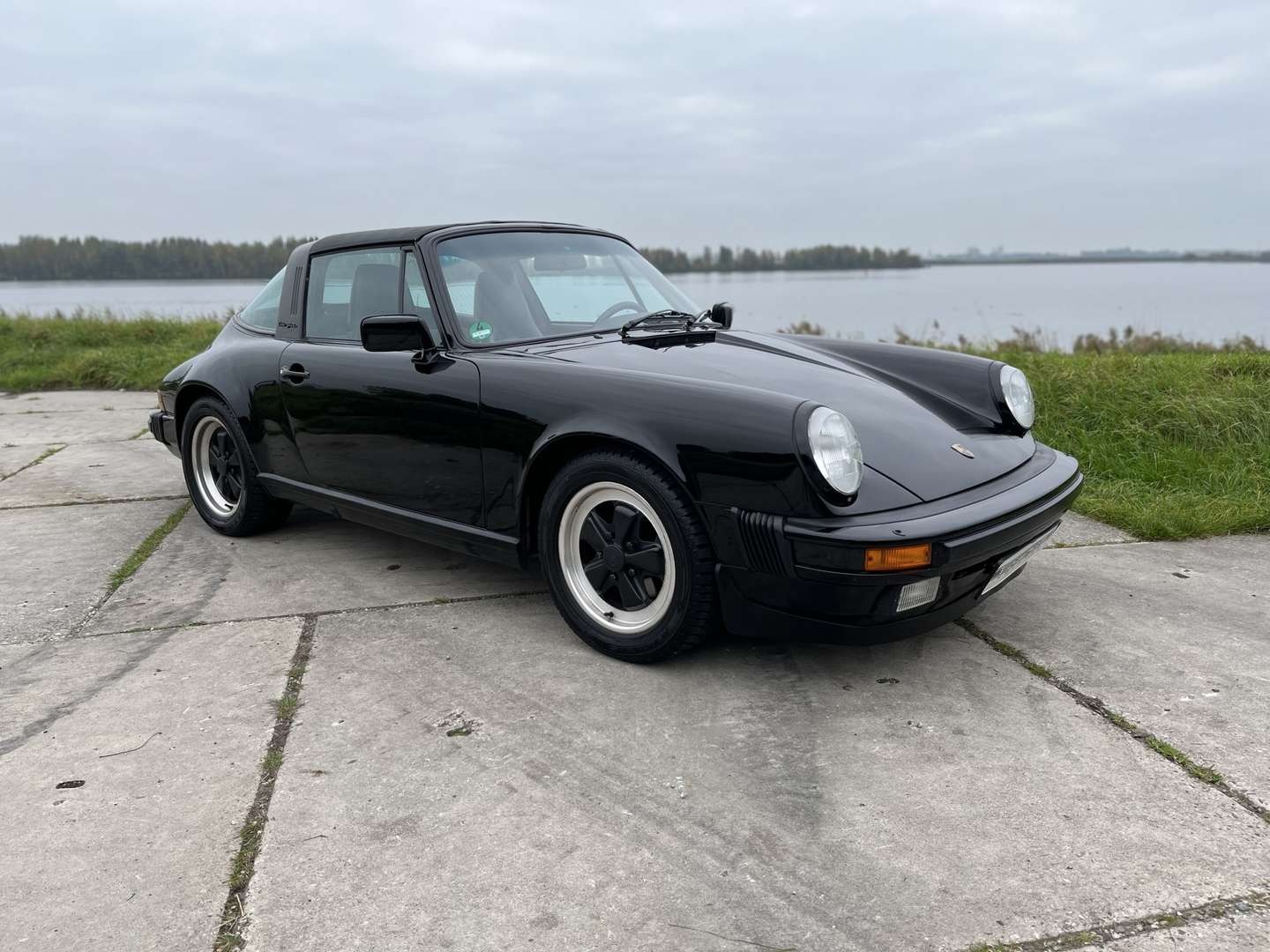 Schöner schwarzer Porsche 911 Carrera Targa. Dieser Porsche sieht mit seinem originalen 3,2-Liter-Motor und seiner originalen schwarzen Lackierung sehr original aus. Das Auto ist in gutem Zustand und fährt sich gut. Es gibt einige Wartungsunterlagen und keine Anzeichen für Unfälle. Es sieht so aus, als wäre das Auto nie geschweißt worden. Derzeit hat der Porsche eine deutsche Zulassung, aber wir können auf Wunsch auch eine niederländische Zulassung organisieren!