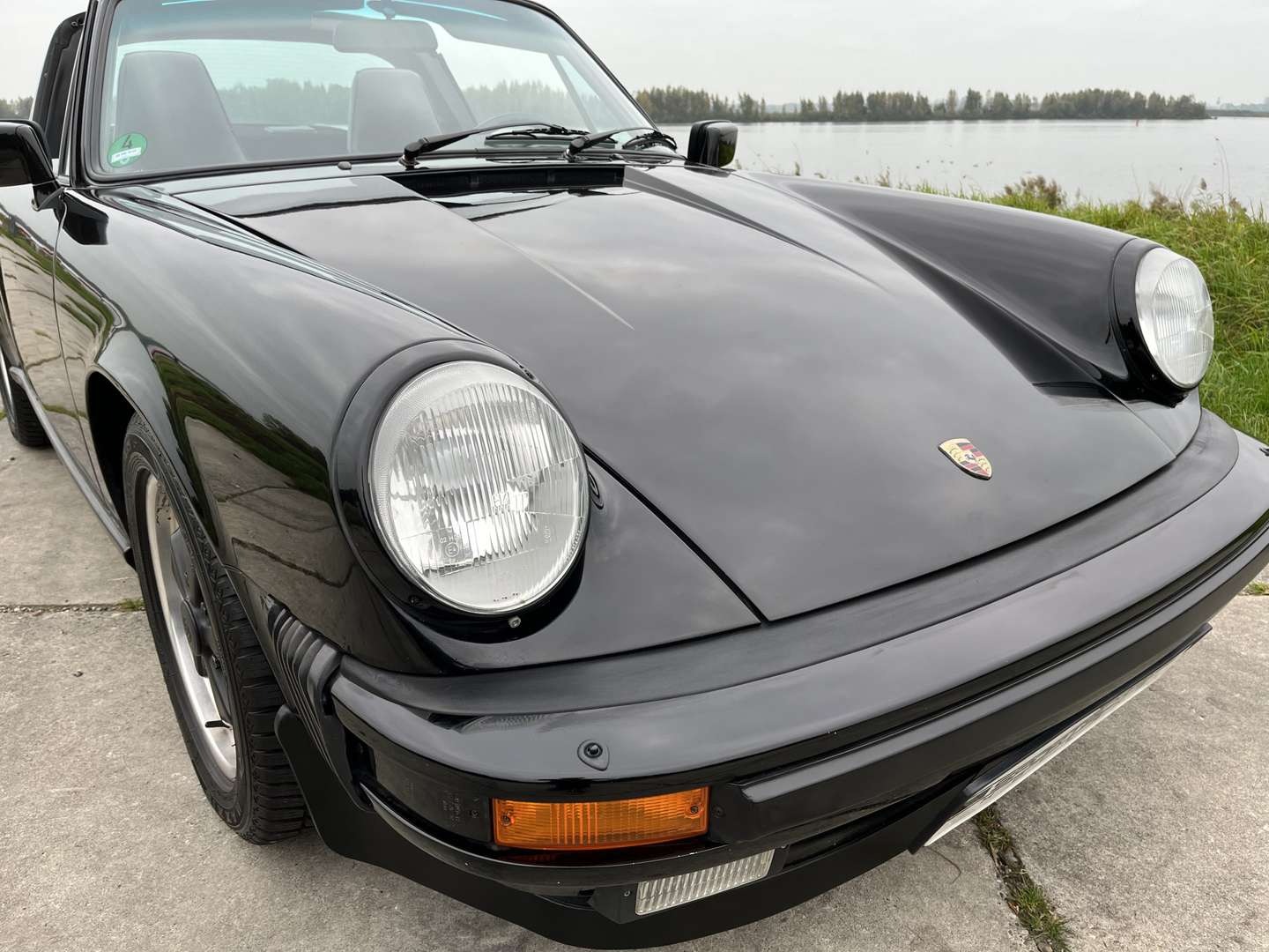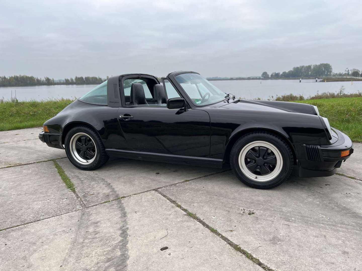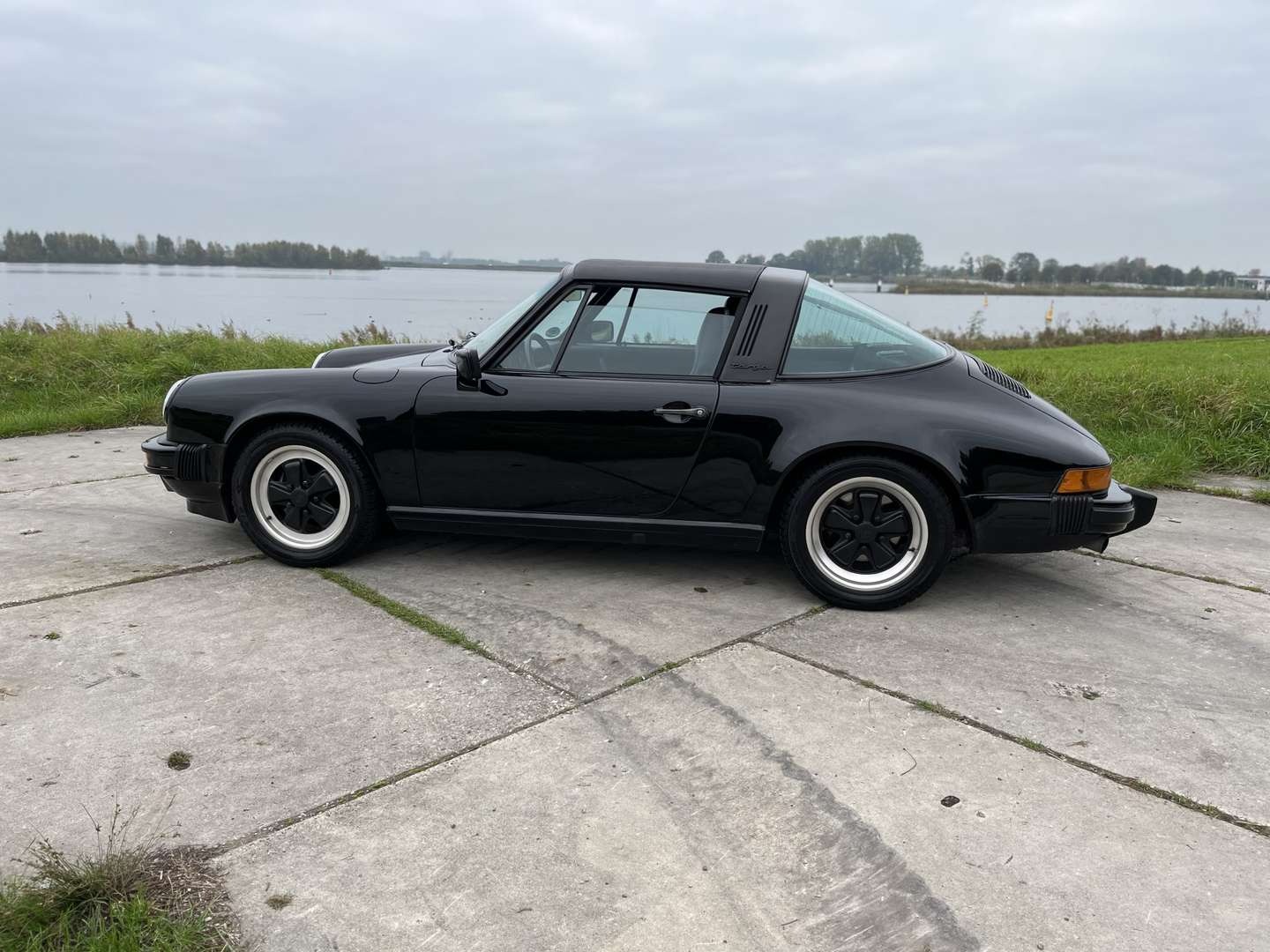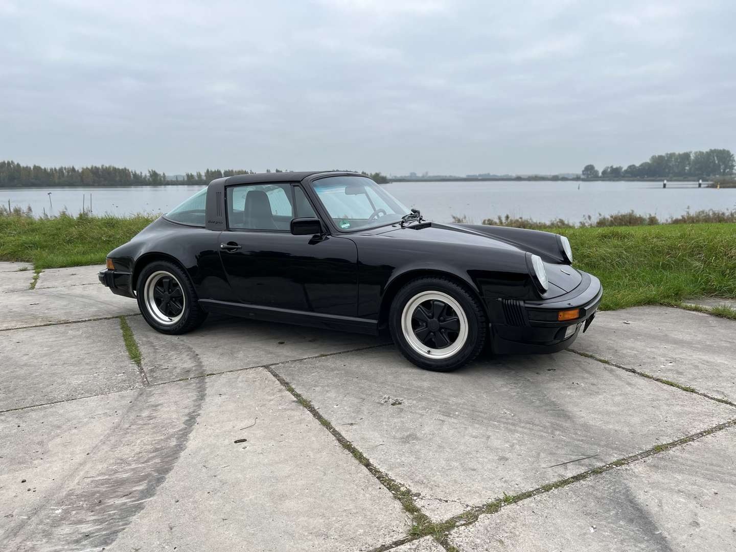 Schöner schwarzer Porsche 911 Carrera Targa. Dieser Porsche sieht mit seinem originalen 3,2-Liter-Motor und seiner originalen schwarzen Lackierung sehr original aus. Das Auto ist in gutem Zustand und fährt sich gut. Es gibt einige Wartungsunterlagen und keine Anzeichen für Unfälle. Es sieht so aus, als wäre das Auto nie geschweißt worden. Derzeit hat der Porsche eine deutsche Zulassung, aber wir können auf Wunsch auch eine niederländische Zulassung organisieren!