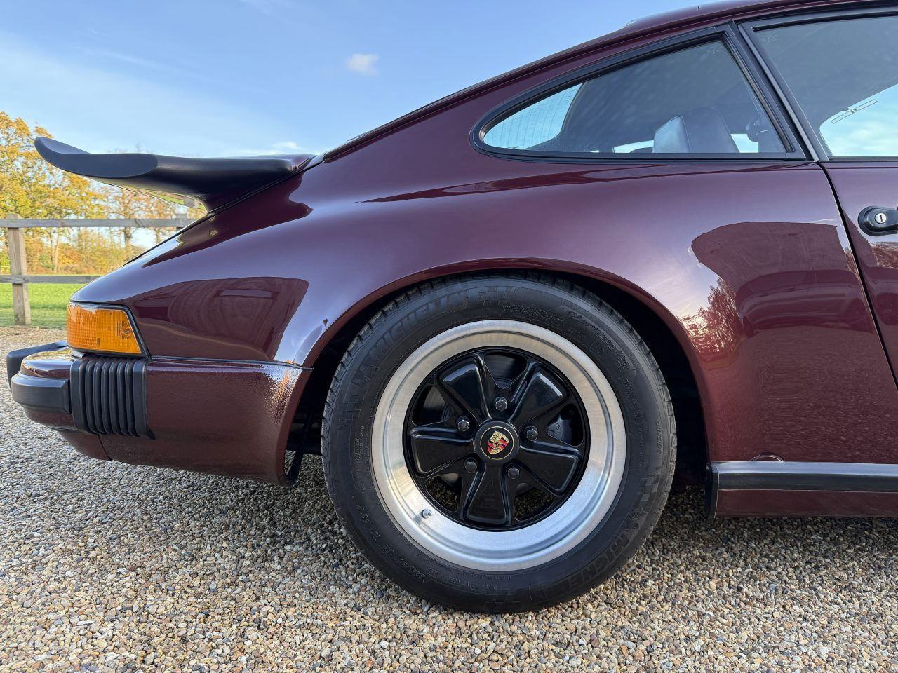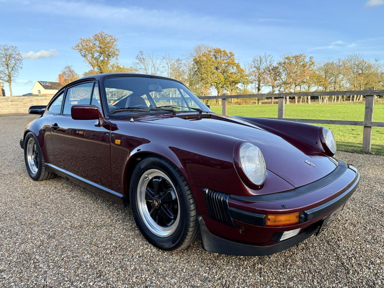 Ein wunderschön präsentierter früher 3.2 Carrera Sport in der seltenen und eleganten Farbkombination Granatrot mit einer wunderschönen burgunderroten Innenausstattung mit Nadelstreifen. Dieser 911 hat 95.000 Meilen zurückgelegt und wurde gut gepflegt und gewartet, wobei in den letzten drei Jahren über 10.000 £ investiert wurden. Das Fahrzeug wurde zuvor auf sehr hohem Niveau neu lackiert und befindet sich durchweg in einem ausgezeichneten kosmetischen Zustand ohne Rostspuren. Es steht auf seinen originalen 16-Zoll-Fuchs-Leichtmetallfelgen, die mit hochwertigen Michelin Pilot Sport 4-Reifen ausgestattet sind.