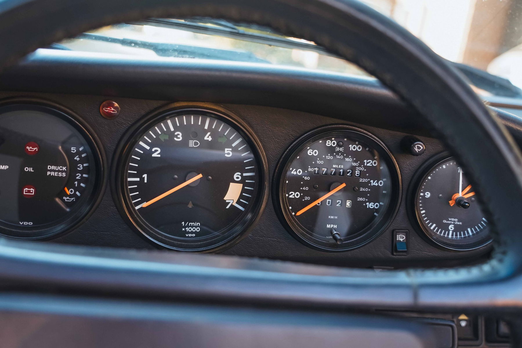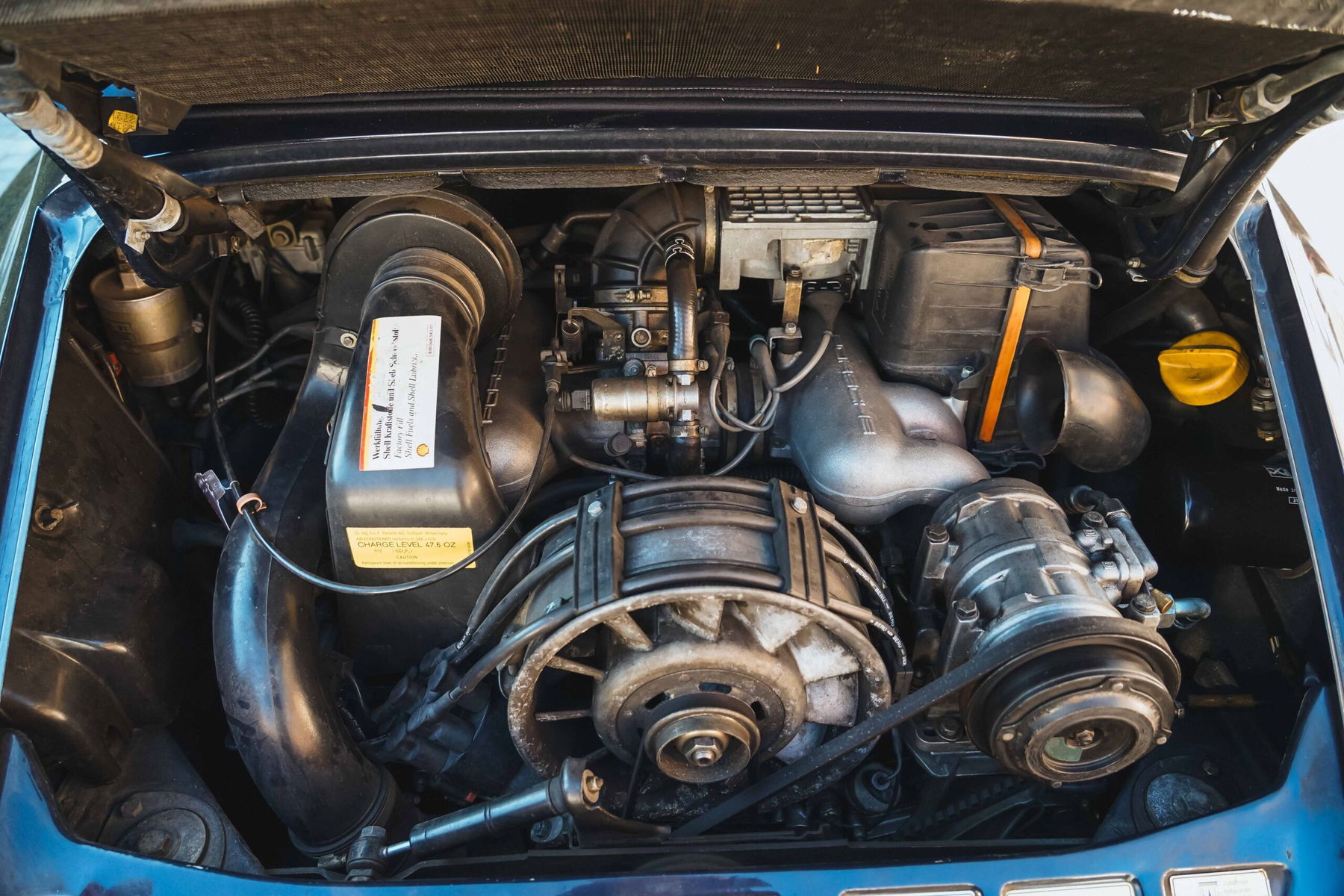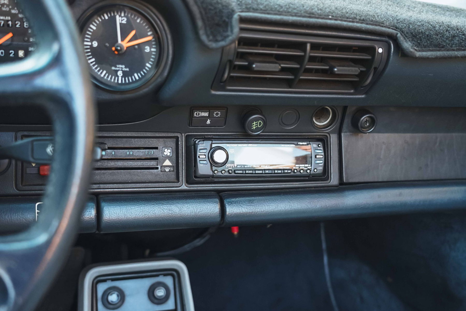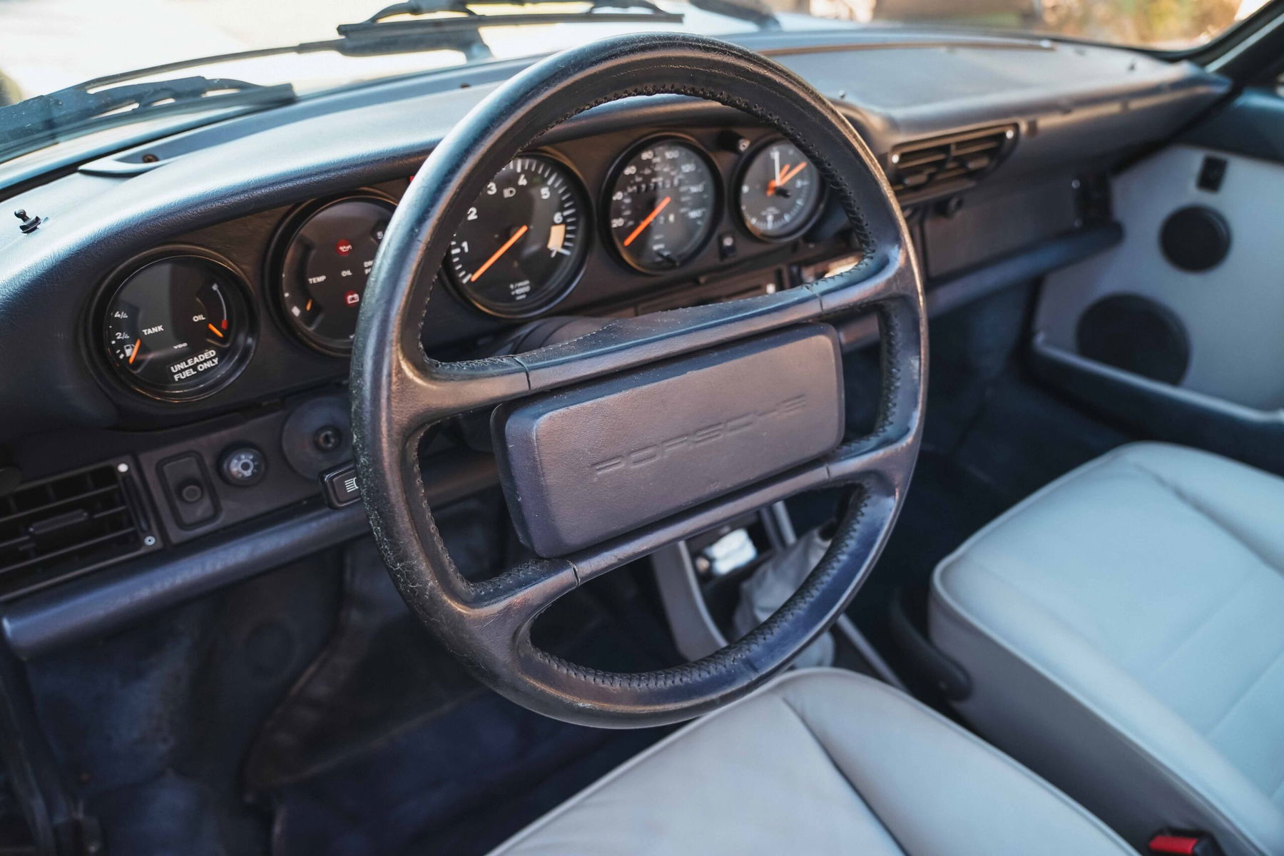 Zum Verkauf steht ein Porsche 911 Carrera Cabriolet (G-Modell) aus dem Jahr 1988 in klassischem Blau.