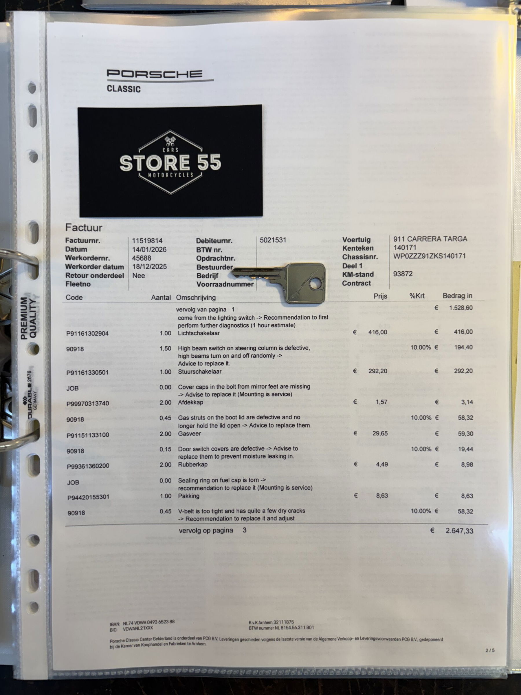 Unser 3.2 Targa G50 wurde gerade im Januar 2026 bei 93.877 km im Porsche Classic Center Gelderland einer Generalüberholung unterzogen