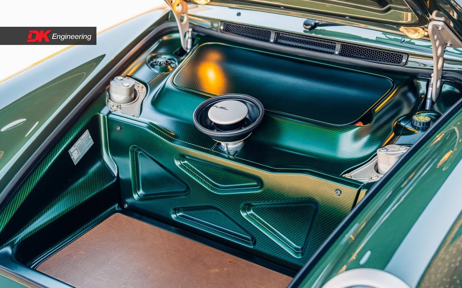 The green-tinted carbon fibre is not limited to the exterior, with the interior seeing a $80,000 of extended carbon fibre options, couple with just under $73,000 of extended leather and bespoke finishings.
