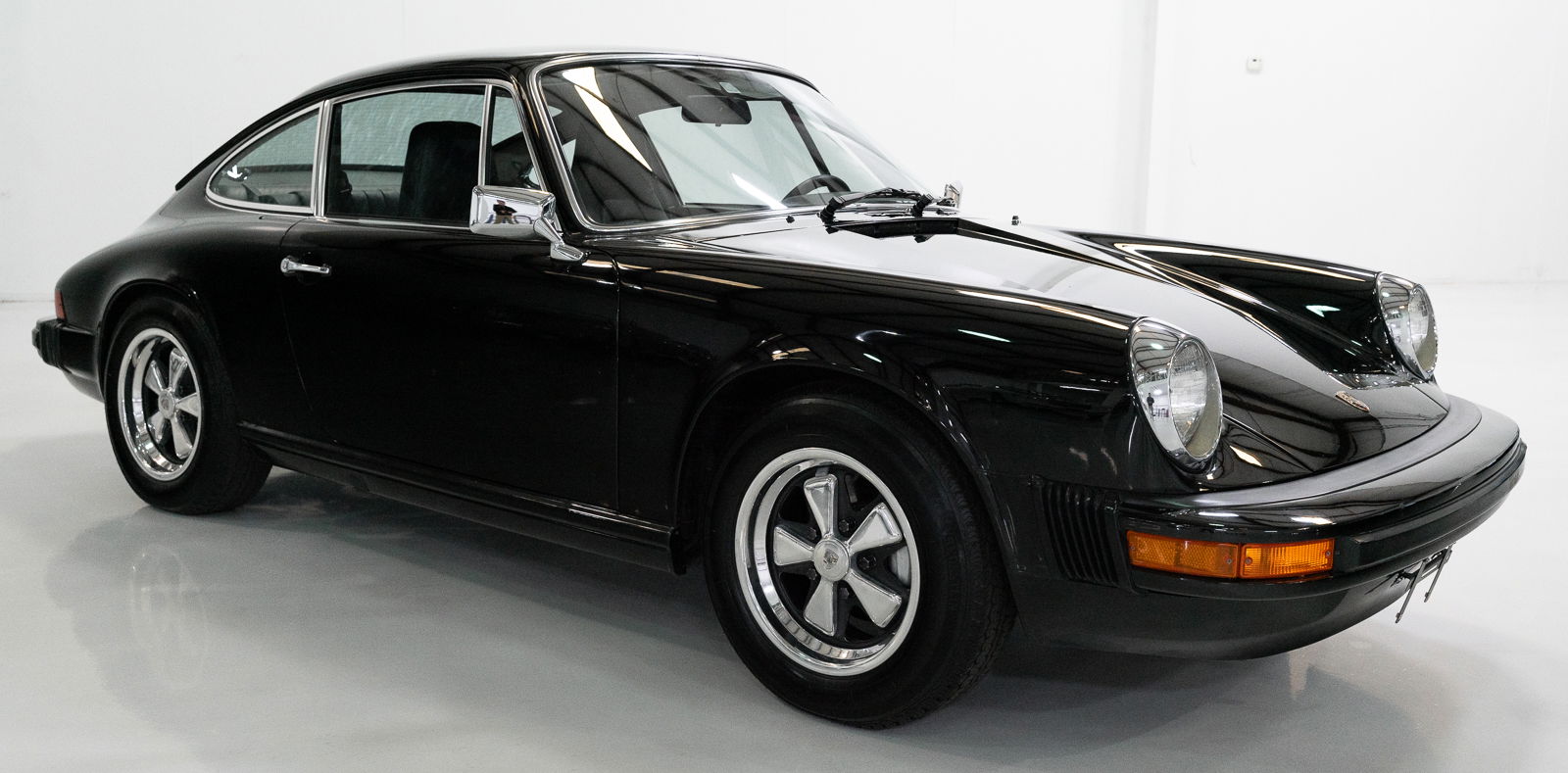 The incredible 1975 Porsche 911 S 2.7 Coupe featured here is finished in the special ordered and highly sought after color combination of Black over Black with chrome and aluminum trim throughout. This particular example was sold new at Allan Porsche in Burbank, California, and has been meticulously maintained from new. Today the 911 S presents in spectacular condition with completely original paint and interior while having accrued just 32,365 actual miles from new! The numbers-matching 2.7-liter engine and optional 5-speed manual gearbox are still in place, and the engine features upgraded chain tensioners for reliability. We are pleased to note the doors still close with that iconic Porsche “ping,” which is a feature that is impossible to replicate on restored examples.