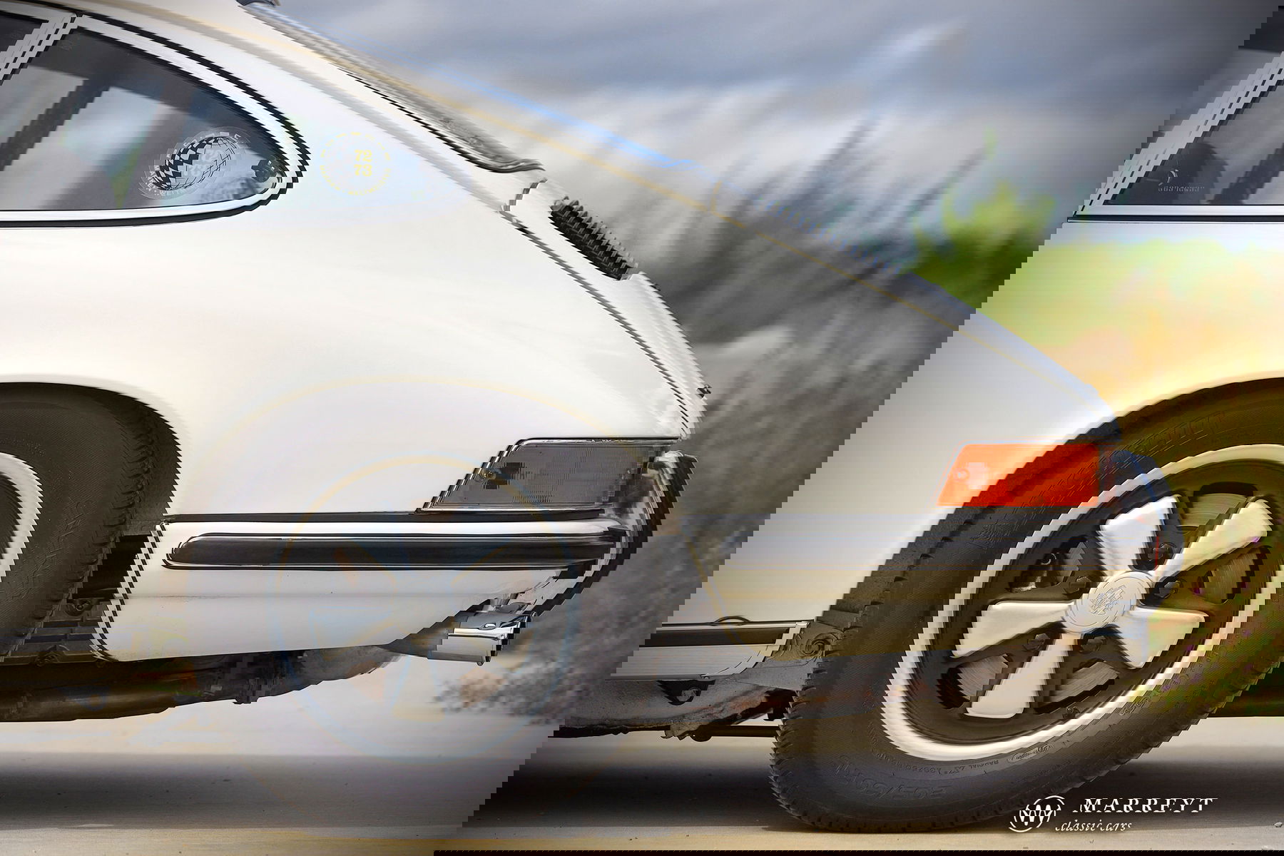 Das Besondere an diesem Wagen sind jedoch die begehrten Sonderausstattungen: ein elektrisches Schiebedach, elektrische Fensterheber, eine werksseitig eingebaute Klimaanlage und die seltene externe Öleinfüllklappe, die es nur im Modelljahr 1972 gab. Ergänzt wird das Paket durch werksseitige Nebelscheinwerfer und ein restauriertes Blaupunkt-Radio mit diskretem, modernem Aux-Eingang, das sowohl Authentizität als auch Benutzerfreundlichkeit gewährleistet. Vom 911 S wurden 1972 nur etwa 1.750 Exemplare produziert, was jedes gut erhaltene Exemplar zu einem echten Sammlerstück macht.