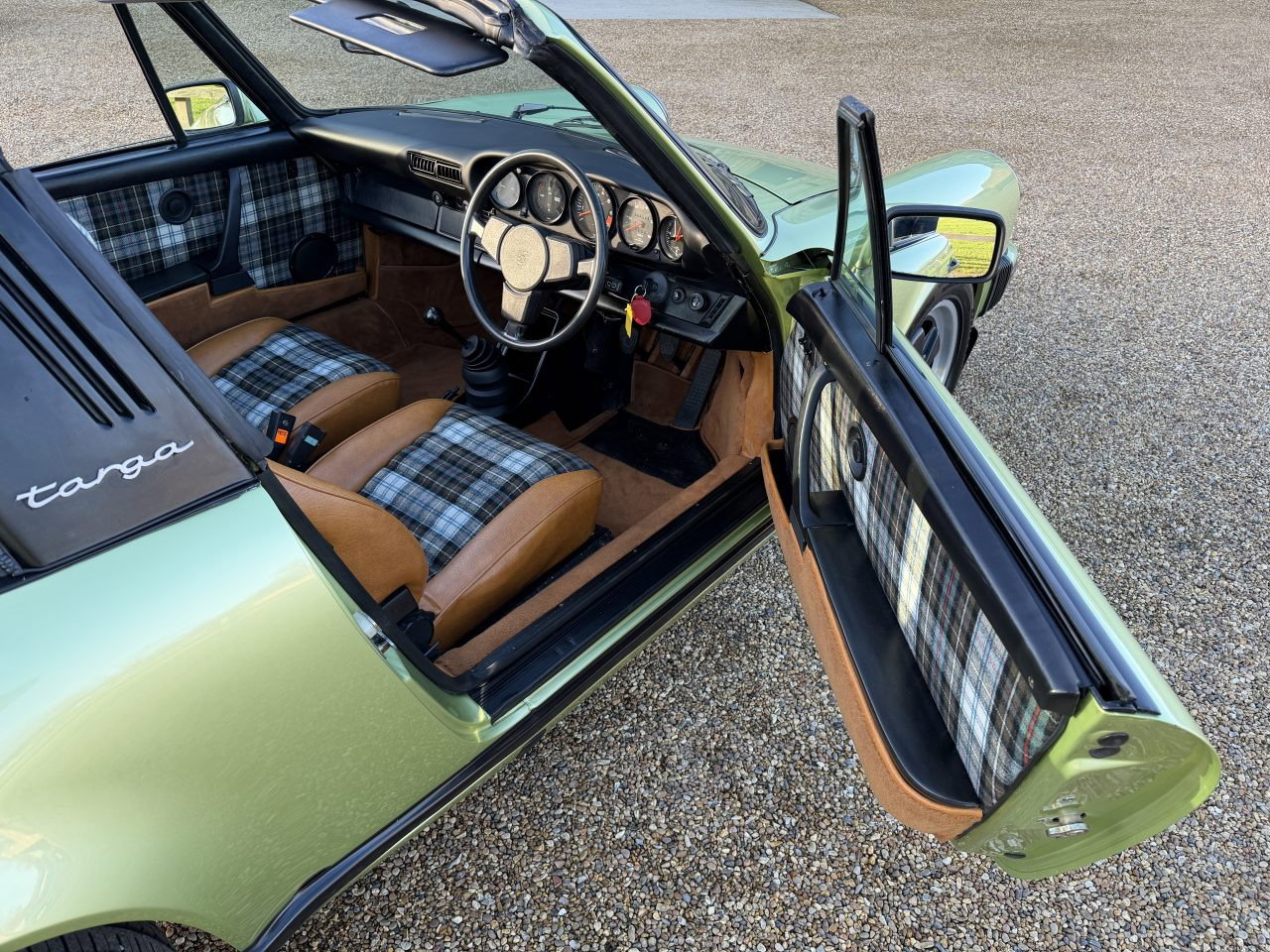 Ein wunderschön restauriertes und äußerst fahrtaugliches Exemplar des klassischen luftgekühlten 911 Targa in einer seltenen und auffälligen Farbkombination aus dieser Zeit. Dieser 1978er Porsche 911 SC Targa hat 125.000 Meilen zurückgelegt und wurde einer umfassenden Karosserierestaurierung unterzogen, für die kürzlich fast 50.000 £ investiert wurden. Zwischen 2020 und 2023 wurde das Fahrzeug von Jentree Classic Cars in East Sussex einer umfassenden Restaurierung unterzogen. Die Arbeiten umfassten eine vollständige Demontage bis auf die nackte Karosserie, wobei alle Korrosionsstellen an den üblichen Problemstellen, einschließlich der Nierenschalen, professionell behandelt wurden. Anschließend wurde das Fahrzeug in seiner ursprünglichen Farbe Hellgrün Metallic neu lackiert und sorgfältig wieder zusammengebaut. Die Qualität der Lackierung und der Passgenauigkeit der Karosserieteile ist durchweg hervorragend. Während der Restaurierung wurde die Aufhängung komplett überholt und das Bremssystem mit überholten Bremssätteln, neuen Scheiben und Belägen erneuert. Während der Motor ausgebaut war, wurde eine neue Kupplung eingebaut, zusammen mit neuen Ölleitungen, neuen Bremsschläuchen und einer umfassenden Wartung. Die Gesamtkosten für diese Arbeiten beliefen sich auf knapp 50.000 £. Das 915-Getriebe wurde 2018 überholt und funktioniert weiterhin einwandfrei.