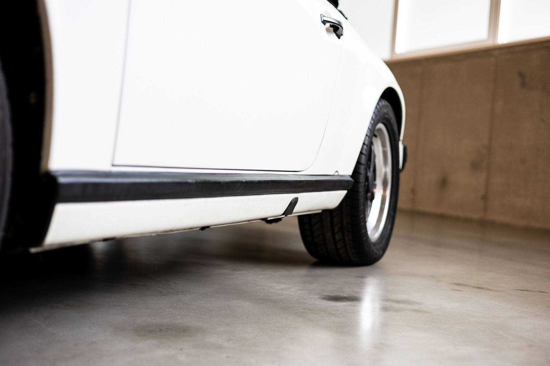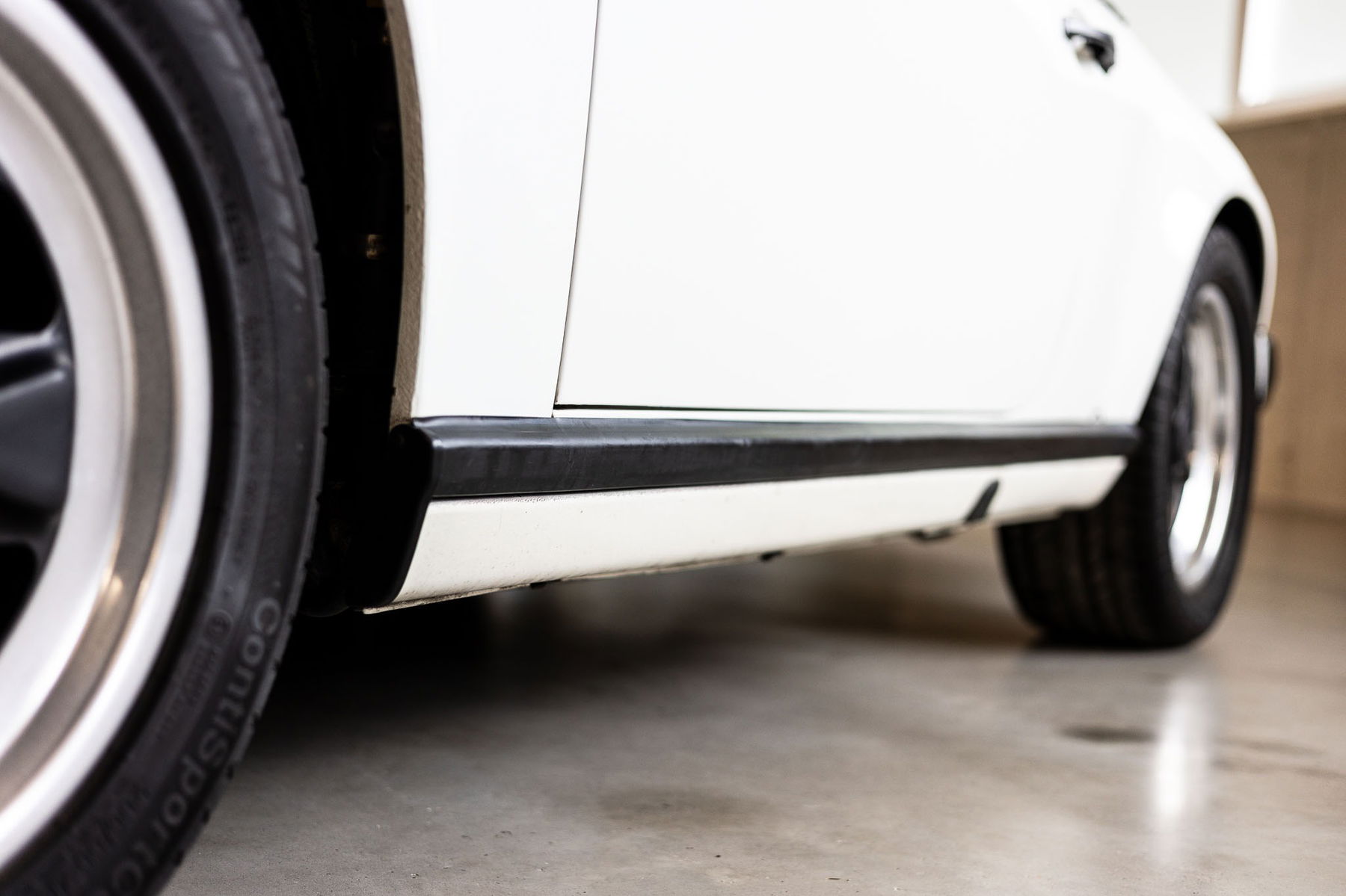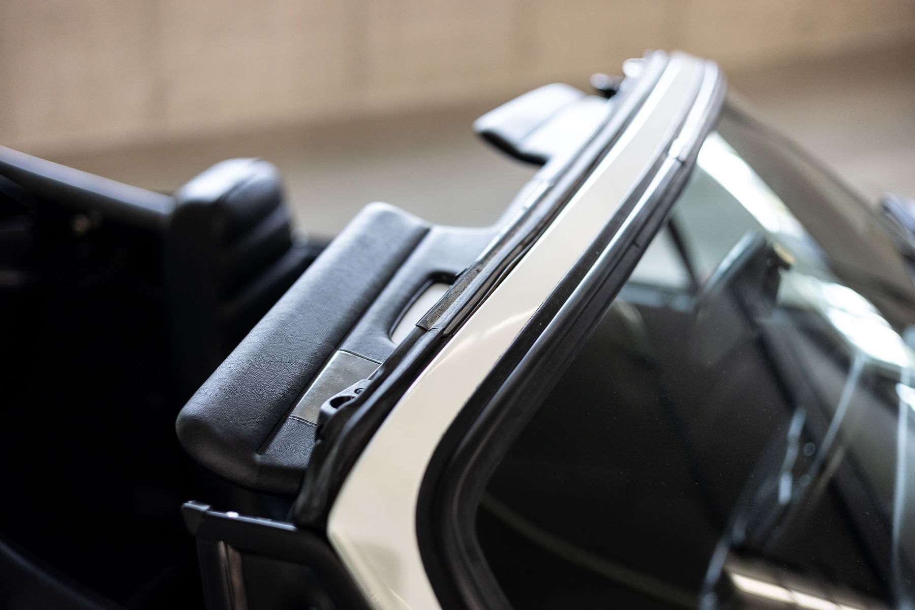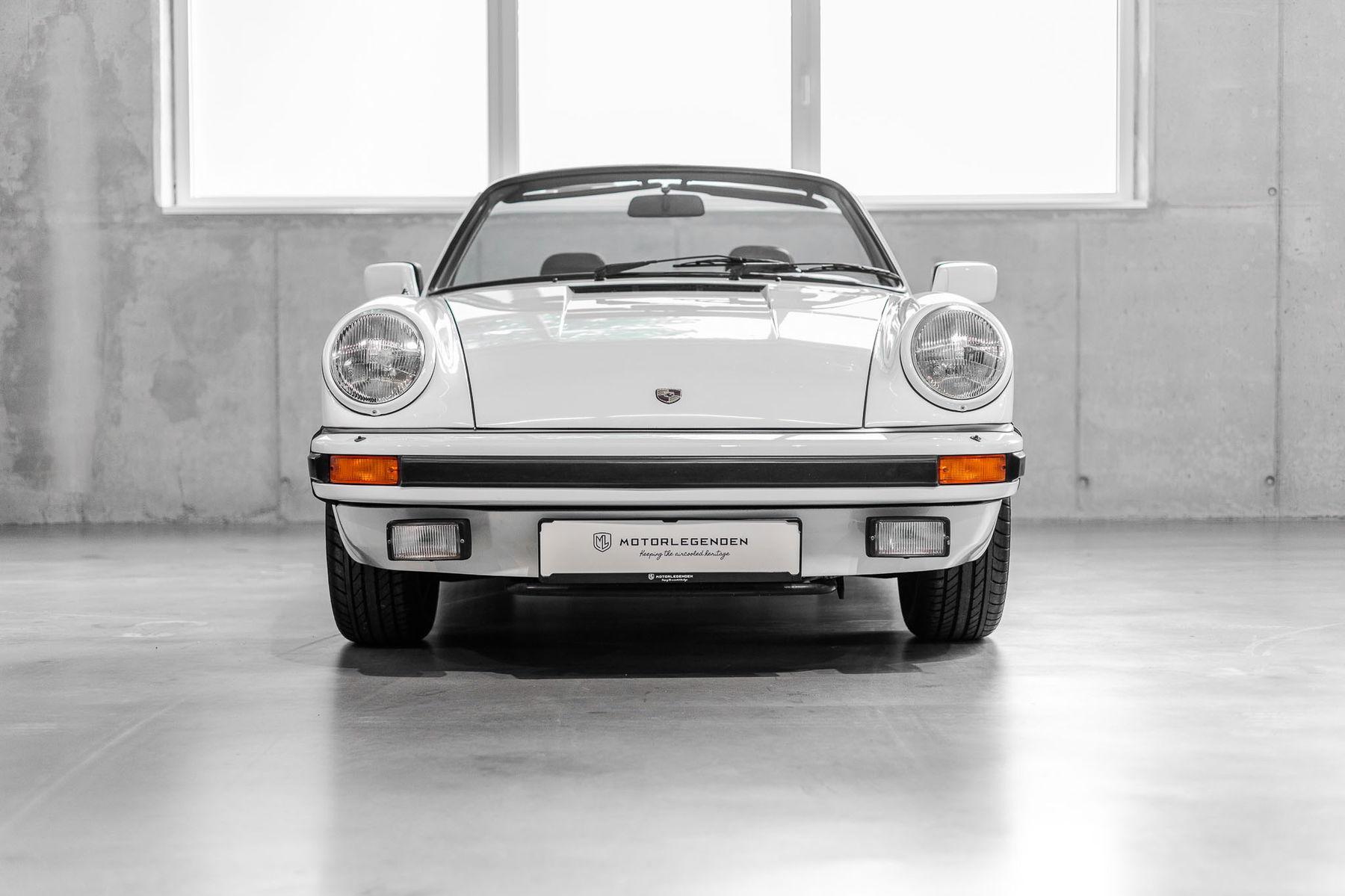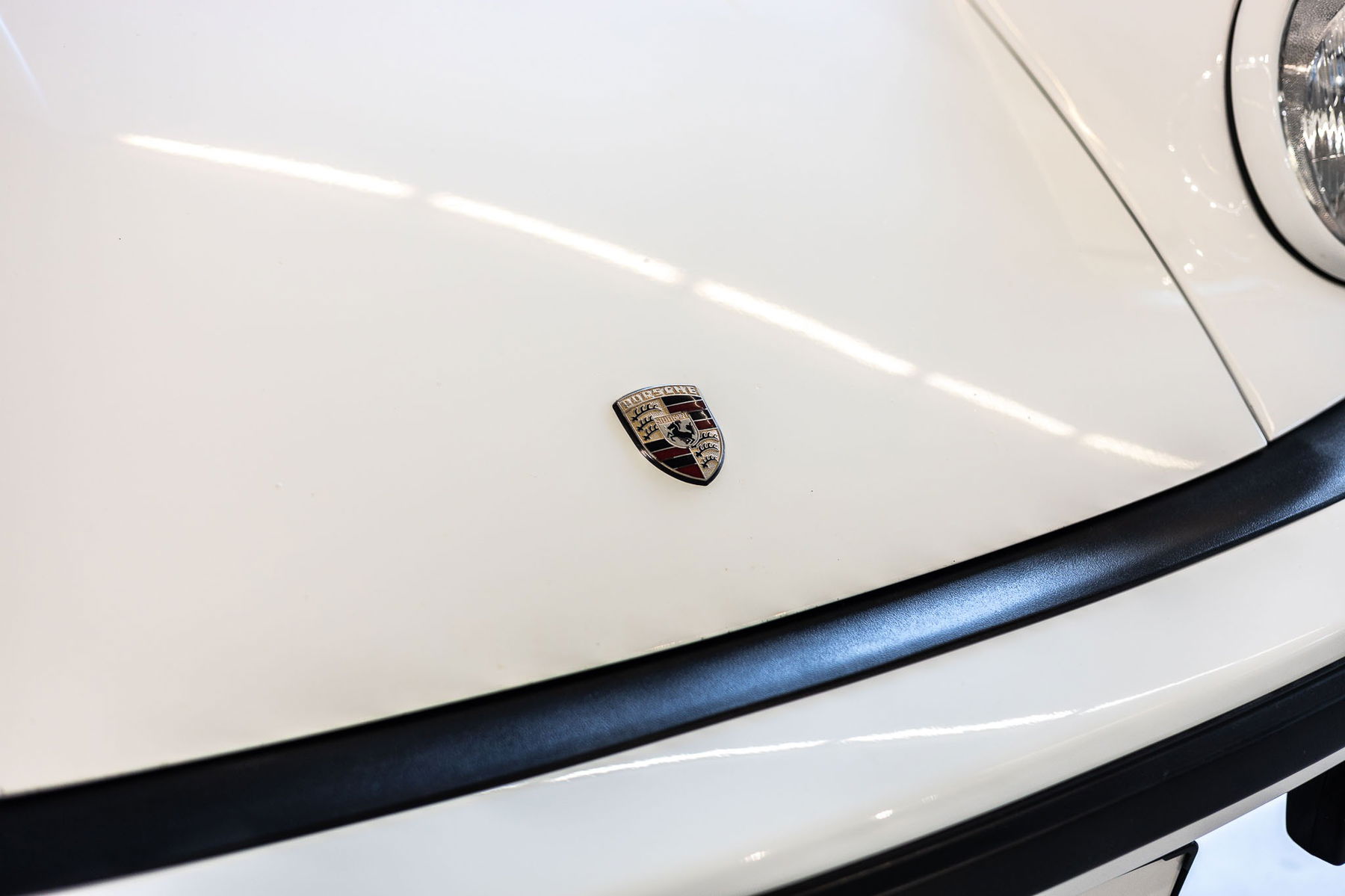 Die klassische Farbkombination in Grandprixweiß mit schwarzer Lederausstattung und dem schwarzen Verdeck, sowie den geschmiedeten Leichtmetallräder mit schwarzem Stern, ist auch von der Farbgebung wohl mit die schönste Art einen Porsche offen zu Fahren. Eine damals seltene Klimaanlage wurde auf Wunsch des Eigentümers zusätzlich ab Werk geordert.