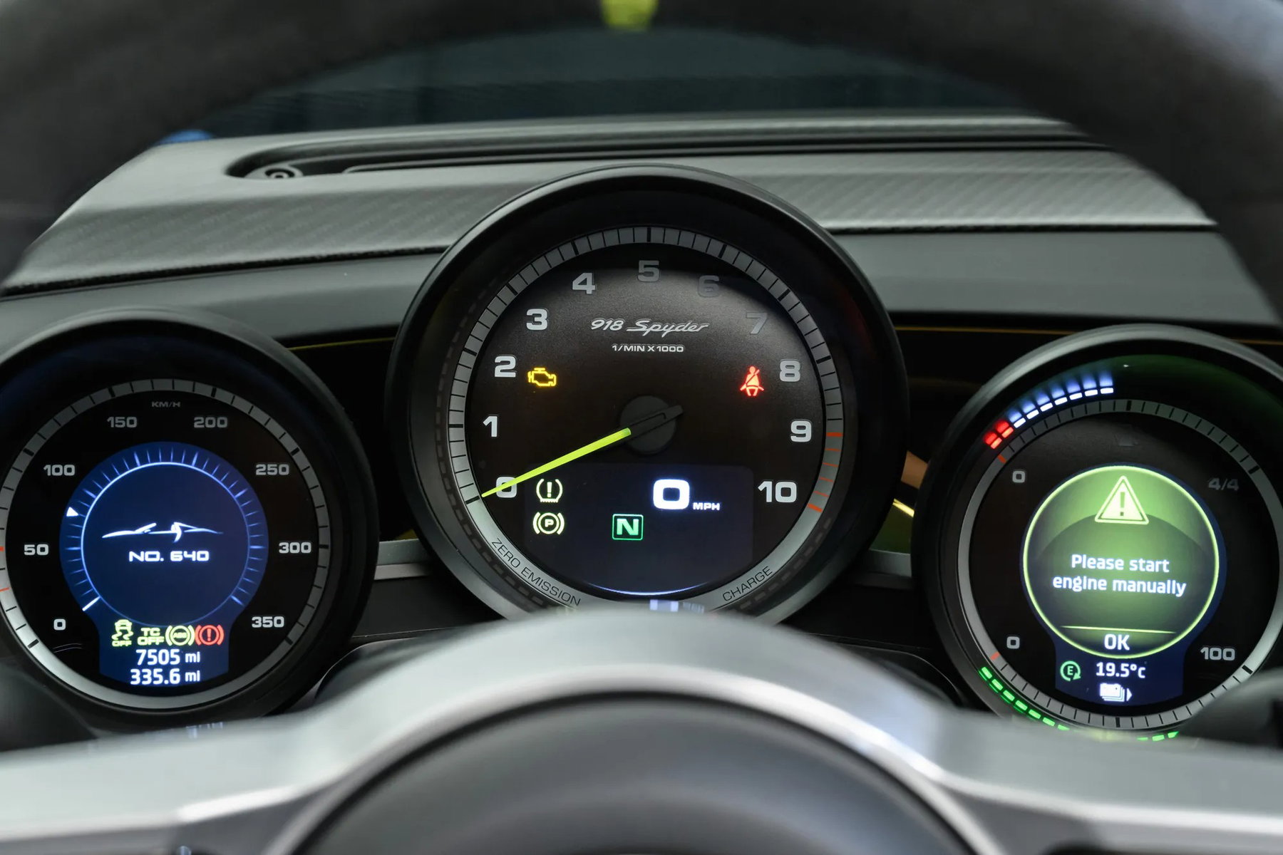 Der 6,8-kWh-Lithium-Ionen-Akku des 918 Spyder ermöglicht eine rein elektrische Reichweite von 12 Meilen und nutzt die „aktive Regeneration“, um beim Bremsen Energie zurückzugewinnen. Der umfangreiche Einsatz von exotischen Metallen und Kohlefaser für die Karosserie und das Chassis führte zu einem Gesamtgewicht von 1674 kg – was für einen Hybrid mit zwei Motoren eine technische Meisterleistung darstellte. Zusätzlich zum Allradantrieb verfügte der 918 über eine Allradlenkung, die Kurvenverhalten, Handling und Stabilität verbesserte.
