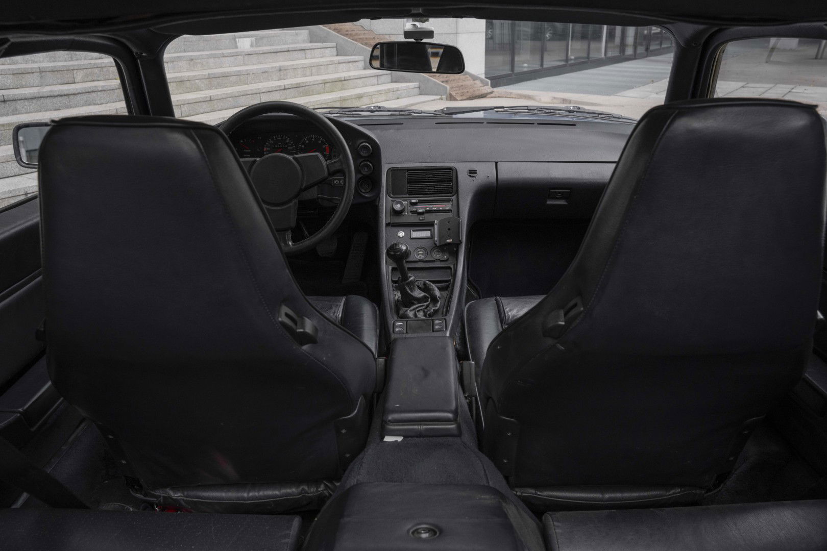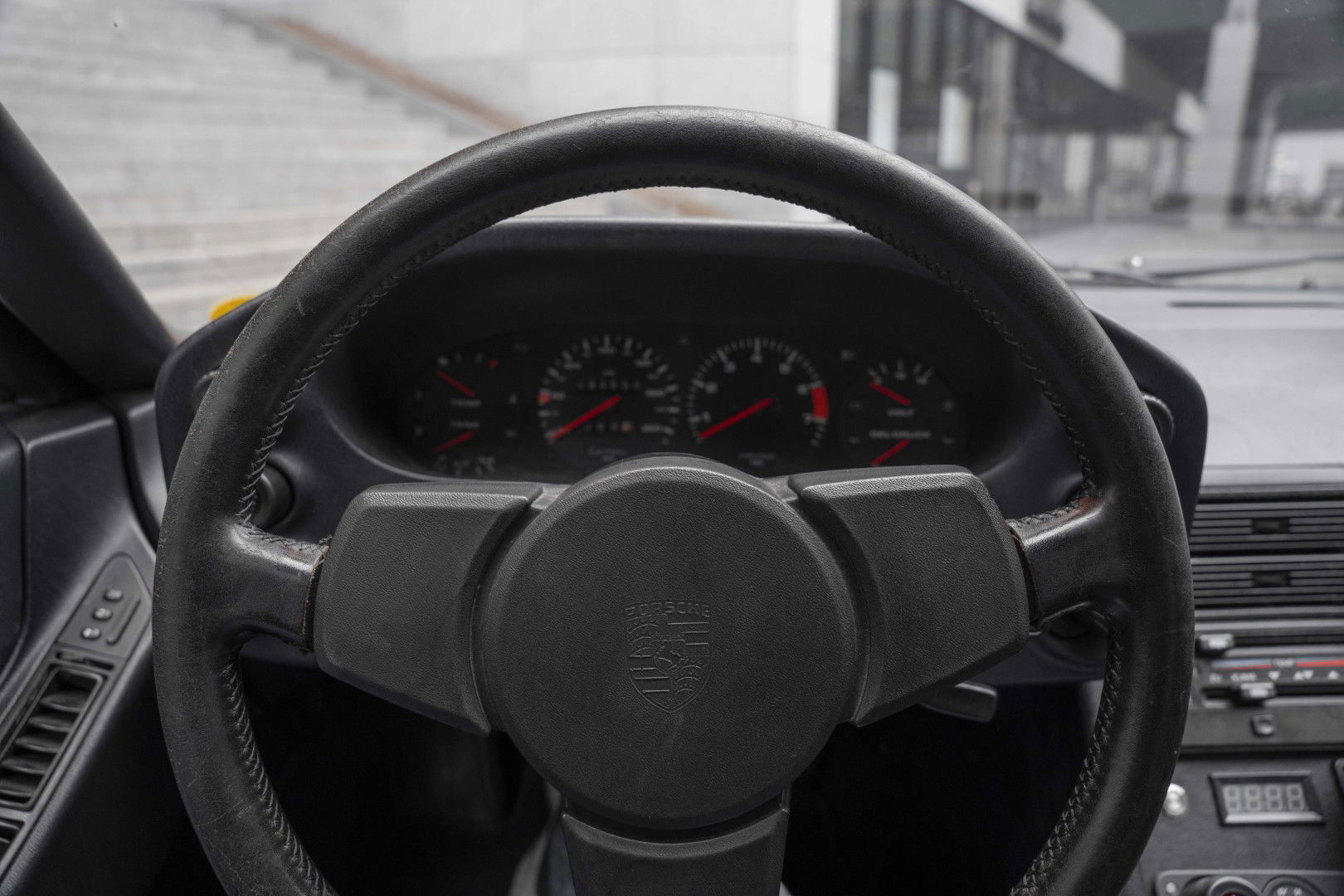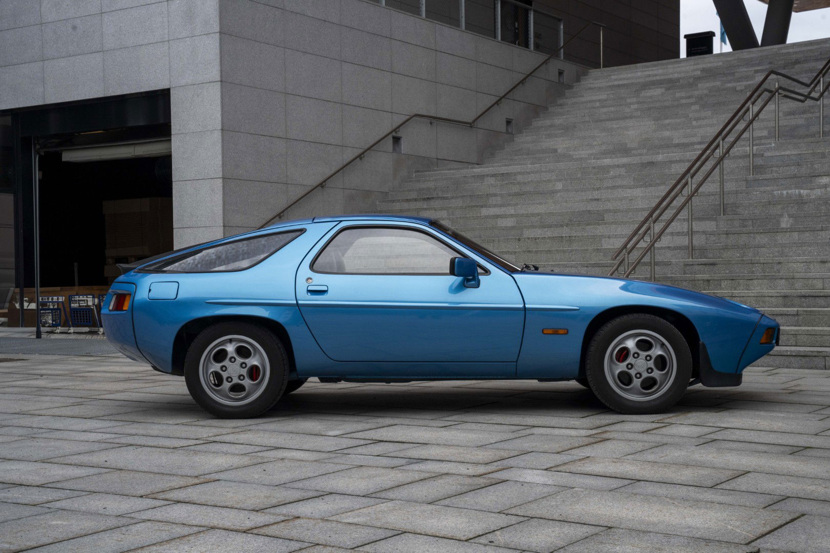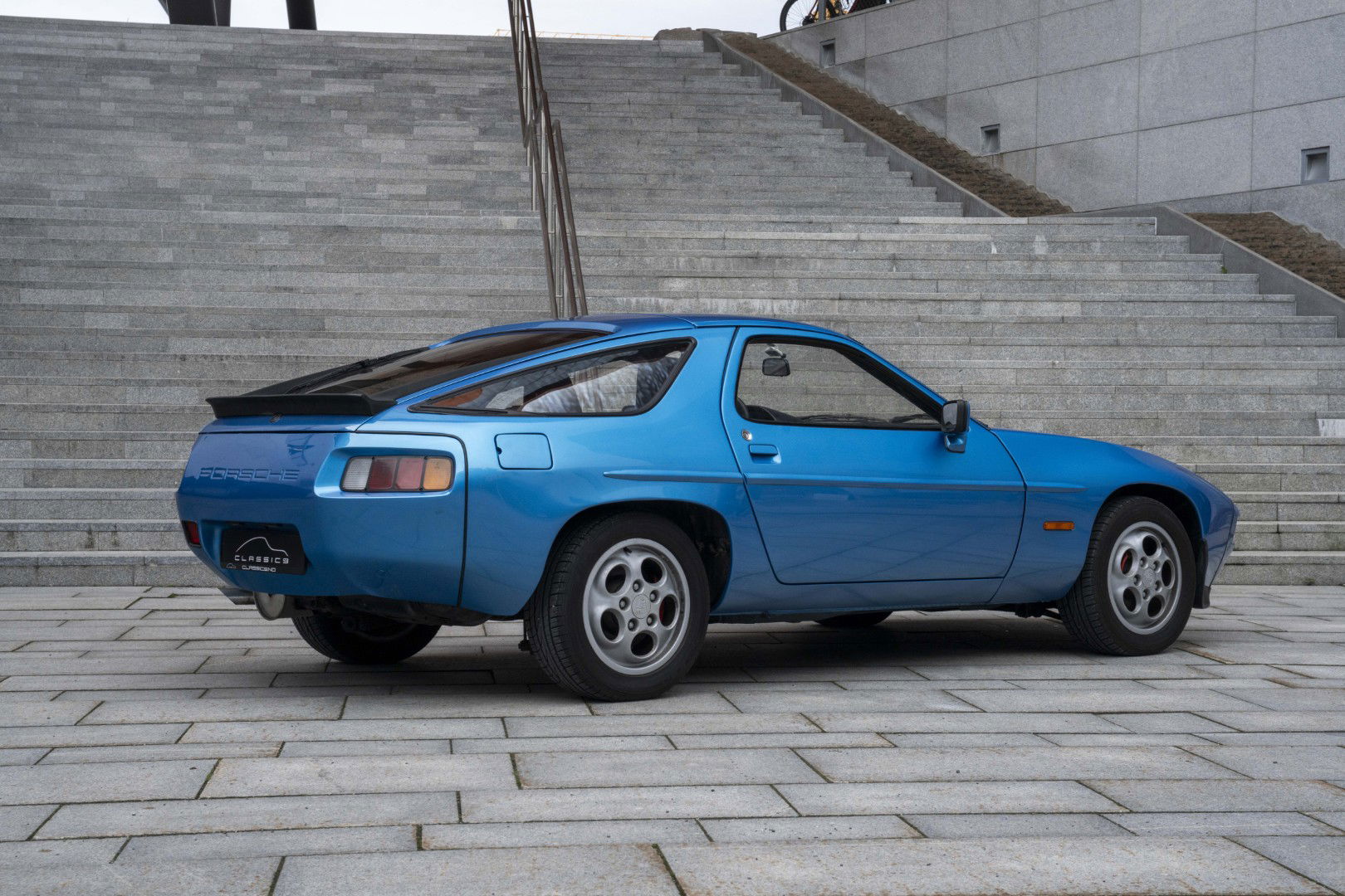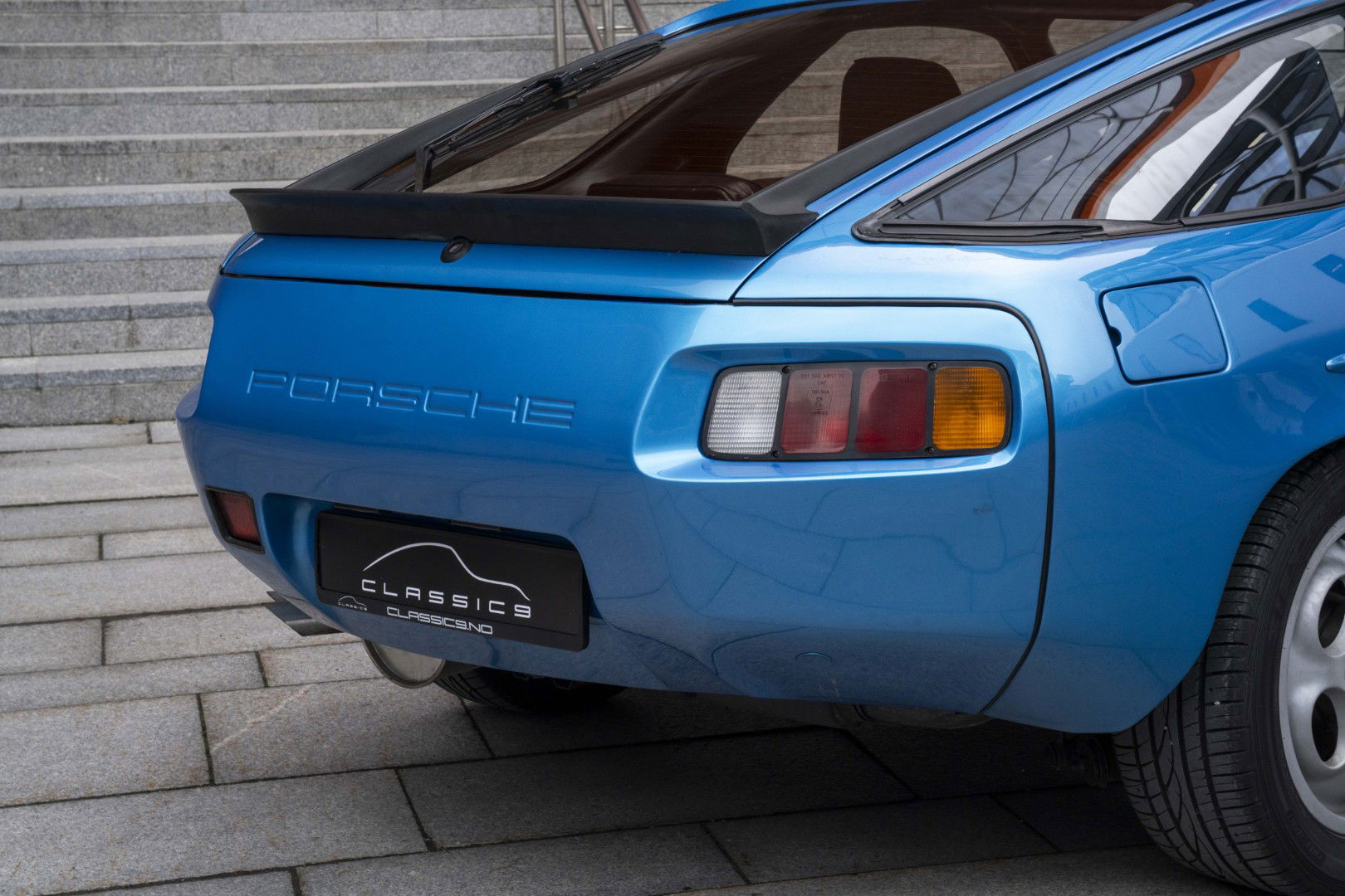 S-Spoilerpaket aus dem neueren 928. Beide hinteren Spoiler-Ecken sind im Lieferumfang enthalten. An den hinteren Fenstern fehlen einige Zierleisten.