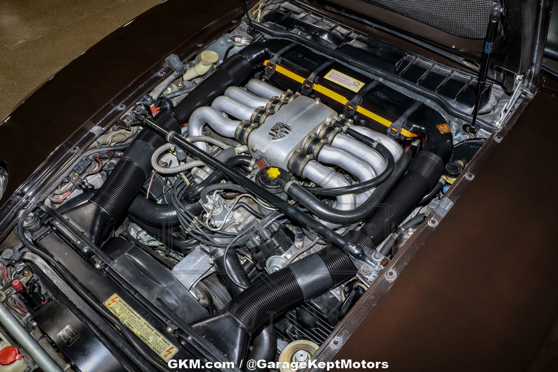 Im Innenraum erwartet Sie ein wunderschön erhaltenes braunes Interieur, das Luxus und Komfort ausstrahlt. Der Innenraum ist ein Zeugnis für Porsches Engagement für hochwertige Handwerkskunst, mit hochwertigen Materialien und einem fahrerorientierten Layout. Die Sitze, das Armaturenbrett und die Verkleidung sind alle in einem hervorragenden Zustand und bieten eine einladende Umgebung für Fahrer und Passagiere.