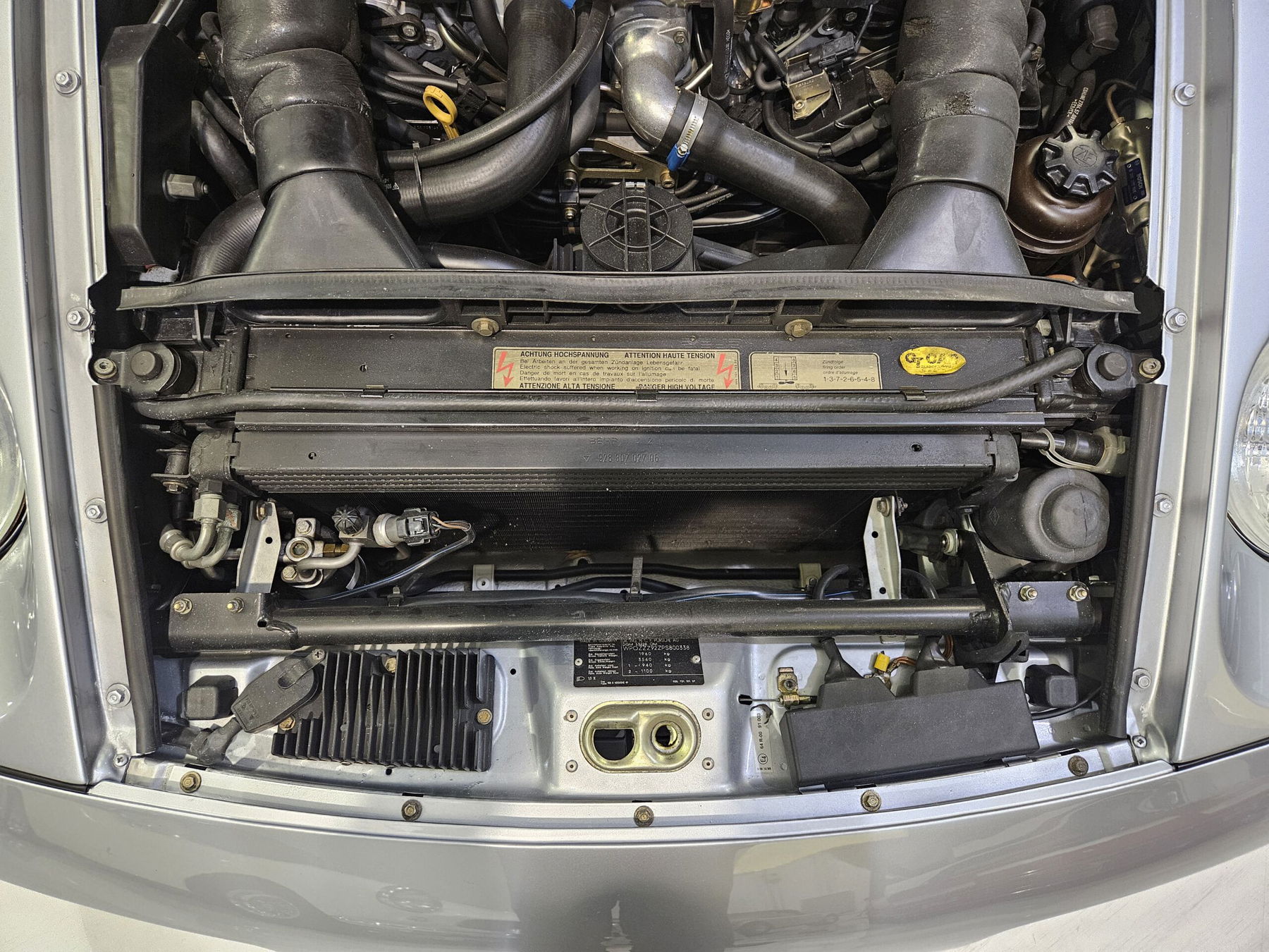 Motor 5,4 l M28/49–V8. Dieser 1993er Porsche 928 GTS wurde ursprünglich für den europäischen Markt gebaut und zunächst nach Italien geliefert, bevor er von Hedon Motors erworben wurde. Er ist in Polar Silver Metallic (L92E) lackiert und verfügt über eine schwarze Lederausstattung mit weichen Ledersitzen (Option 980). Er ist mit dem 5,4-Liter-V8-Motor von Porsche ausgestattet, der mit einem Fünfgang-Schaltgetriebe und einem Sperrdifferenzial kombiniert ist.