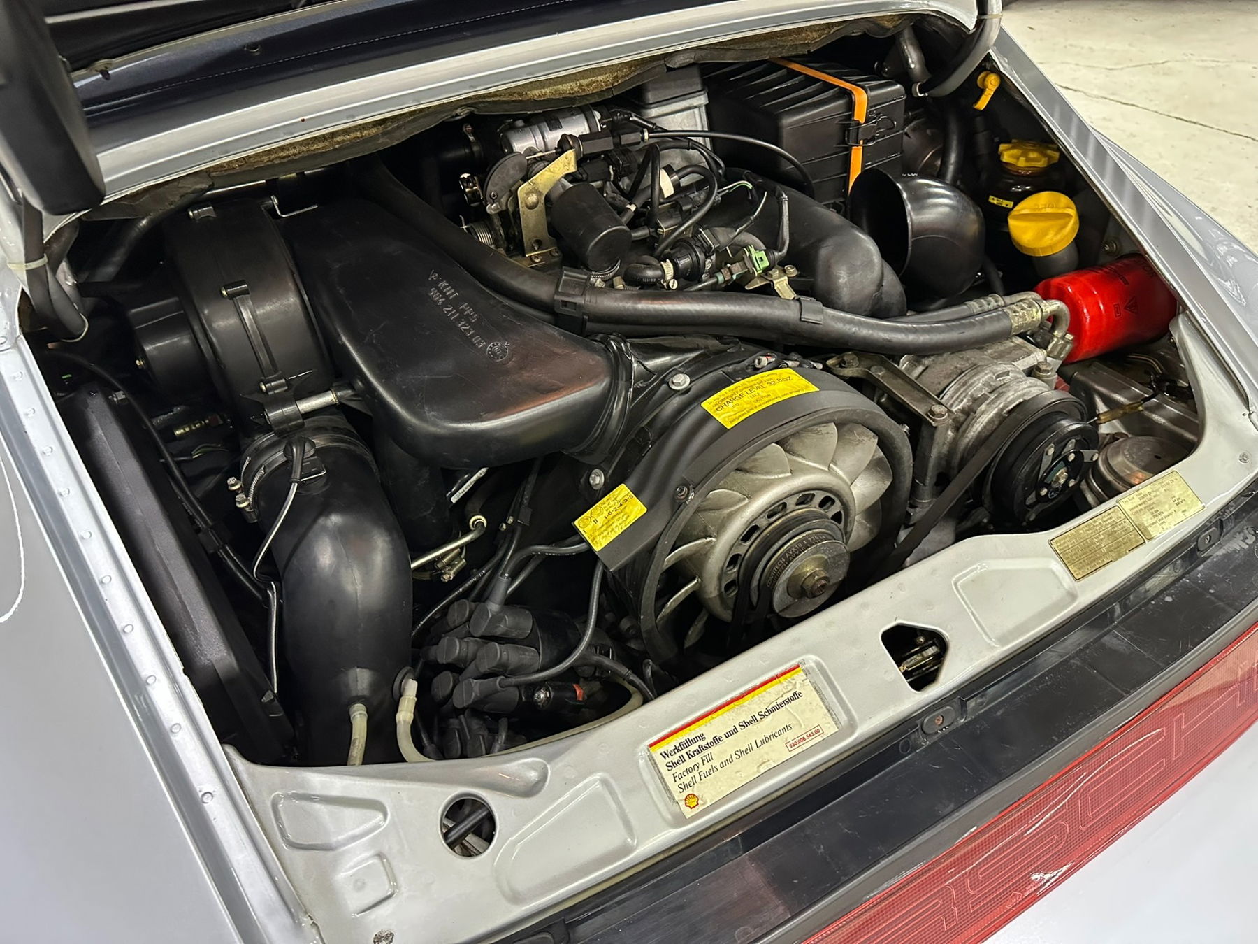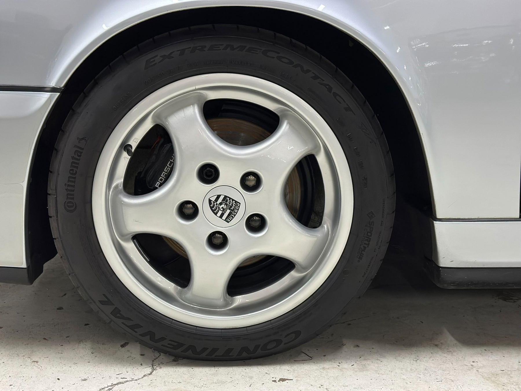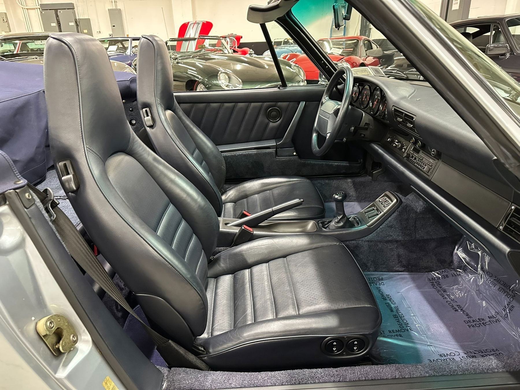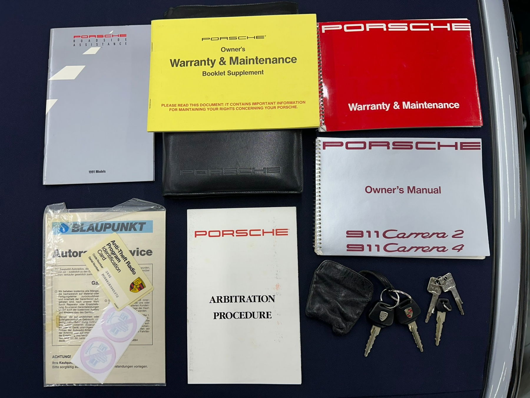 Polar Silver über marineblauem Leder, blauer Teppichboden, blaues Faltverdeck, passender blauer Verdeckkoffer, 3,6-Liter-Luftgekühlter 6-Zylinder-Boxermotor, 5-Gang-Schaltgetriebe, Allradantrieb, 41.000 Meilen seit Neuzustand. Der Porsche 911 bedarf keiner Vorstellung, seine Entwicklung seit dem allerersten 911 im Jahr 1965 ist geprägt davon, dass jede neue Generation noch besser ist als die vorherige. Die 964-Modellreihe wurde 1989 eingeführt und lief bis 1994. Sie war als Coupé, Cabrio und Targa, mit schmaler und breiter Karosserie, erstmals mit Zwei- und Allradantrieb, Schaltgetriebe oder Automatikgetriebe und in der höchsten Evolutionsstufe mit Turbolader erhältlich.