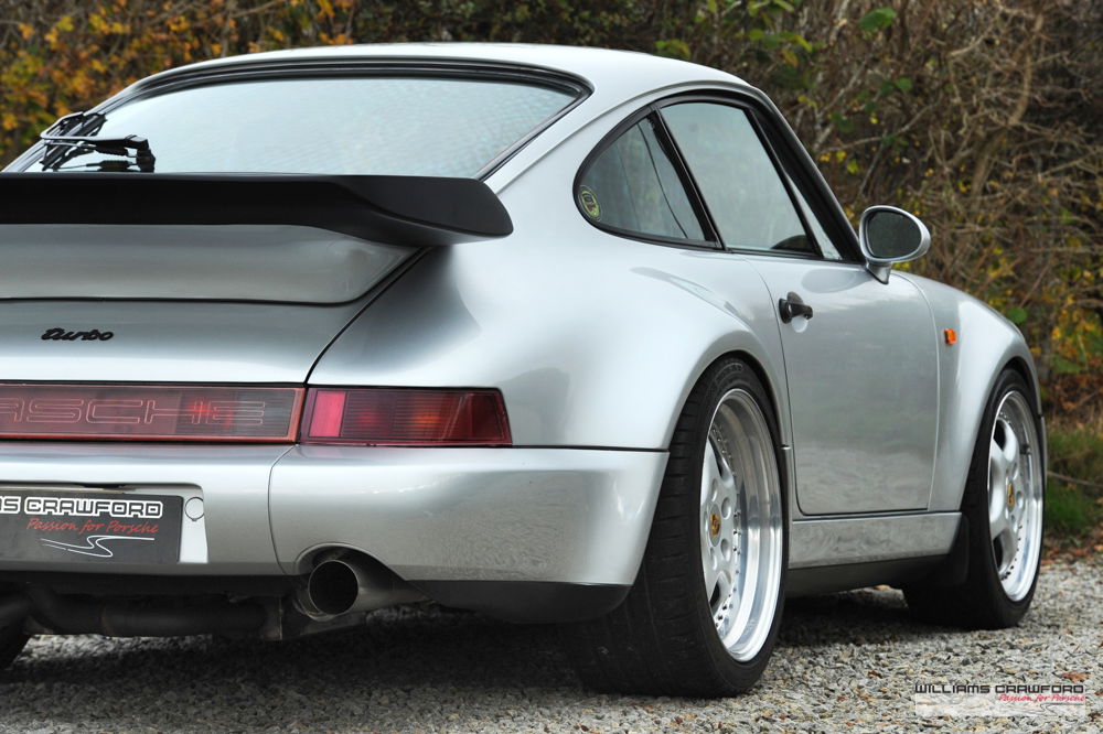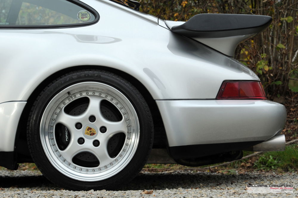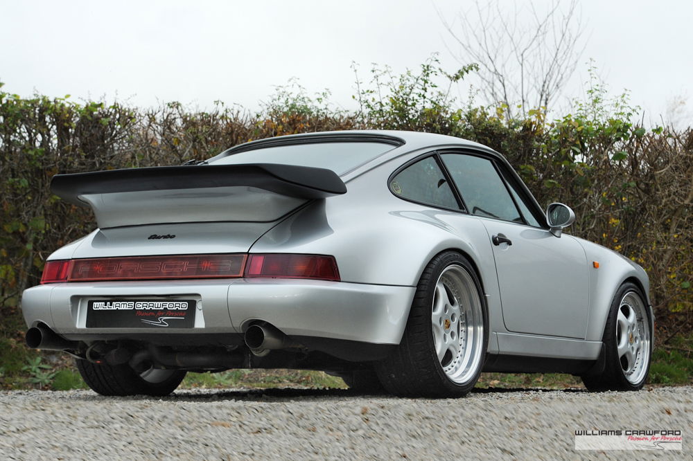 Pin-up good looks with the super-wide rear end and big spoiler. The 3.3 litre air cooled 6 cylinder delivers its 320 bhp and 450 Nm of torque over a wide range via the KKK turbo charger. A true legend of the Porsche line-up.