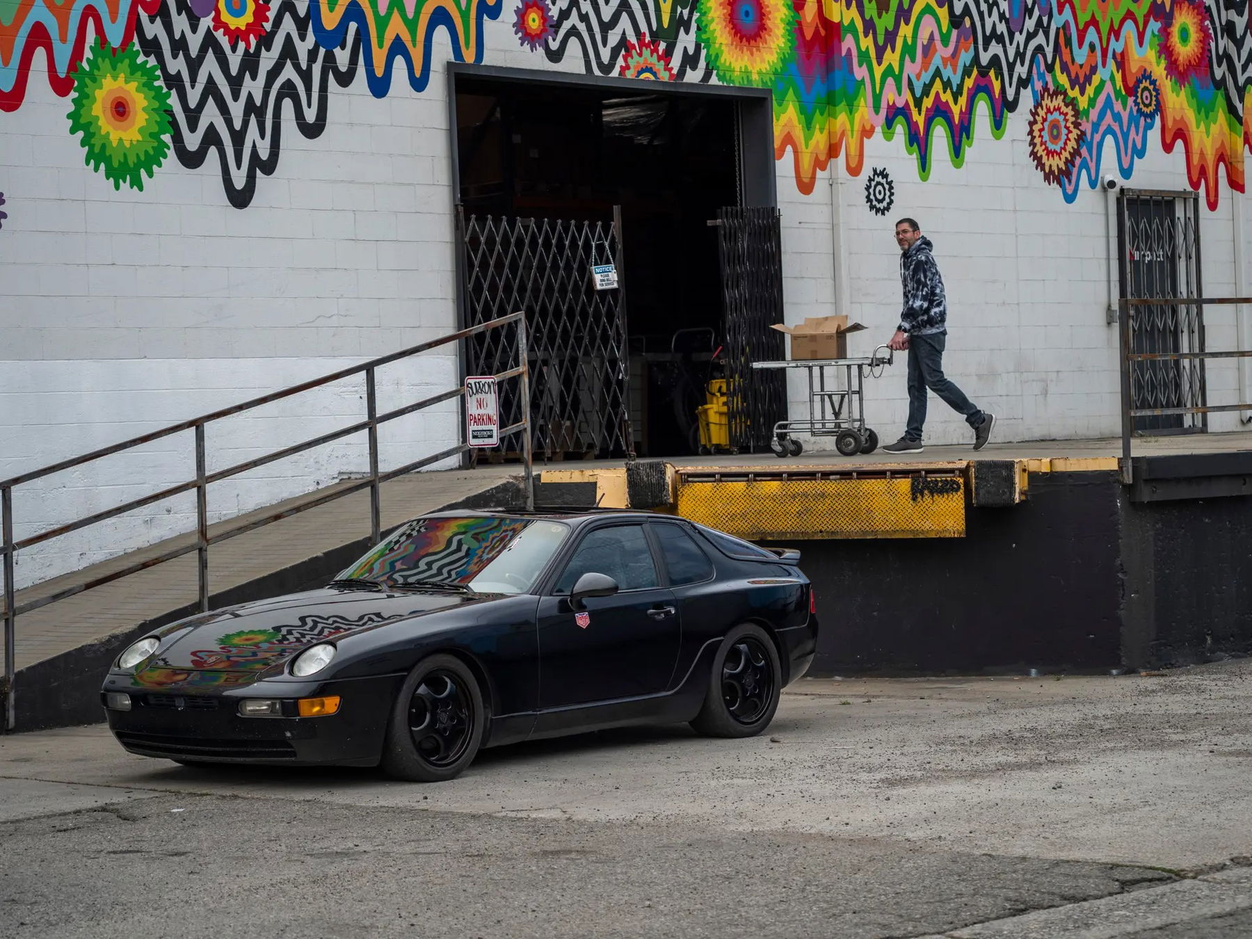 Mein schwarzer 968 aus dem Jahr 1992 ist ein Auto, das ich in New Jersey gekauft habe und das mein New-York-Auto war. Ich hatte dieses Auto tatsächlich in New York City – ich habe dort viel Zeit verbracht, als ich es 2019 gekauft habe. Ich würde es als ein Auto mit DE-Track-Canyon-Setup bezeichnen. Ich habe Bob von Stable Energies in New Jersey gebeten, es mit einem Satz KW-Gewindefahrwerke auszustatten. Es hat ein tiefes Momo Mod 7-Lenkrad und ist ein ziemlich gut ausgestattetes, ausgewogenes DE-Style-Straßenauto, das wendig ist, sich extrem gut lenken lässt und viel Spaß beim Fahren macht. Das ist also mein 968 von 1992.