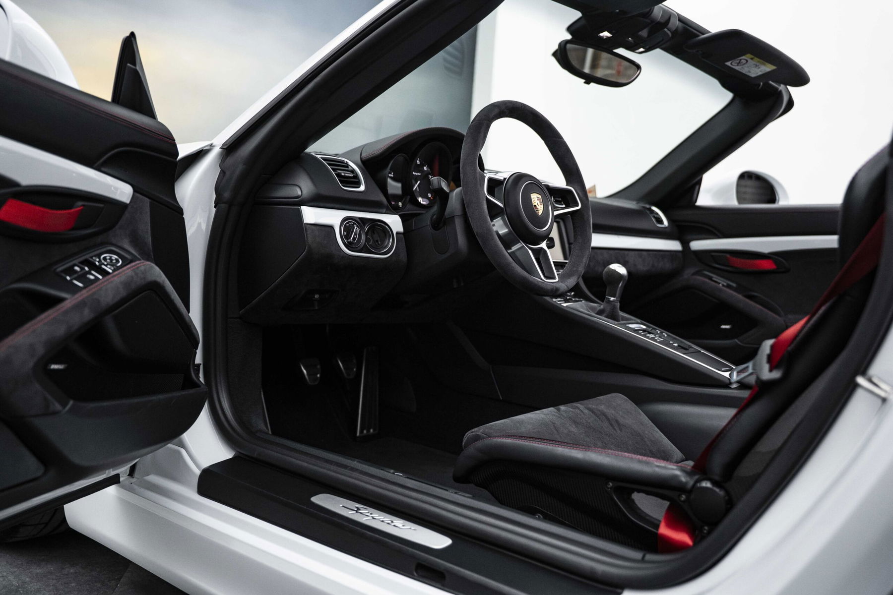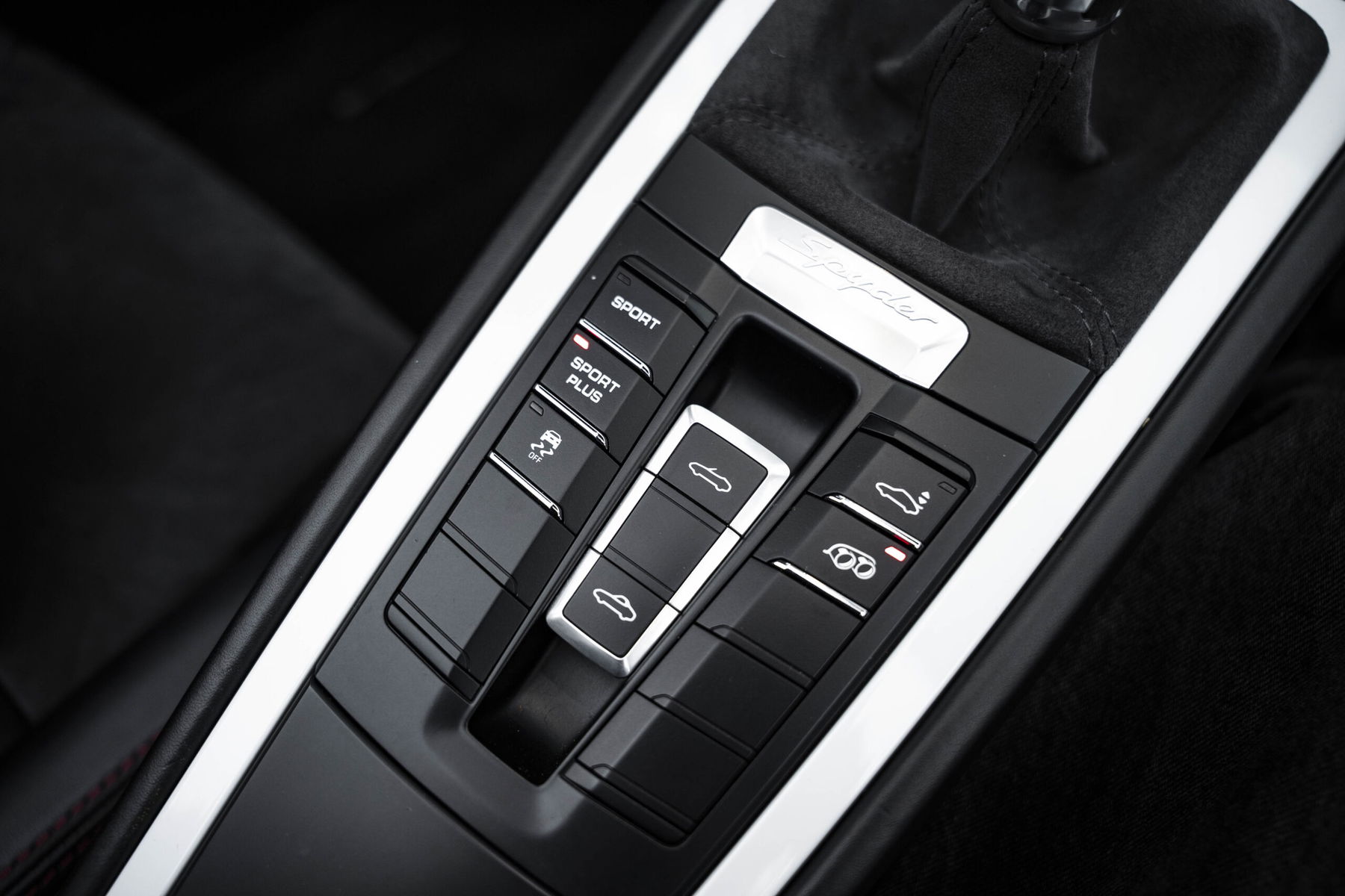 Sehr gepflegter Porsche 981 Boxster 3.8 Spyder Handschalter 375PS Gletscherweiss Pearleffekt metallic mit Schwarz leder/alcantara interior. Scheckheft gepflegt von Porsche Zentrum.