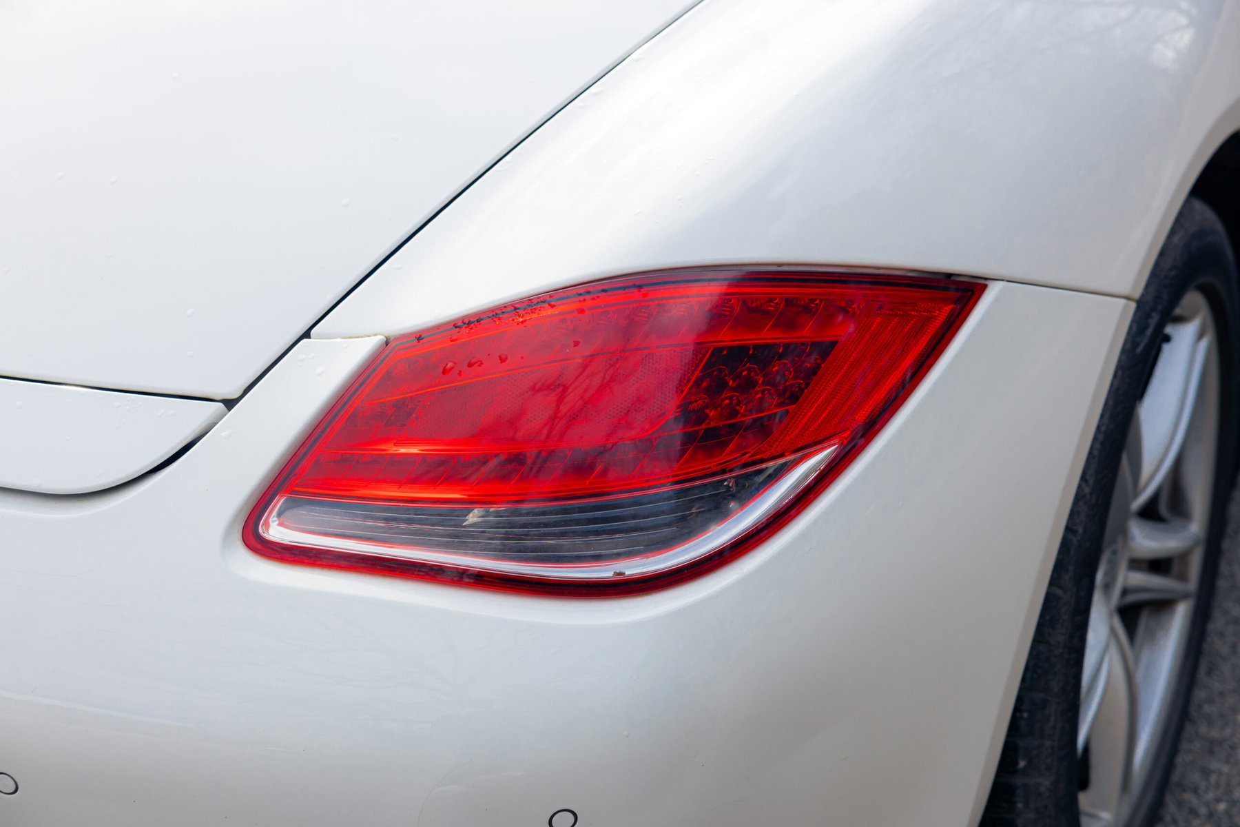 Die Karosserie ist insgesamt in gutem Zustand. Der Lack in Carraraweiß ist zu 100 % original. Wir stellen nur geringfügige Mängel an der hinteren Stoßstange fest. Die Räder sind insgesamt gut erhalten. Wir stellen eine kleine Schramme am vorderen linken Rad fest.