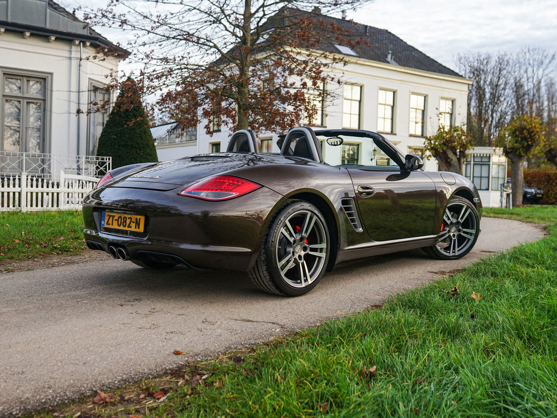 Nicht jeder Porsche-Enthusiast ist ein Fan des Boxster-Konzepts. Unserer Meinung nach völlig zu Unrecht, denn dank seines leistungsorientierten Mittelmotor-Konzepts und seines geringen Gewichts (1.355 kg) fährt und performt der Boxster außergewöhnlich gut. Mit dem 7-Gang-PDK-Getriebe, einem leichteren und effizienteren 3,4-Liter-Motor mit 310 PS (+30 PS l 40 Nm), Direkteinspritzung, stabilerem Handling und modernem Infotainment nähert sich diese 987.2-Generation der Perfektion. Im Gegensatz zum 981 ist diese Version noch roh und pur, ein echtes Fahrerauto für Puristen. Die fließenden, zeitlosen Linien werden in diesem Fall durch die seltene Lackierung in Macadamia-Braun, das schwarze Verdeck, eine schwarze Volllederausstattung, 19-Zoll-Turbo-Räder mit roten Bremssätteln und belüfteten Scheiben noch verstärkt. Der gesamte Innenraum ist außergewöhnlich gut gepflegt und spiegelt den makellosen Zustand, die Original-Lackierung und die umfassende, aktuelle Händlerhistorie wider.