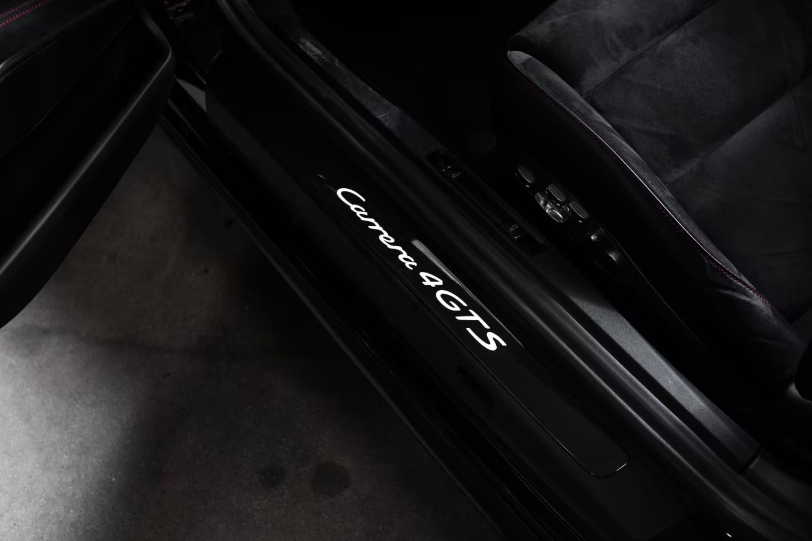 It’s hard to find a more complete version of a 911 than a GTS. The model sits halfway between the Carrera S and the turbo, with a balance of raw performance and everyday usability that few other sports cars can match. This elegant black example from 2019 delivers 450 horsepower to all four wheels with Porsche’s PDK gearbox. Pair it with red brake calipers and ventilated brake discs and you have a car that is as stylish as it is potent. Discreet, but uncompromising. Just like a GTS should be. The inside is an equally elegant experience. GTS Interior Package with full Alcantara on the steering wheel, doors and seats is paired with red stitching and creates the same contrast of black and red as on the outside. This together with the Chrono Package creates a car that runs smoothly on the highway or whizzes on the track. The car still has its VAT and the odometer shows 47000 km. The car is a well-cared-for example of one of the most sought-after versions of the 991.2. A 911 that offers everything. Discreet but stylish.