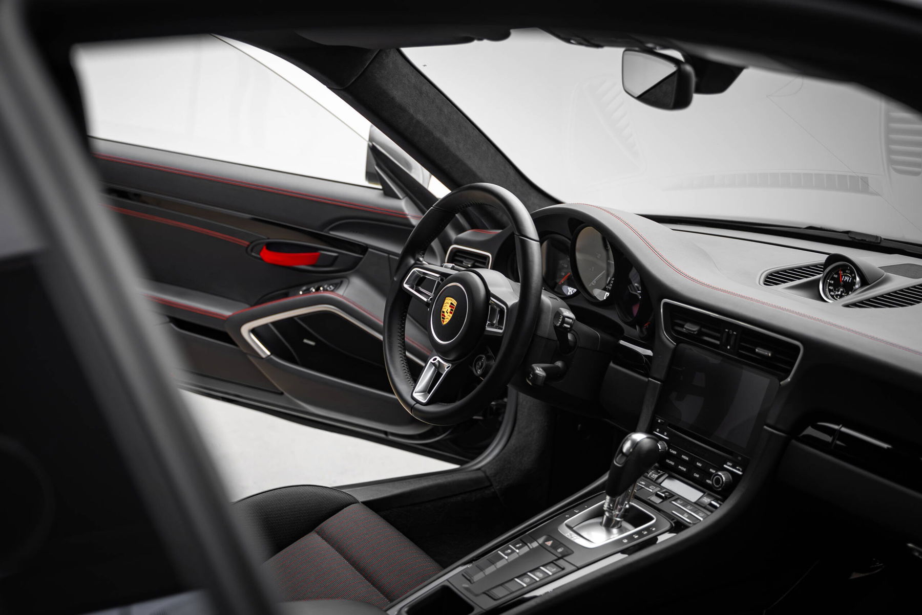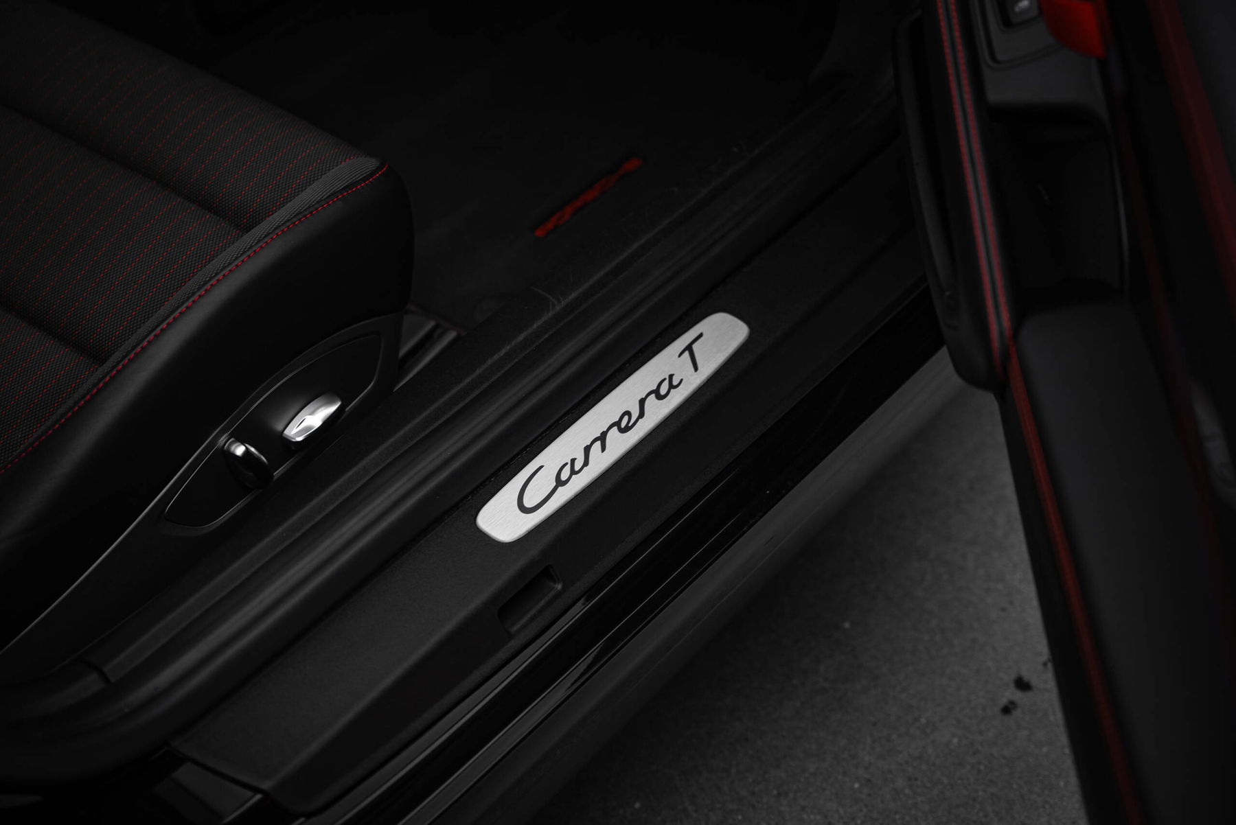 * Wunderschön ausgestatteter 911 Carrera T mit eleganter und sportlicher Optik dank schwarzem Metallic-Lack und schwarzem Carrera T-Interieurpaket, das Leder mit karminroten Nadelstreifen an den Sitzen und Nähten kombiniert.