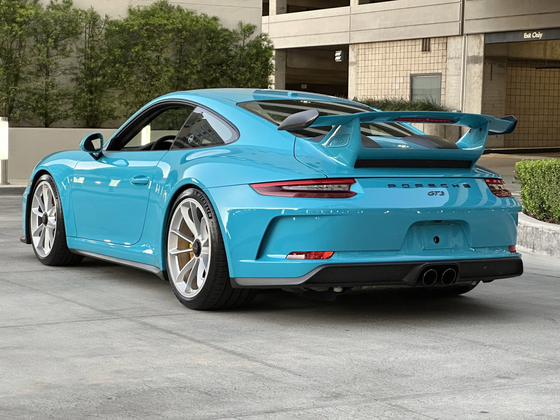 Dieser 2018er GT3 in Miami Blue mit schwarzem Leder- und Alcantara-Interieur und platin-grauen Ziernähten ist ein 991.2 mit der richtigen Ausstattung und den Optionen, auf die es wirklich ankommt.