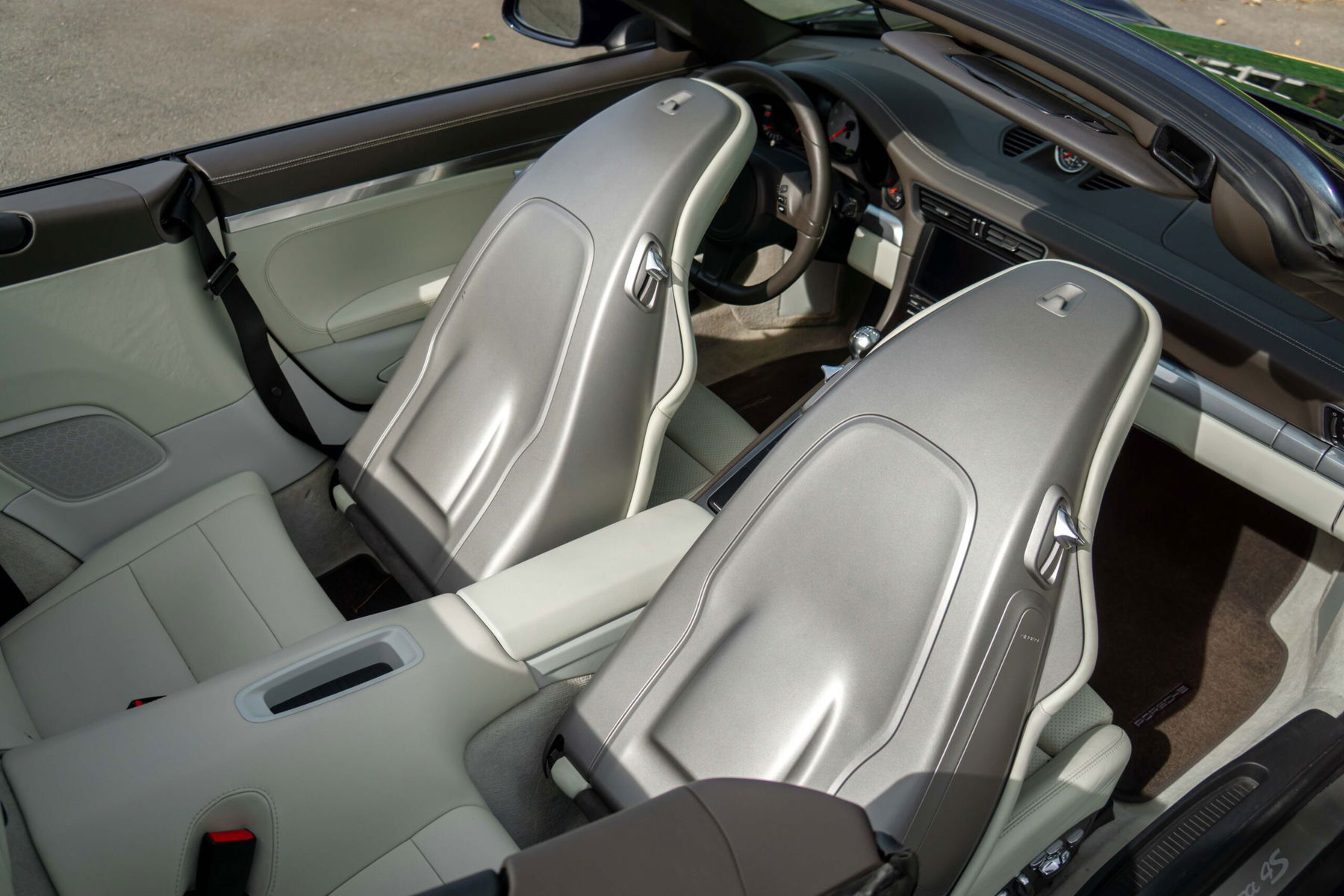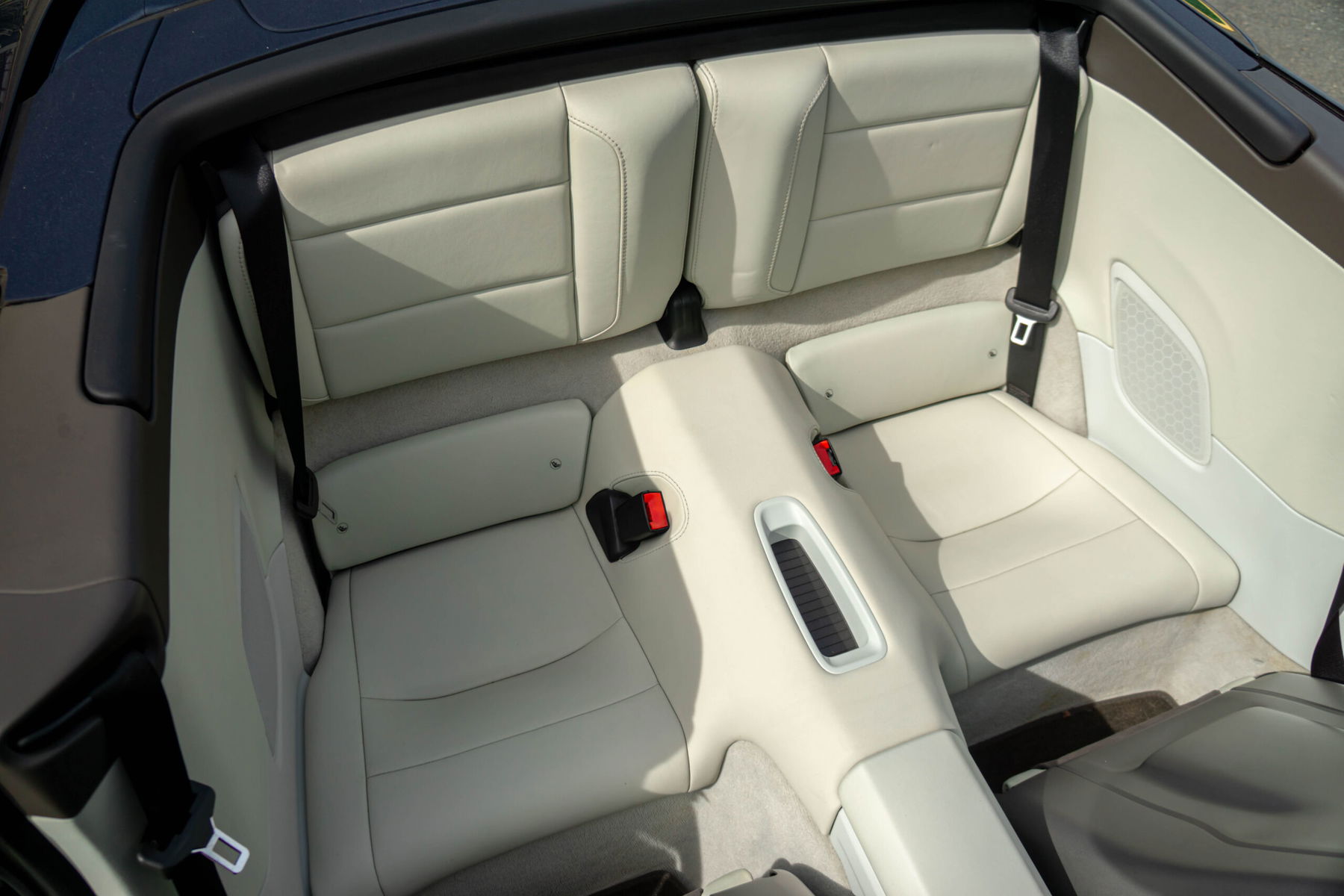 Dieses Exemplar befindet sich in einem sehr guten Zustand. Die Sitze und Kunststoffverkleidungen weisen keine Gebrauchsspuren auf. Das Leder am Lenkrad, Schalthebel und Handbremse ist in gutem Zustand. Das Leder und die Nähte am Armaturenbrett sind intakt. Auf der rechten Seite des Getriebetunnels befindet sich ein leichter Kratzer, ebenso wie eine Markierung an der Türschwelle (Kunststoff) auf der Fahrerseite.Die Teppiche sind sauber und die Fußmatten sind in ausgezeichnetem Zustand. Insgesamt präsentiert sich der Innenraum sehr gut.