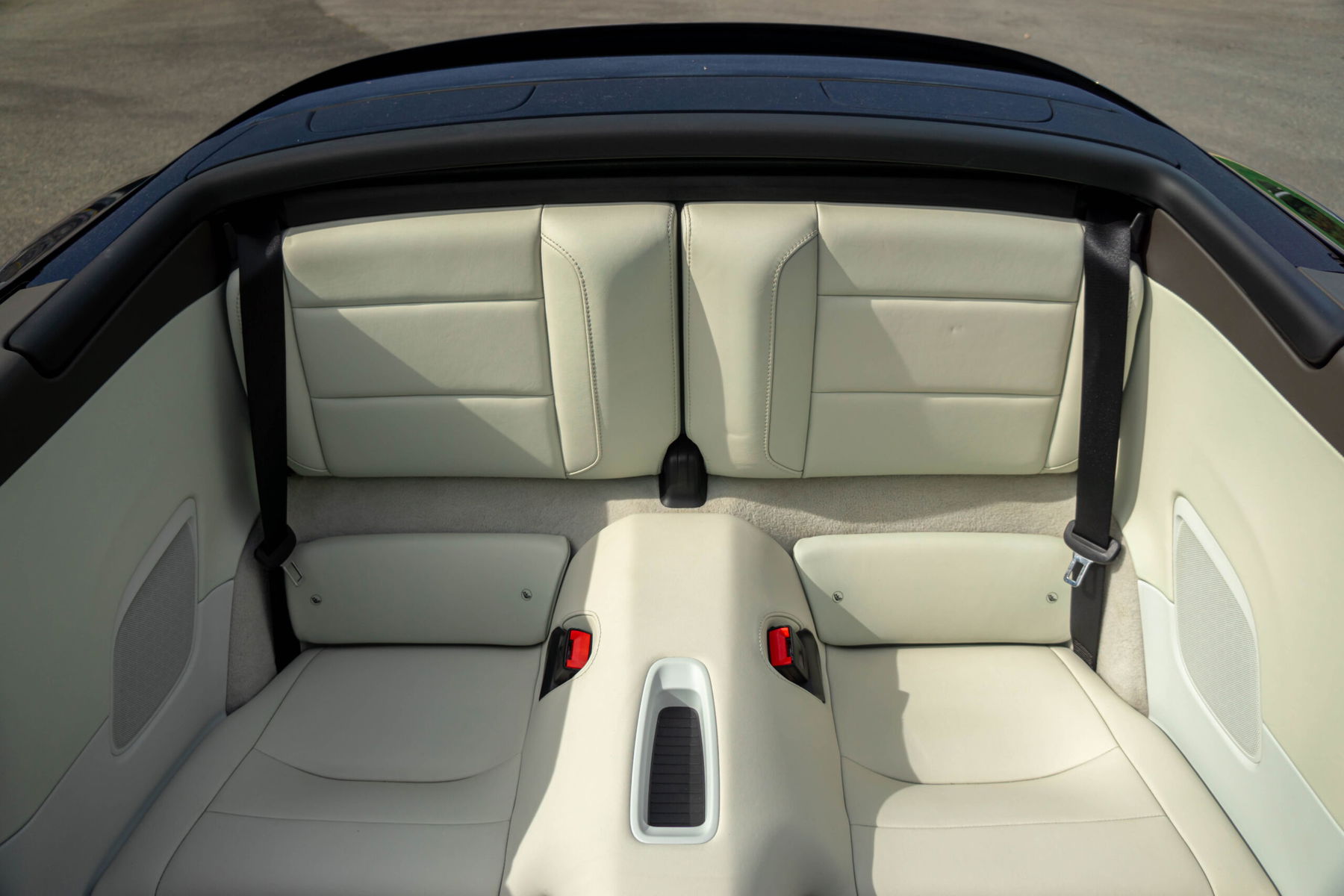 Das Äußere ist in einem hervorragenden Zustand und hat eine tiefe, satte Farbe, die perfekt zum Innenraum passt. An der Front sind nur sehr wenige Steinschläge zu sehen. Beide Hinterräder weisen leichte Bordsteinschäden auf. Das Verdeck ist in einwandfreiem Zustand und der Mechanismus funktioniert einwandfrei. Scheinwerfer und Windschutzscheibe sind frei von Beschädigungen oder Steinschlägen.