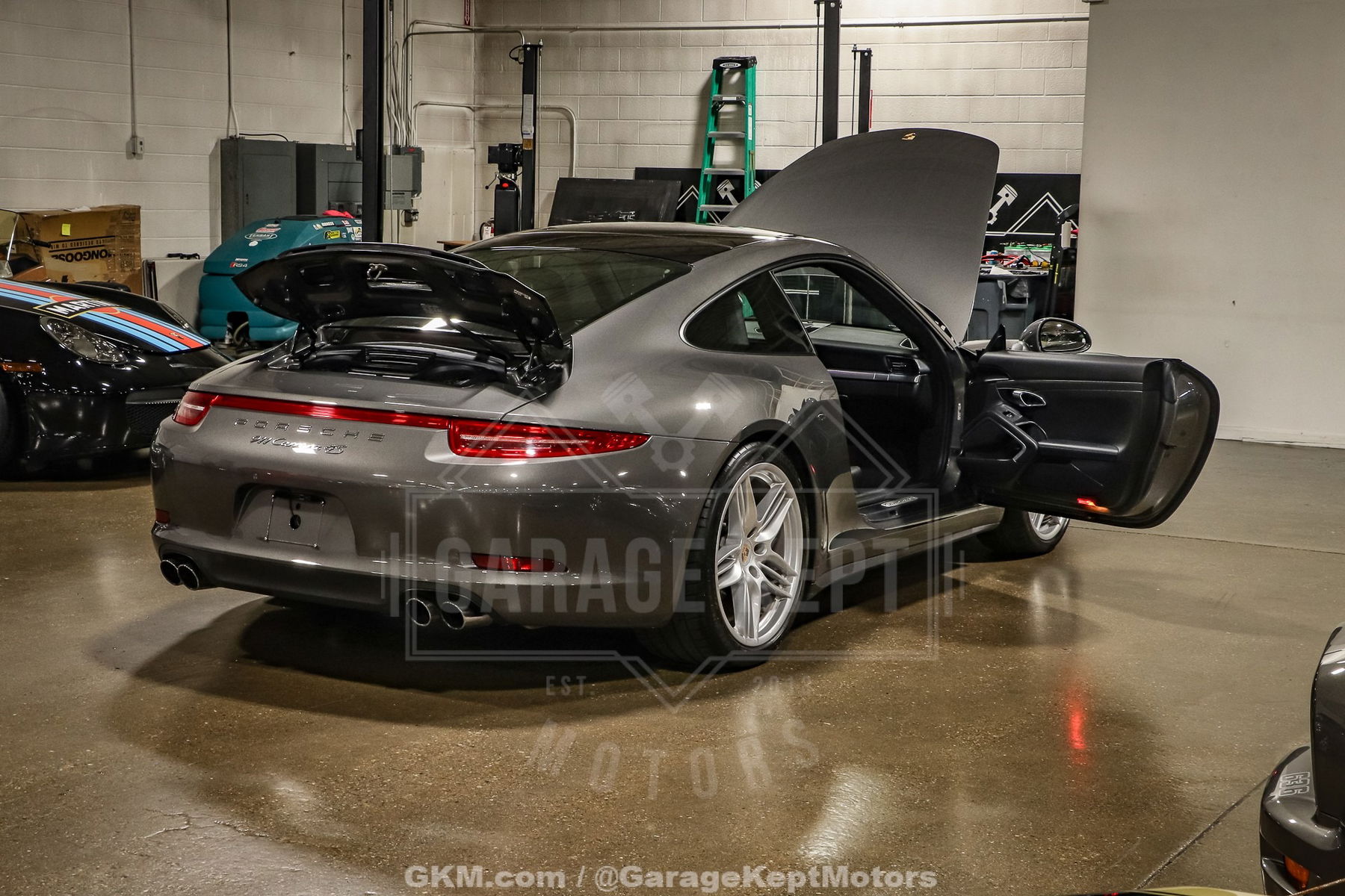 Der hier angebotene Porsche 911 Carrera 4S aus dem Jahr 2015 ist ein außergewöhnliches Exemplar, das nur einen Besitzer hat und in edlem Achatgrau Metallic mit schwarzem Interieur ausgestattet ist. Mit seiner breiten Karosserie, der ikonischen 911-Silhouette und dem Allradantrieb verkörpert dieses Coupé die perfekte Mischung aus Leistung und Alltagstauglichkeit von Porsche. Das Exterieur wird durch 20-Zoll-Sportdesign-Räder und eine werksseitige Sportauspuffanlage aufgewertet, die dem Fahrzeug sowohl optisch als auch akustisch eine aggressive Präsenz verleihen. Die Lackierung ist durch eine Ganzkörperschutzfolie geschützt und befindet sich in einem ausgezeichneten Zustand, ein Beweis für die Pflege, die der Wagen seit seiner Neuanschaffung erfahren hat.