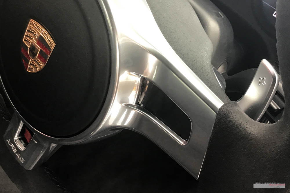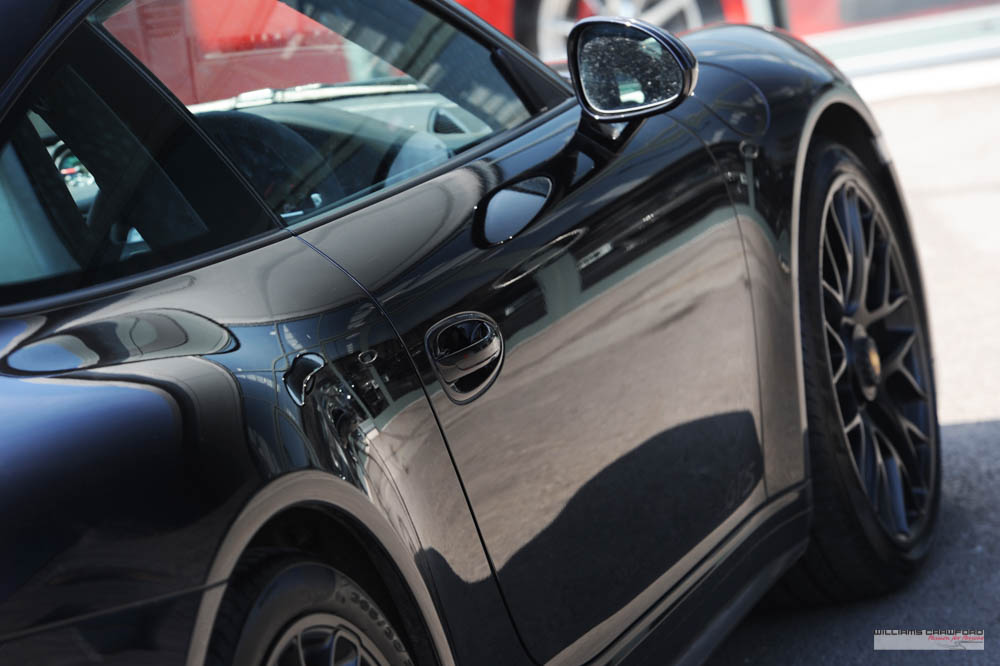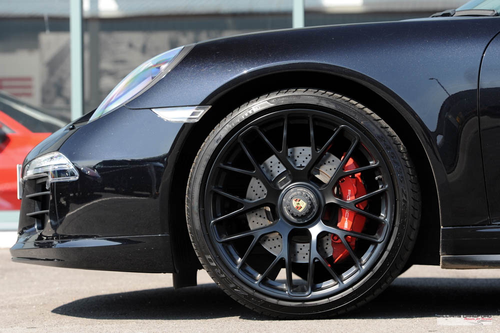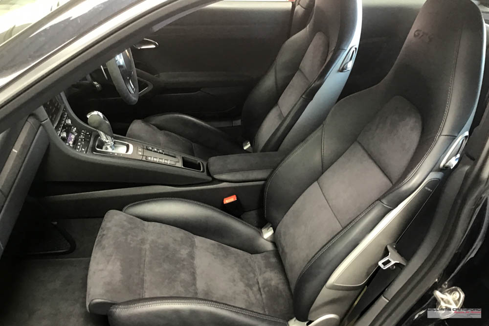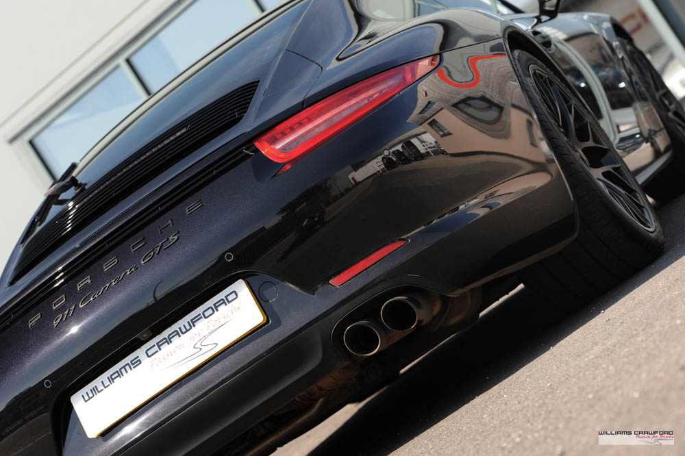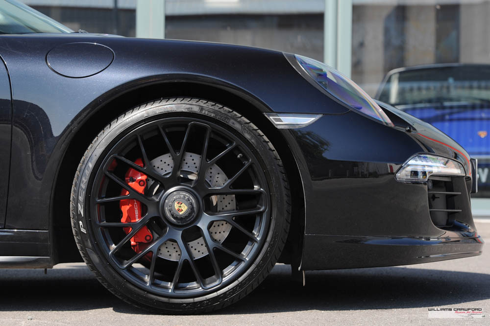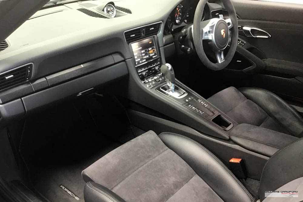 And its performance are matched by its exceptionally good looks; the wider body of the Carrera 4 in Jet black metallic with 20″ centre lock alloys finished in satin black. Sport Design front spoiler and wing mirrors and PDLS (Porsche Dynamic Lighting System).