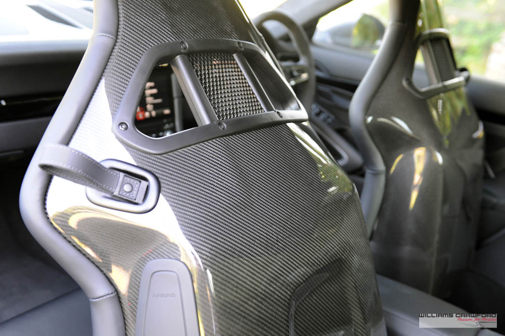 Optioned with the carbon fibre backed heated, black leather Sports Bucket Seats offering the ultimate support and comfort. Full black leather interior with Alcantara touches for the steering wheel and gear selector gaiter.