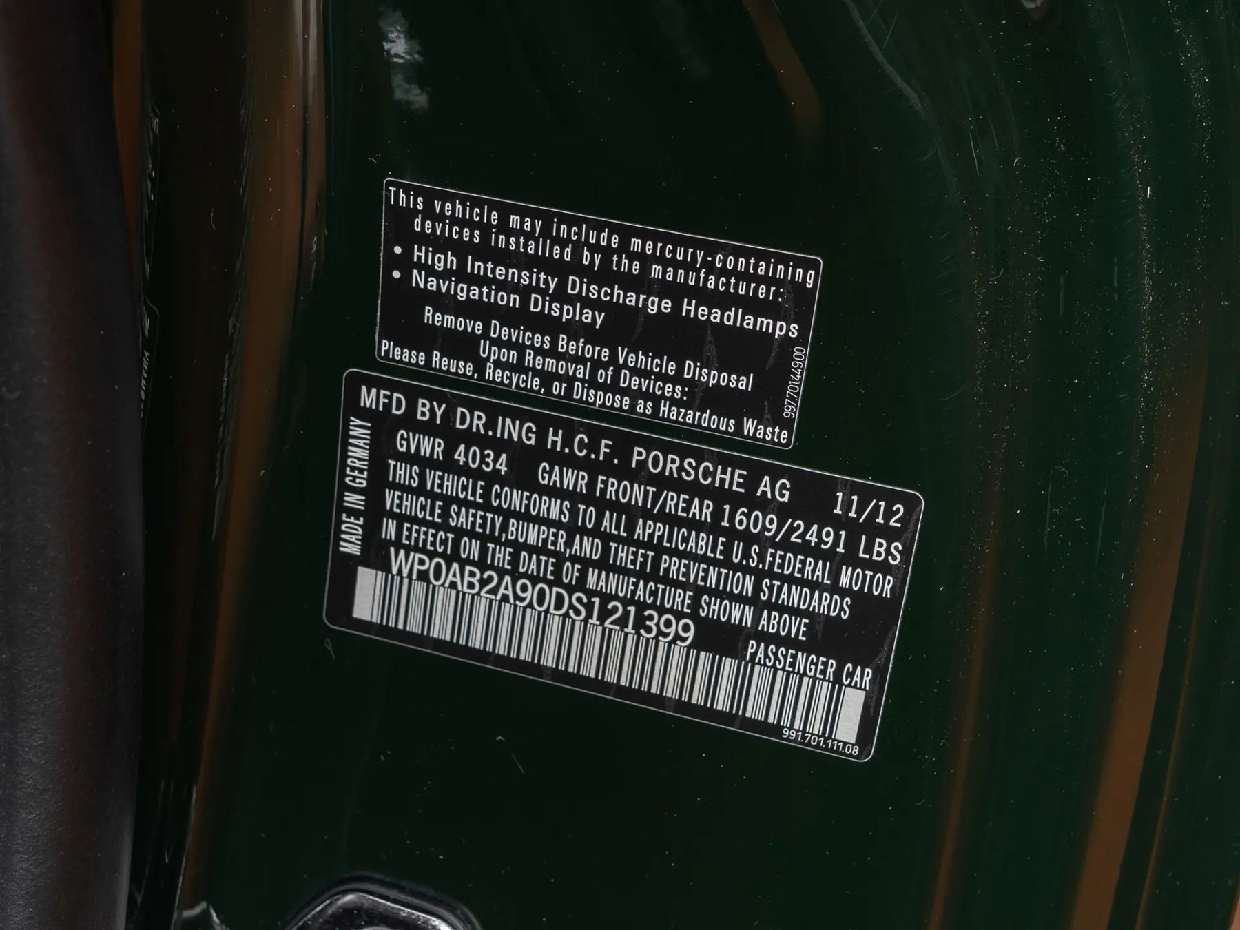 • Fahrgestellnummer WP0AB2A90DS121399