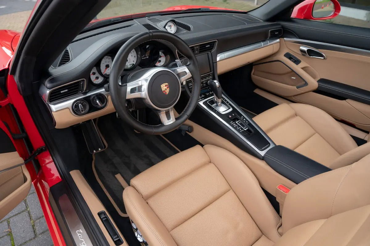 Unser Porsche 911 Targa 4S, Baujahr 2014, ist ein Zeugnis von Handwerkskunst und Leidenschaft. Lackiert im seltenen und schillernden Indischrot, strahlt dieses Auto pure Emotionen aus – eine Farbe, die die Konturen des 911 perfekt betont. Die beige Lederausstattung bildet einen stilvollen und luxuriösen Kontrast und verleiht dem Ganzen ein klassisches und zeitloses Flair. Unter der Haube arbeitet ein 3,8-Liter-Sechszylinder-Boxermotor, der dank des PDK-Automatikgetriebes mühelos schaltet und den Fahrer mit fantastischer Beschleunigung und hervorragendem Handling belohnt. Der Allradantrieb des Targa 4S sorgt für maximalen Grip unter allen Bedingungen – egal, ob Sie über kurvenreiche Bergstraßen brausen oder gemütlich an der Küste entlang cruisen.