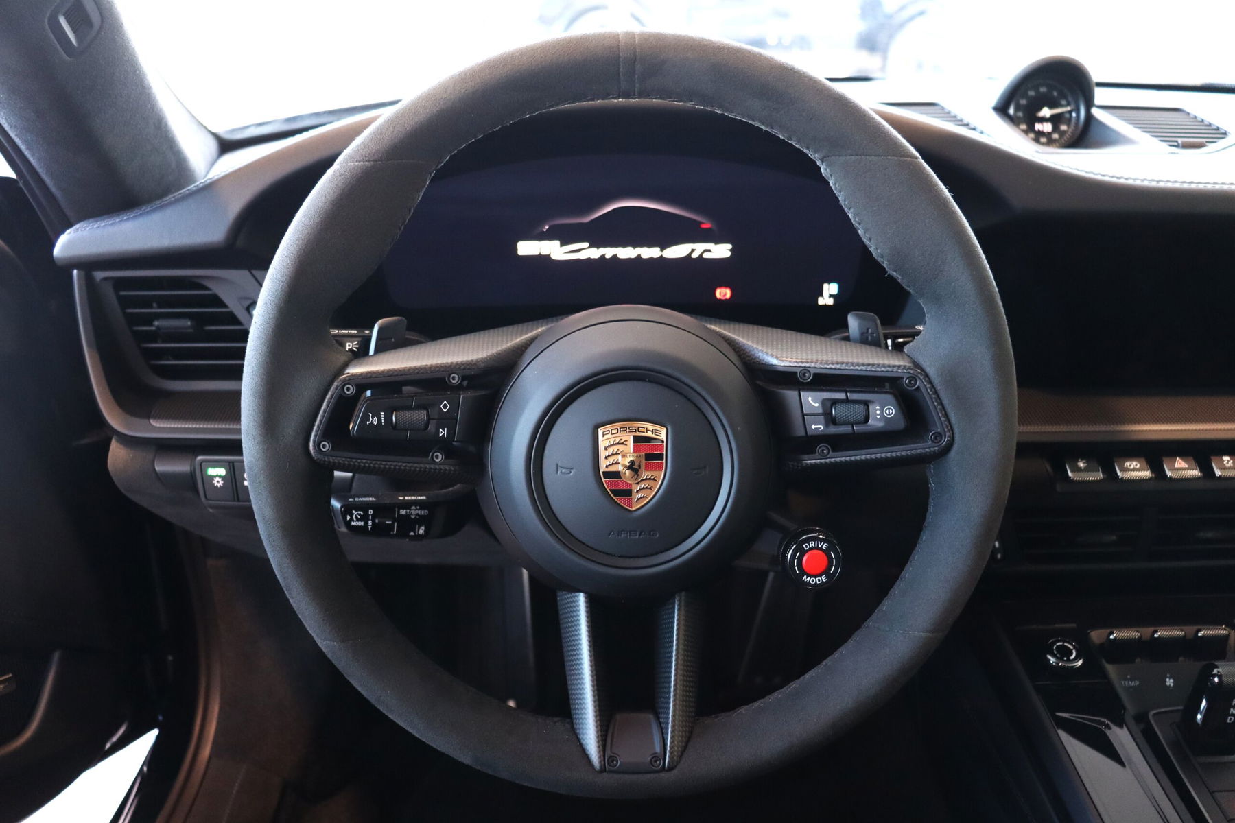 Im Innenraum setzt sich dieser Anspruch konsequent fort. Die Race-Tex Ausstattung mit erweiterten Lederumfängen schafft eine perfekte Balance aus Sportlichkeit und Hochwertigkeit. Die Adaptiven Sportsitze Plus (18-Wege) mit Sitzbelüftung, das GT-Sportlenkrad in Race-Tex mit Carbon-Blende, sowie zahlreiche Race-Tex- und Carbon-Details im gesamten Interieur vermitteln sofort das Gefühl, in einem echten Fahrerauto Platz zu nehmen. Jedes Detail wirkt durchdacht, jedes Material bewusst gewählt.