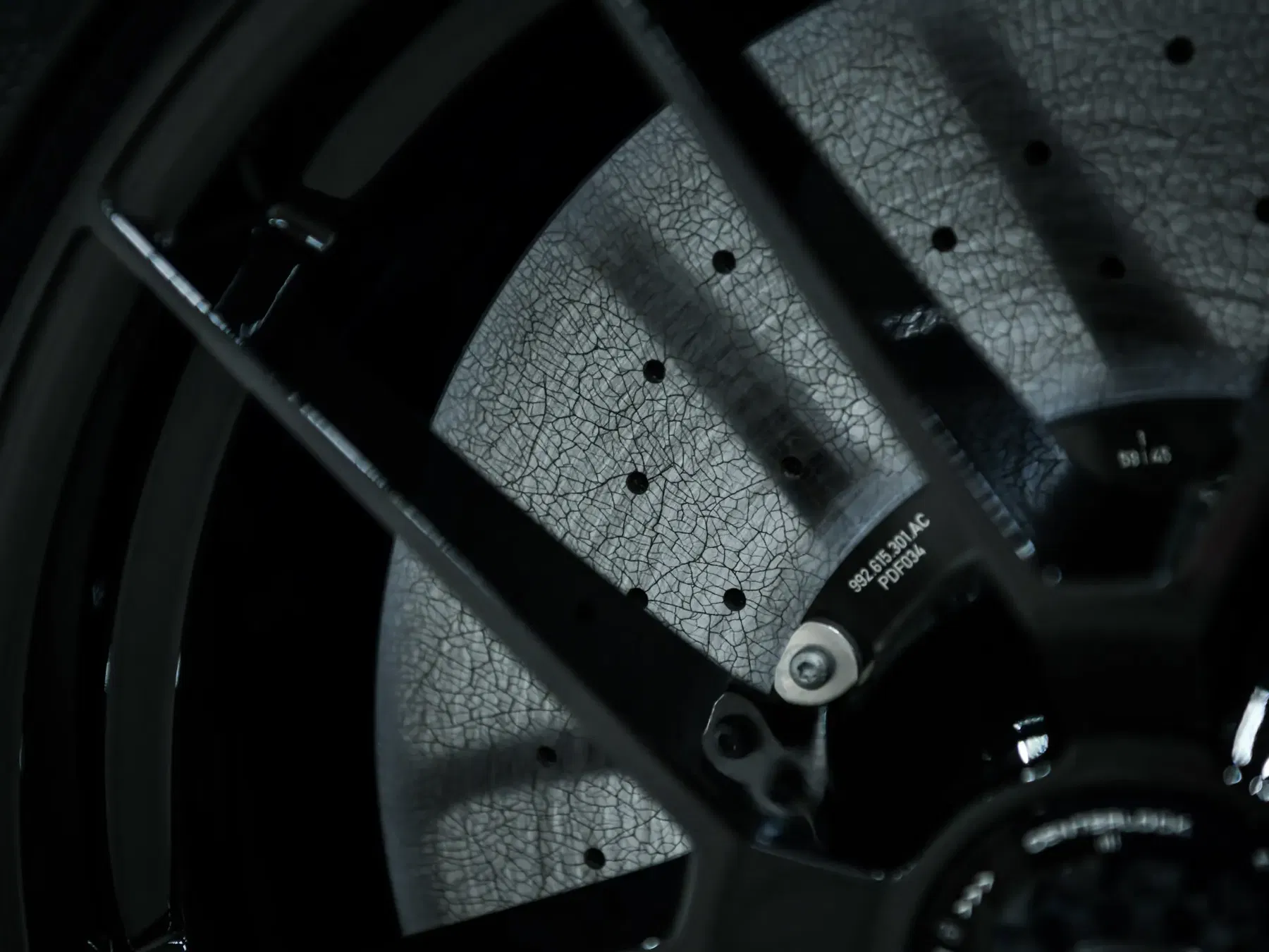 Porsche Ceramic Composite Brake (PCCB) mit hochglänzenden schwarzen Bremssätteln